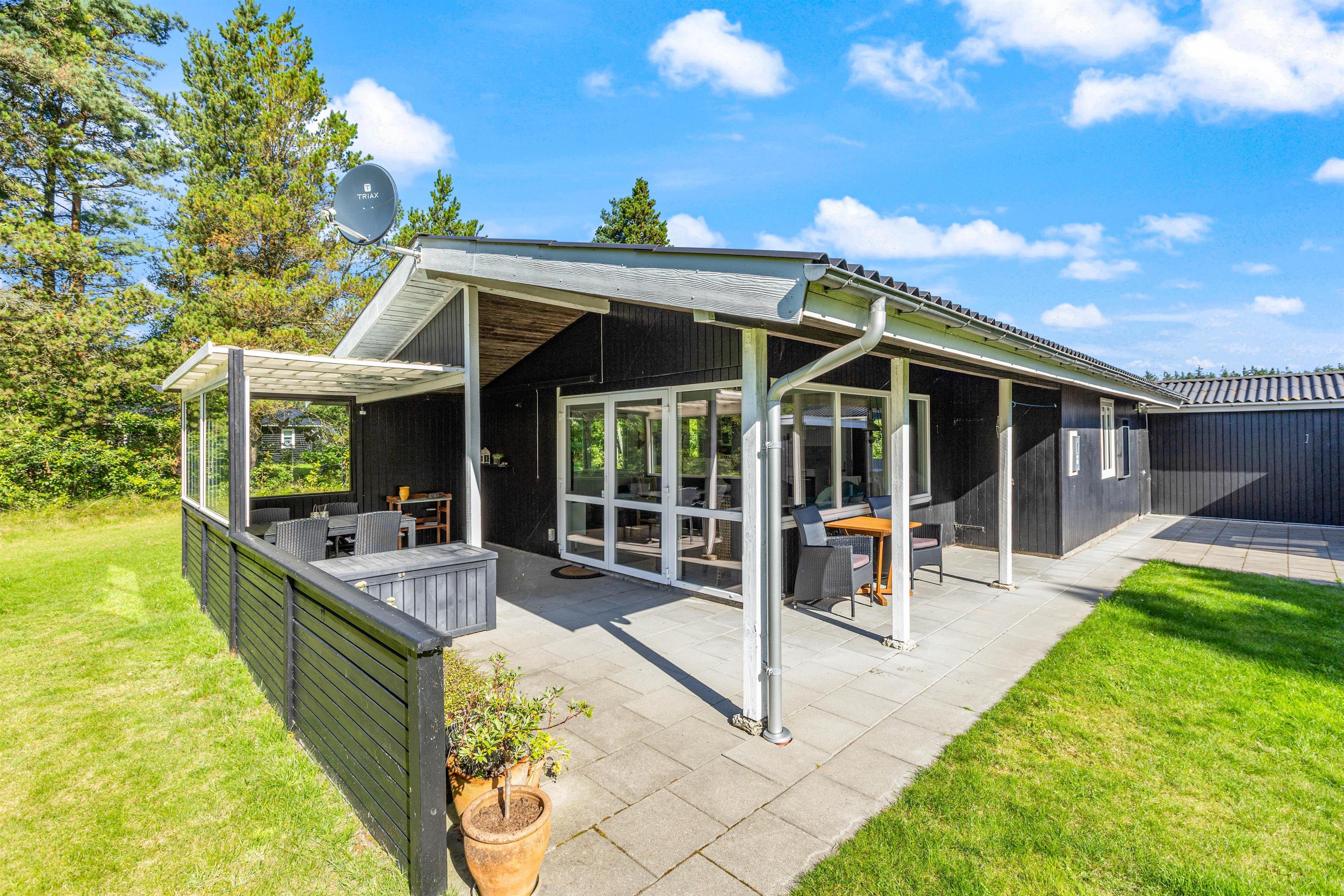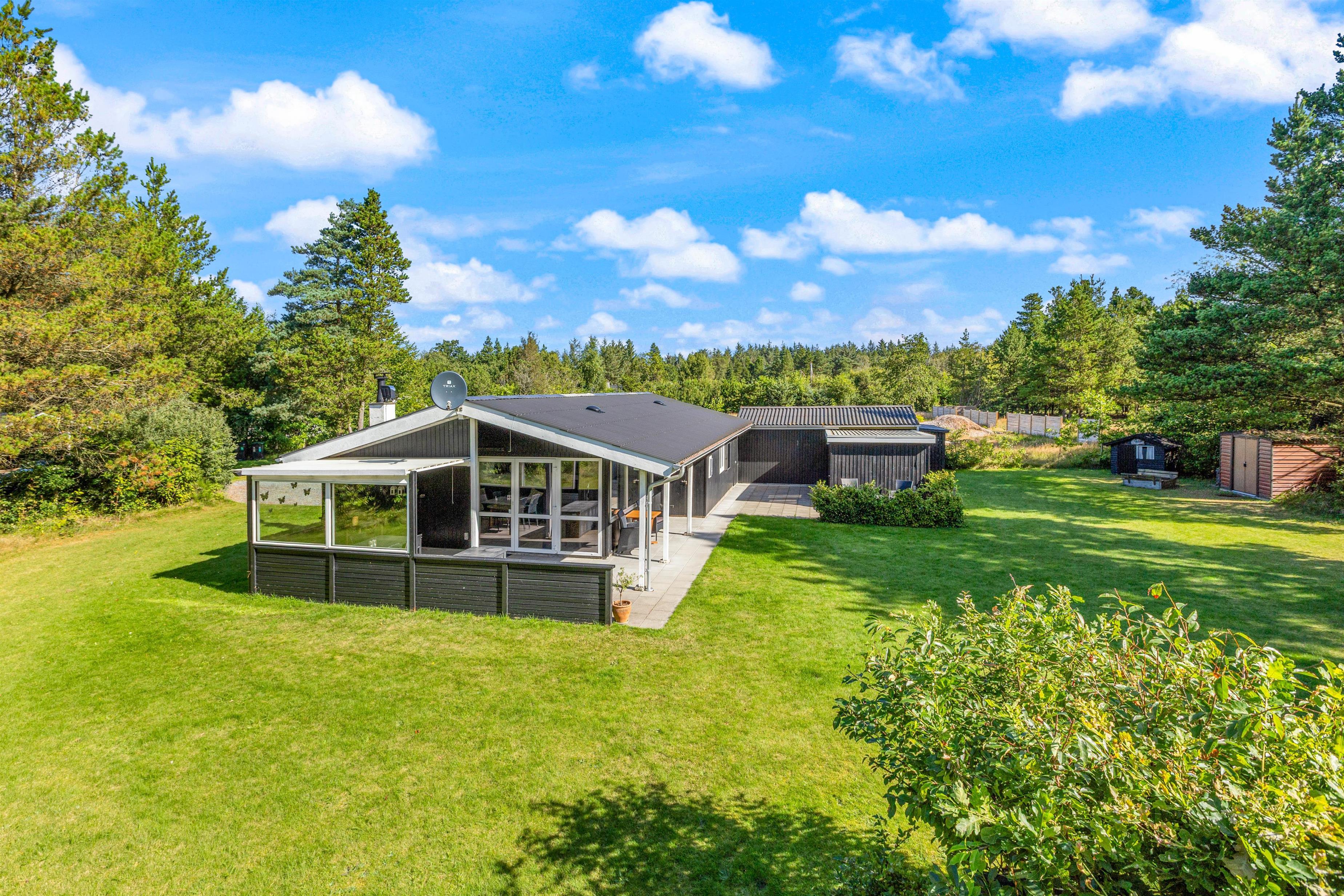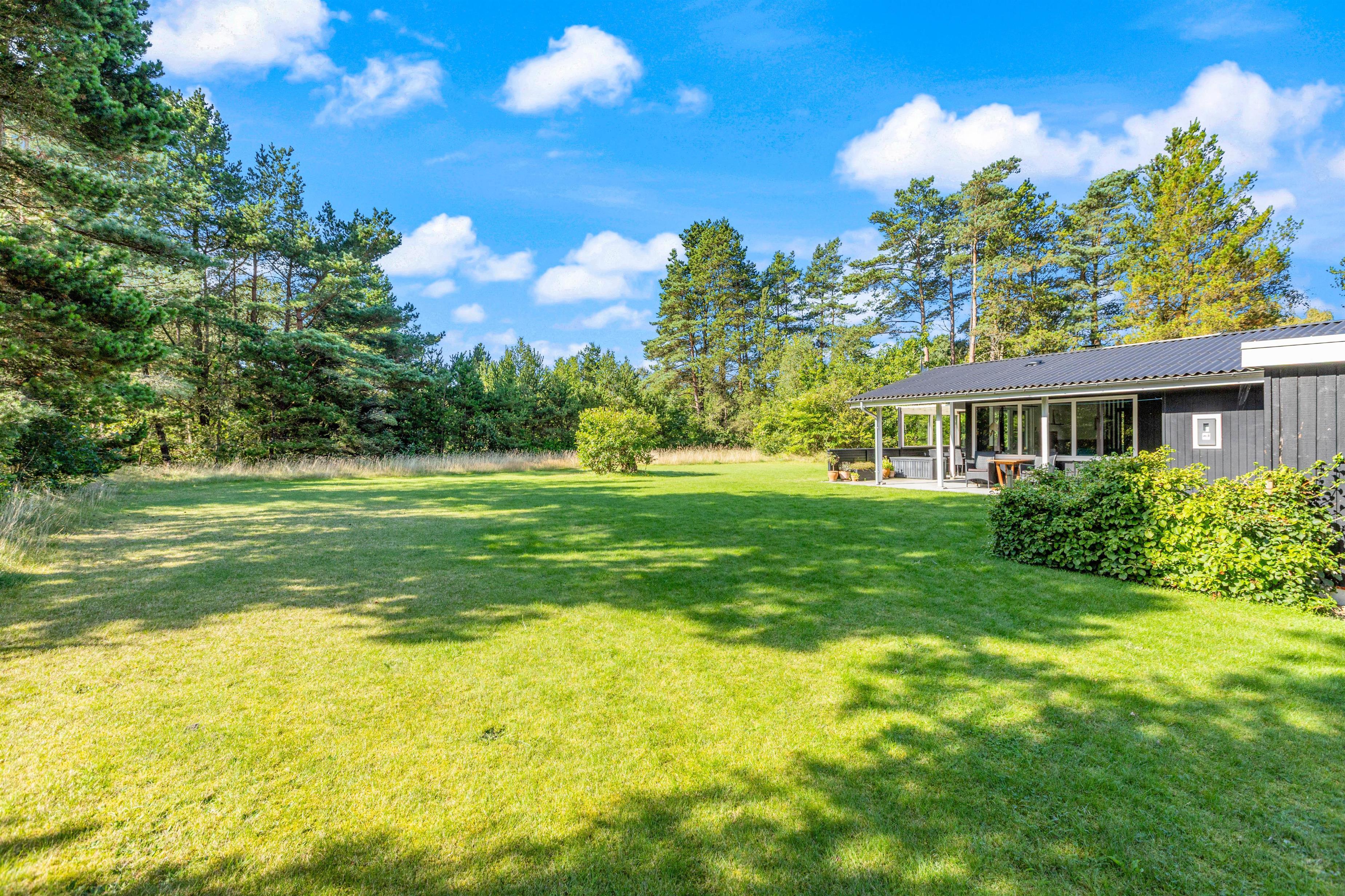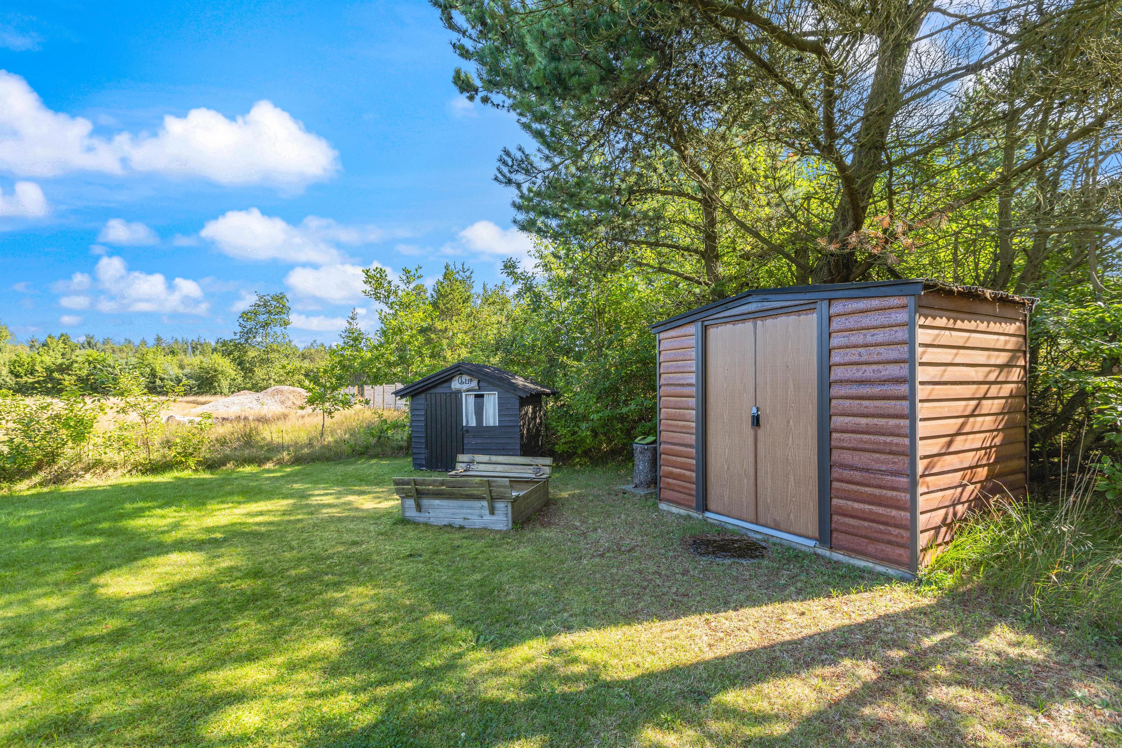 Sommerhuset ligger på en 2.113 kvadratmeter stor grund, hvor I har god plads at boltre jer på. Til glæde for børnene er der både en sandkasse, hvor de kan bygge store og flotte sandslotte, og et legehus i haven.