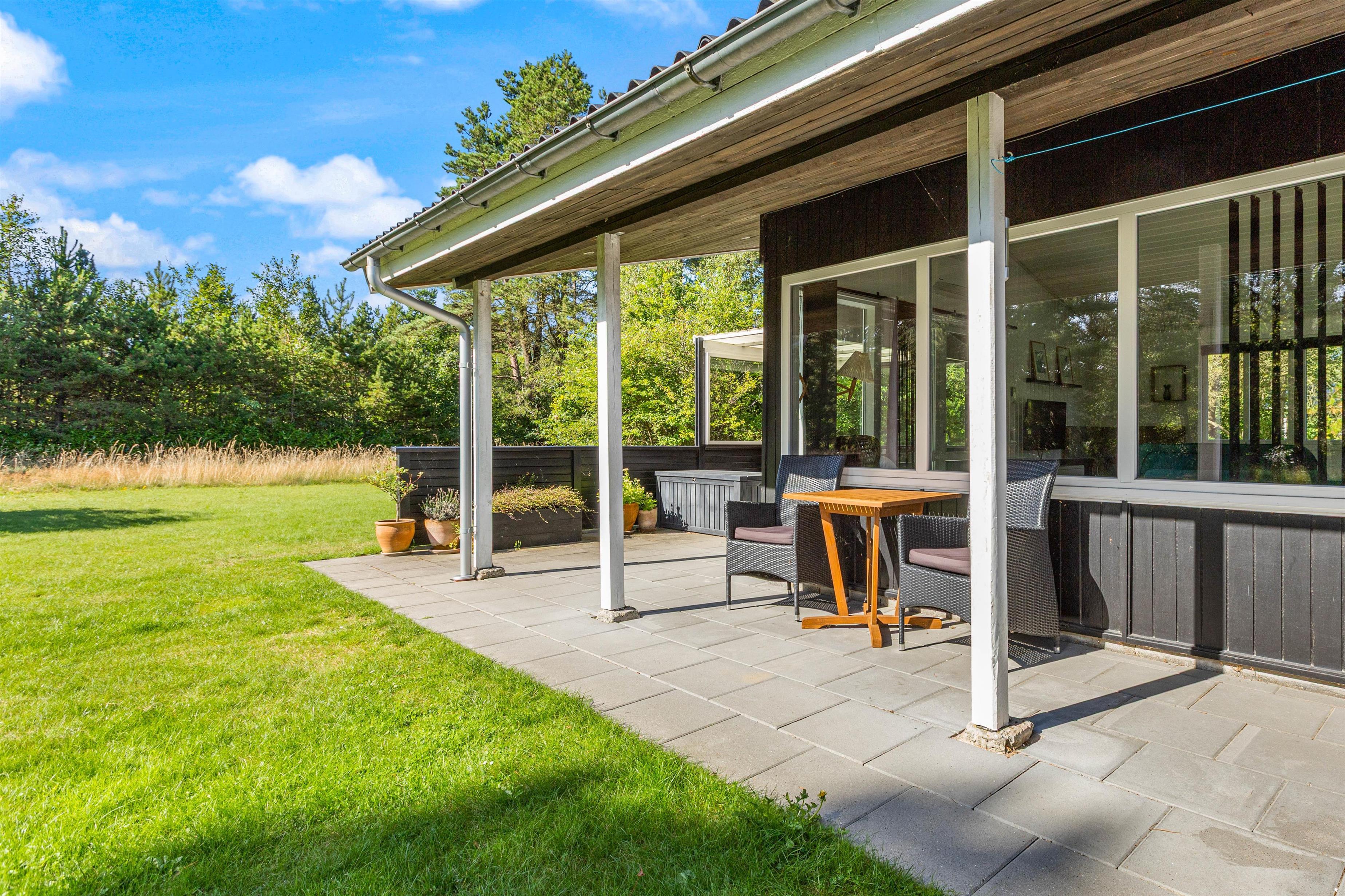 Mens børnene leger og hygger sig i haven, kan I andre finde jer til rette i havemøblerne og liggestolene, der står til rådighed for jer på terrassen, og nyde den friske, vestjyske luft og lyden af fuglefløjt og vindens susen i træerne. Som afslutning på dagen kan I samles på terrassen til en lækker middag på grillen.