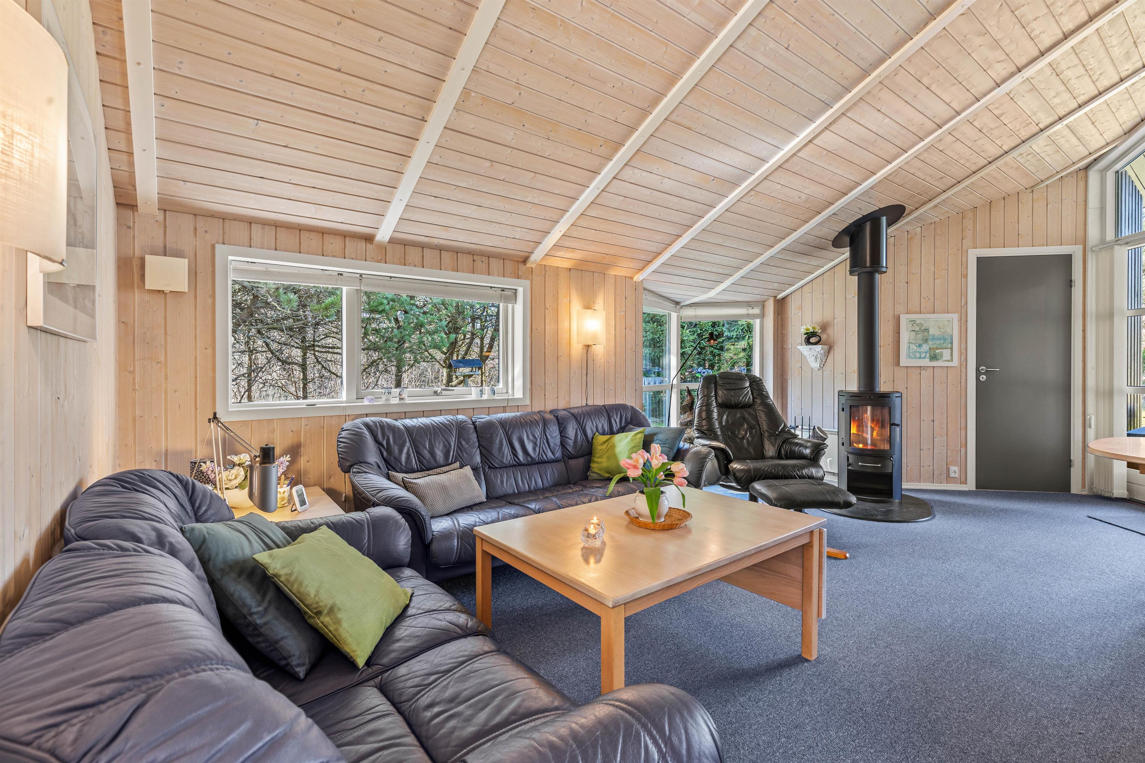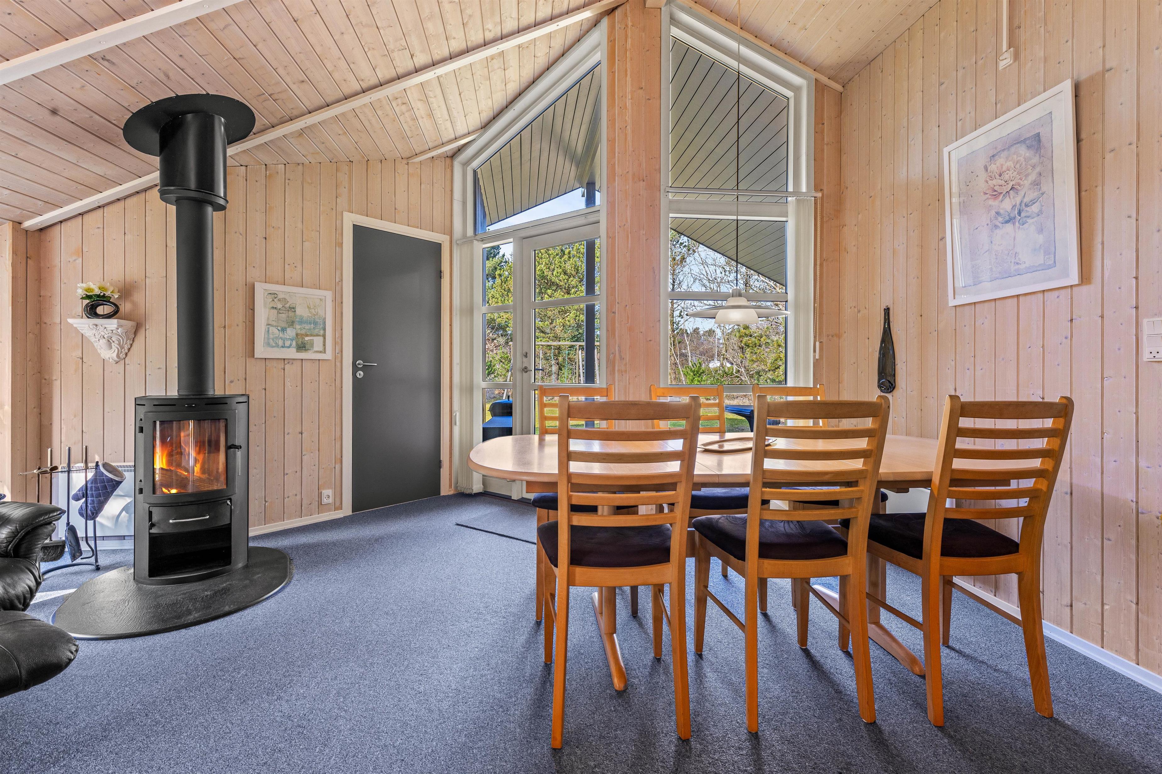Den lyse og hyggelige indretning med varme farver og gulvtæppe i stuen hjælper til, at I fra første ferieøjeblik vil falde godt til. Foran den knitrende brændeovn kan I få varmen efter en dag ude i den friske luft, og rundt om spisebordet kan der spilles kort og spises lækre hjemmelavede feriemiddage.