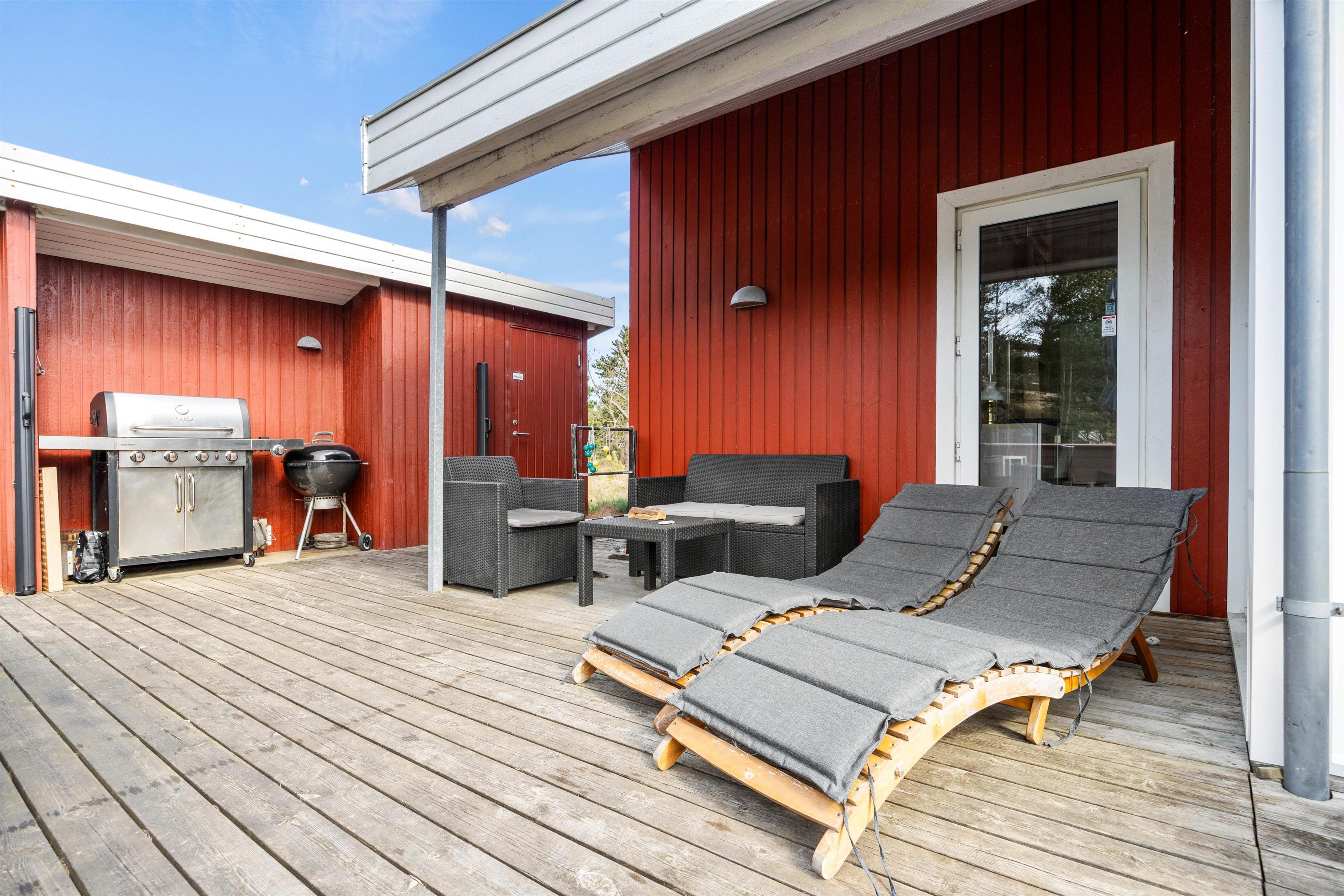 Huset har 2 gode terrasser, så I kan følge med solen hele dagen, og der står havemøbler og grill klar til jer, så snart I ankommer. Terrasserne skaber den perfekte ramme for alt fra morgenkaffen til hyggelige grillaftener med familien. Til børnene er der både gyngestativ, rutsjebane og sandkasse, så der er rig mulighed for leg. De små kan trygt lege på den rummelige grund, mens I nyder en stille stund i skyggen eller solens varme stråler.