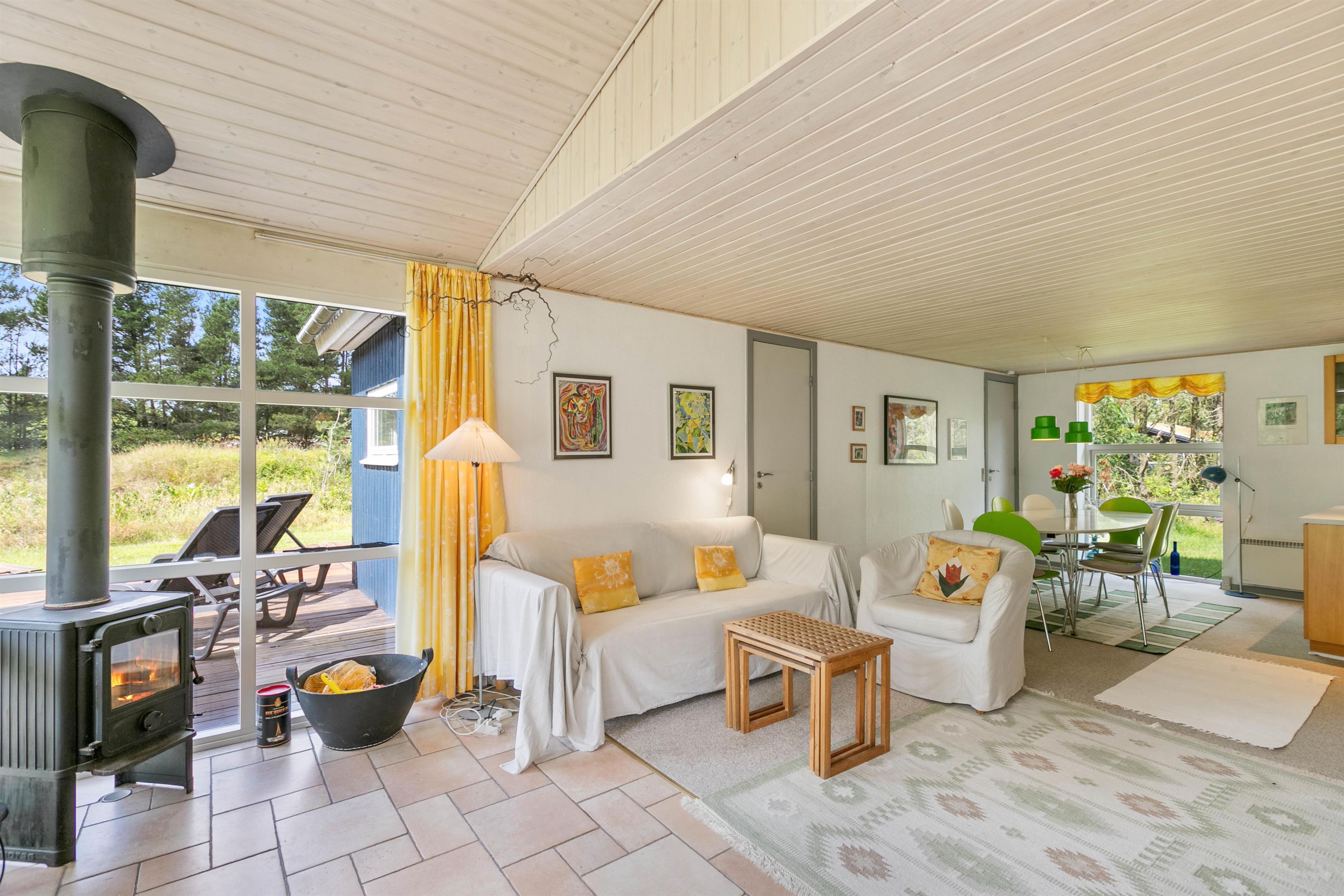 Feriehuset egner sig perfekt til dem, der sætter pris på lidt privatliv. I den store stue er der god plads til at sætte sig ned med en bog og en kop kaffe og nyde feriedagene, og på de kolde årstider sørger brændeovnen for både varme og god feriestemning.