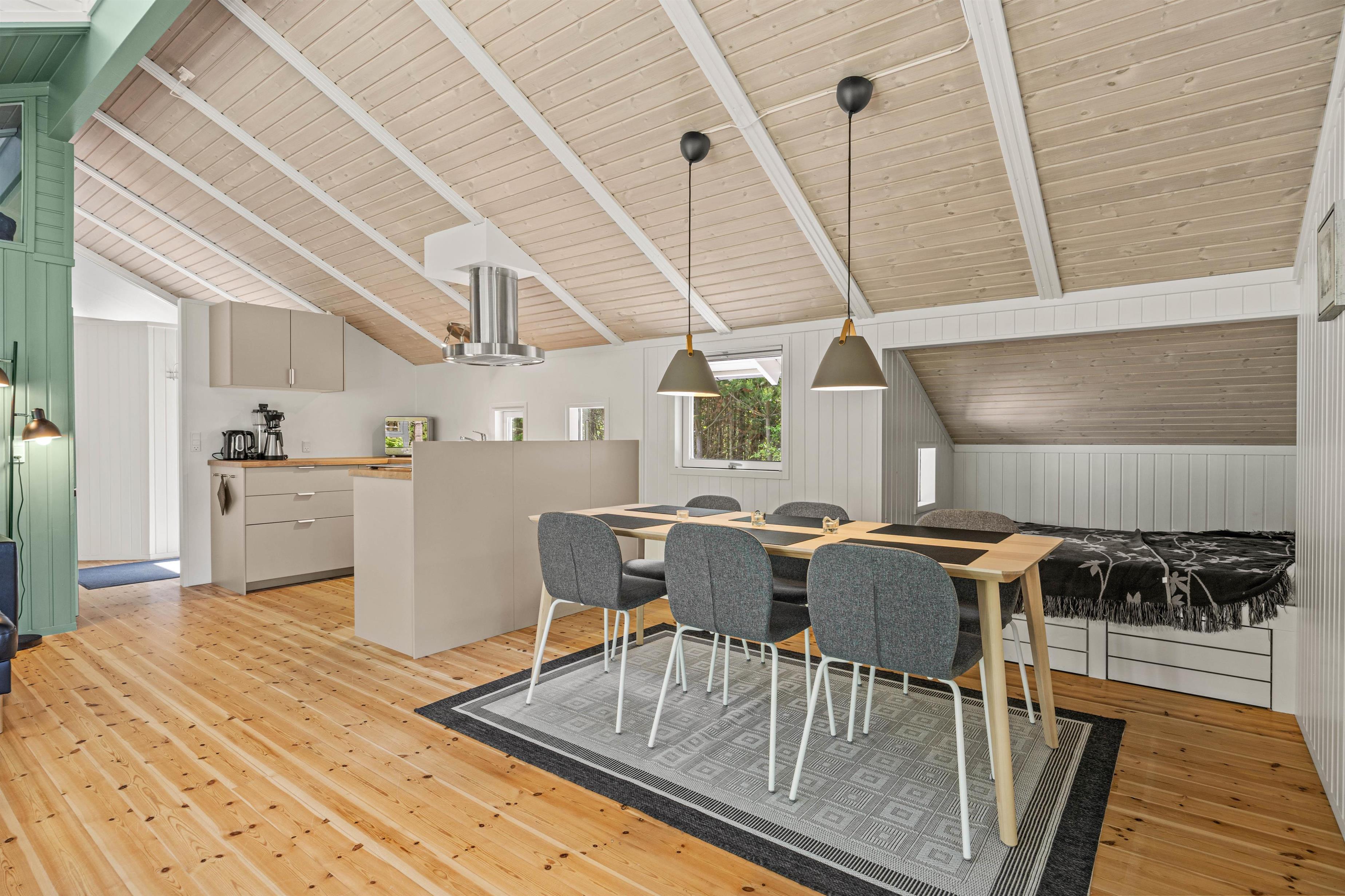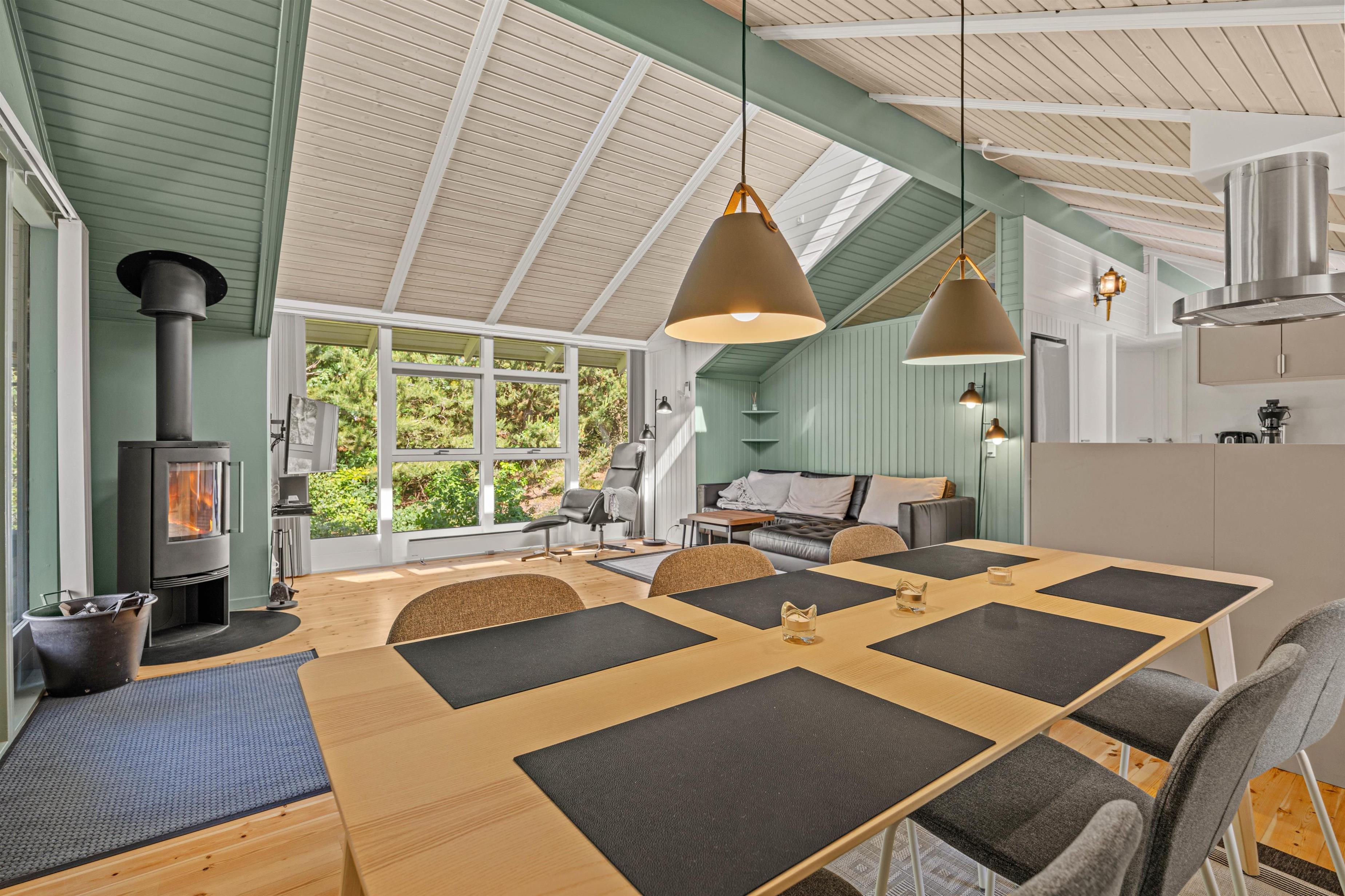 Den dejlige spisestue med åben forbindelse ud til køkkenet bliver feriens mødested, og her kommer der med garanti til at blive skabt mange nye ferieminder over et hyggeligt spil kort eller en god film på sofaen på de sene aftener.