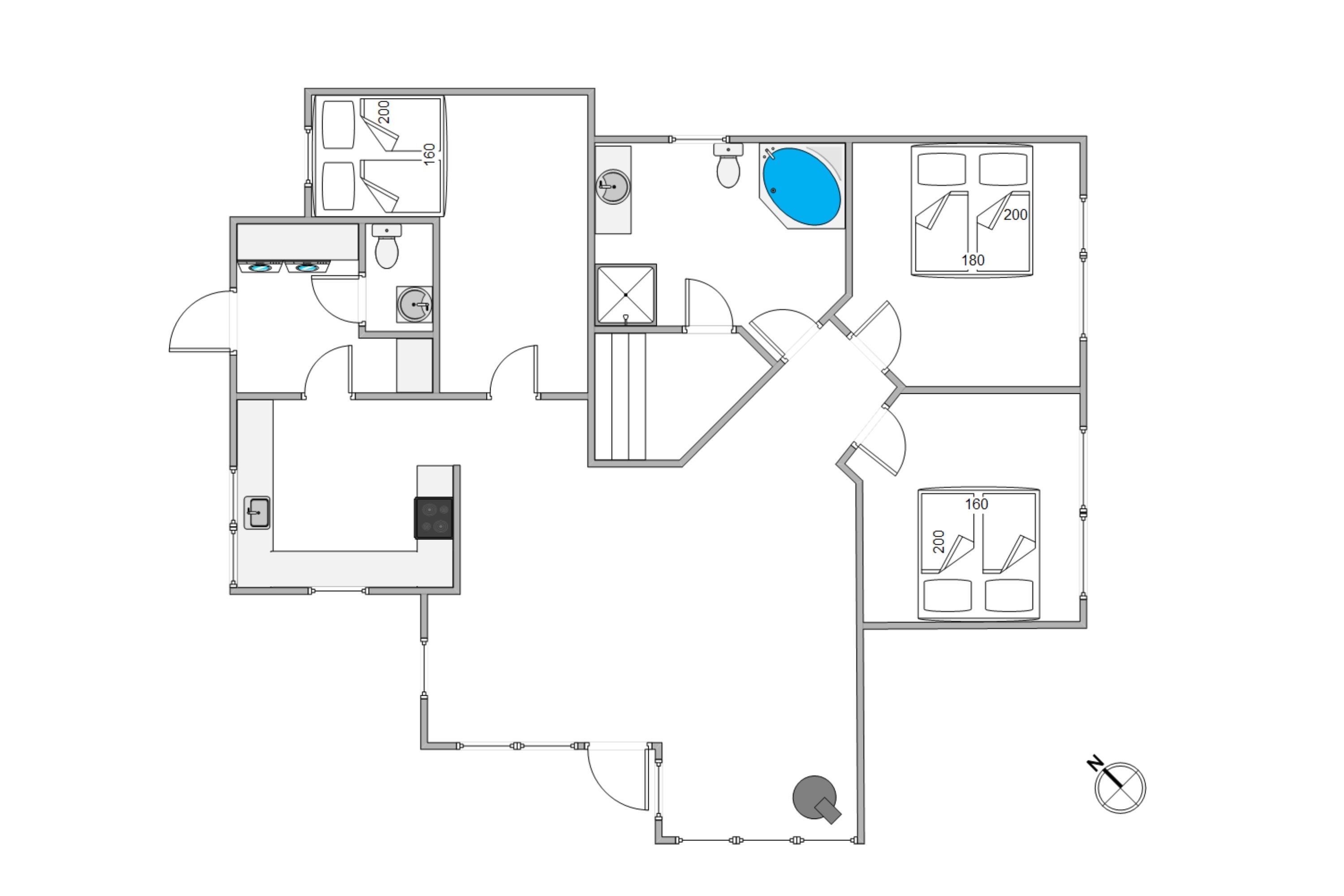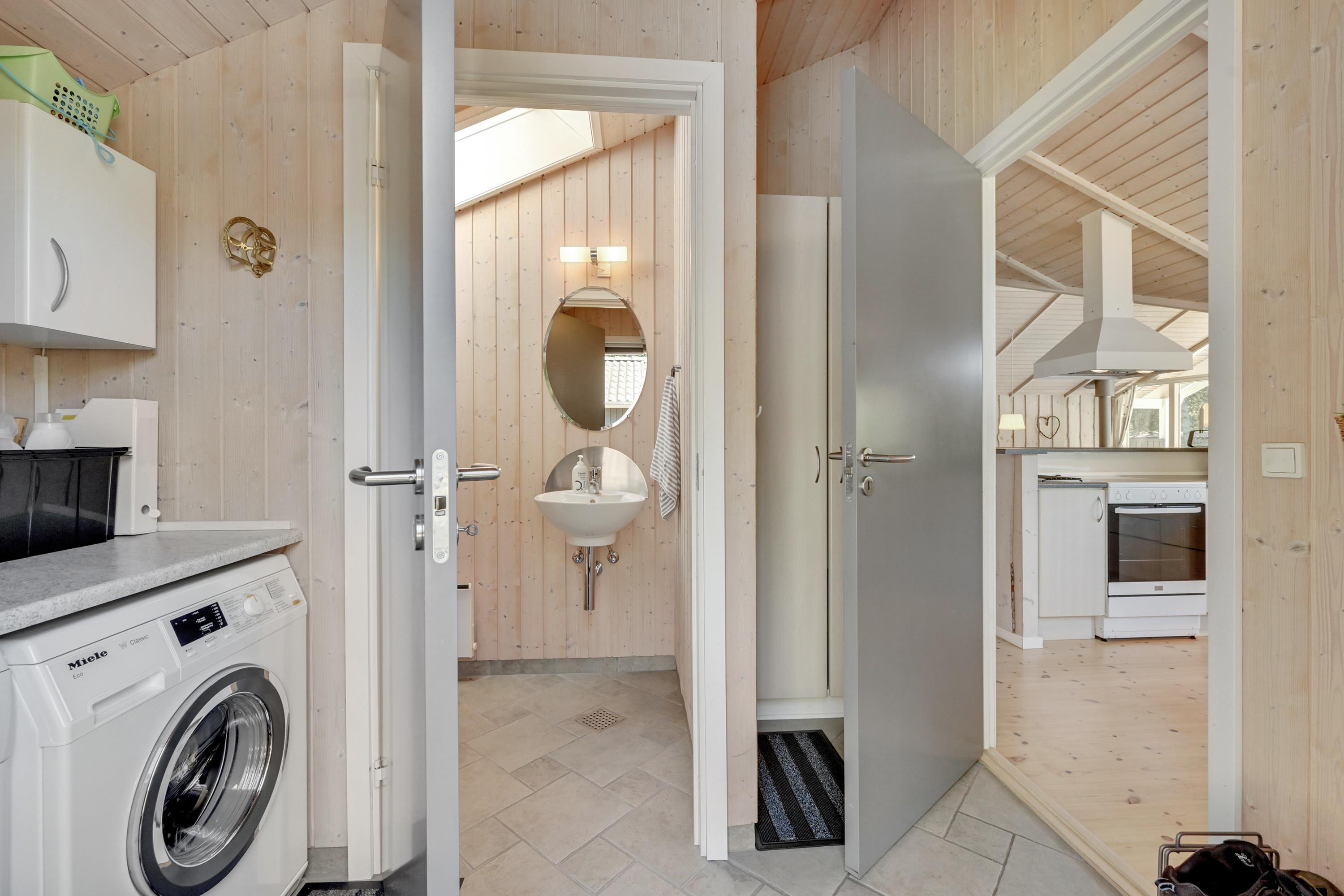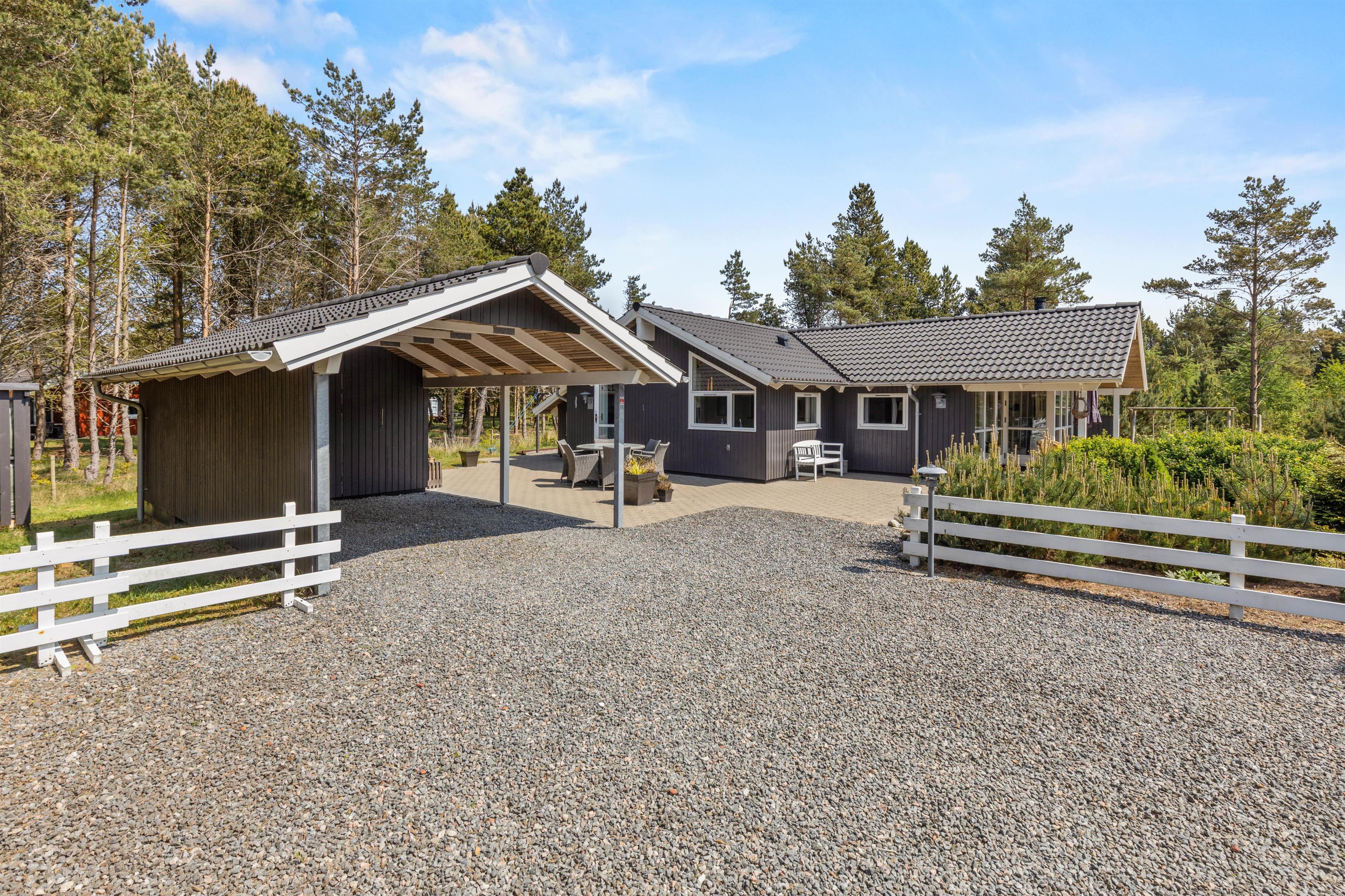 Så snart I har parkeret bilen i carporten, kan ferien begynde. Man kan allerede fra indkørslen se, at der er tale om et meget velholdt sommerhus. De 101m² er fordelt på 3 soveværelser med dobbeltsenge, køkken i åben forbindelse til stuen, et badeværelse med bruser, toilet, sauna og spabad, et gæstetoilet og en lille gang med vaskemaskine og tørretumbler, så I også kan få vasket tøjet på ferien.