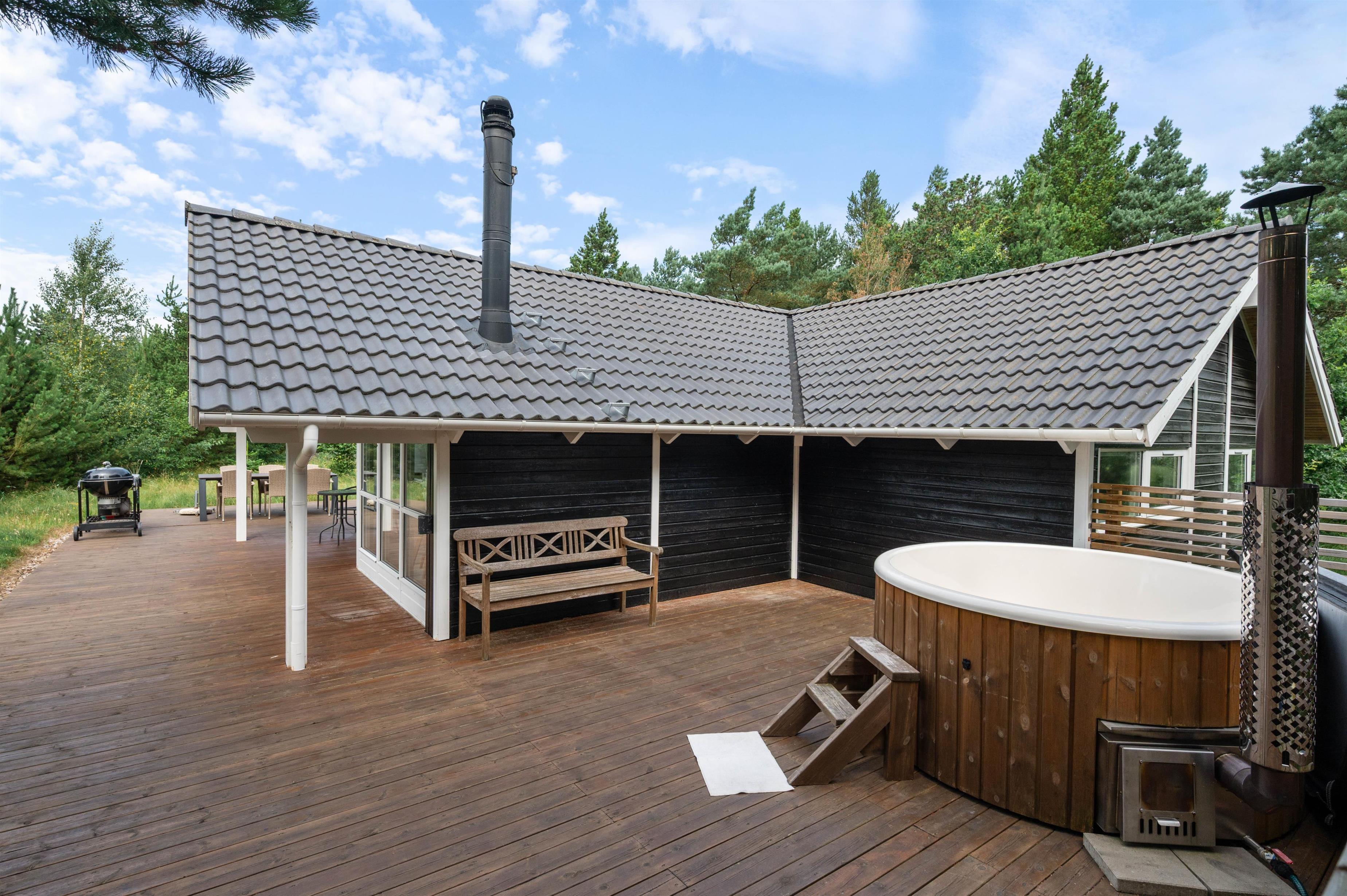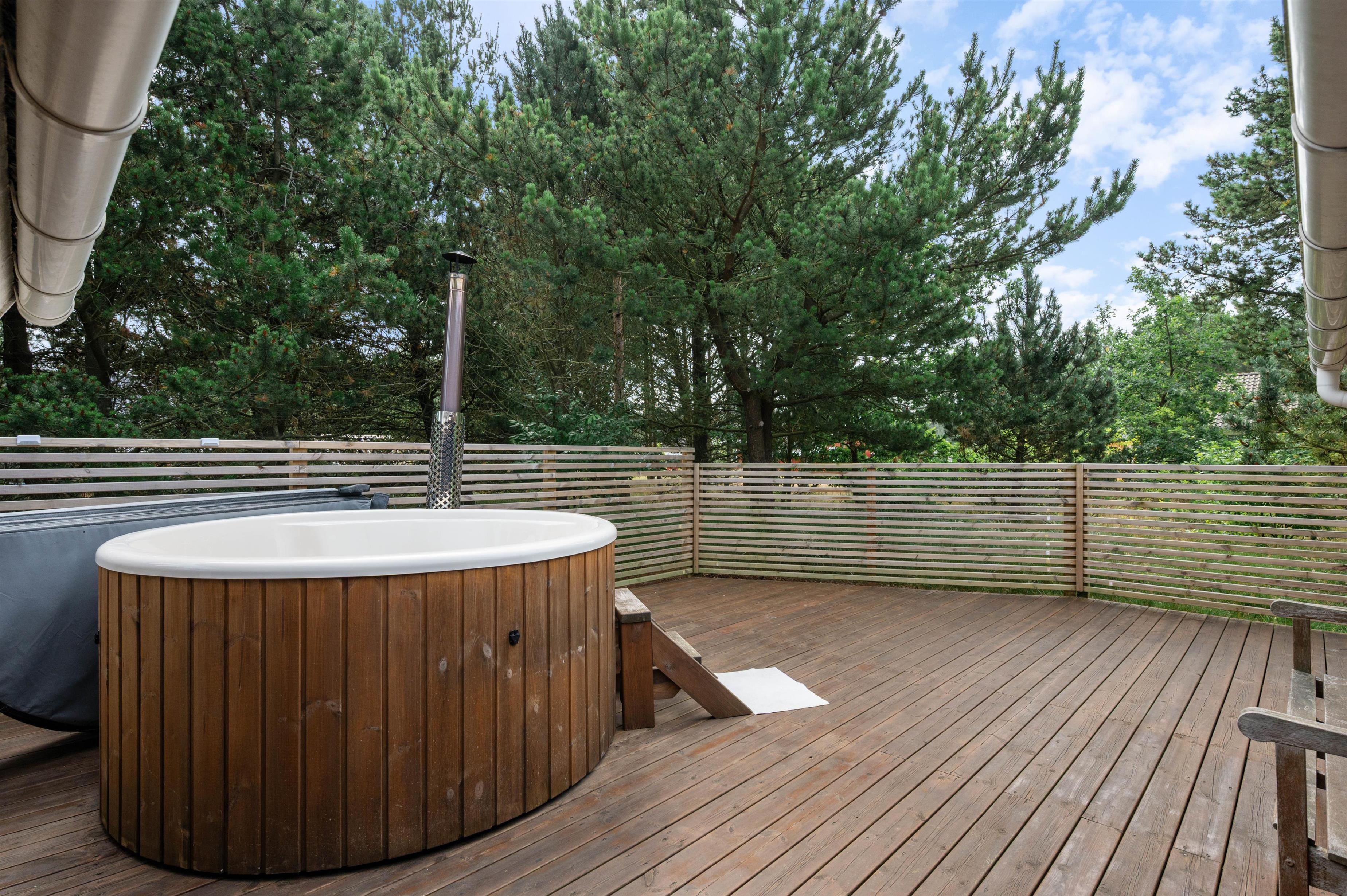 Den store sydvendte terrasse er udstyret med både havemøbler, solvogne, grill og et skønt vildmarksbad, hvor I rigtig kan nyde tilværelsen. Efter en skøn dag med afslapning og leg i haven, kan I nyde et lækkert måltid tilberedt på grillen, for til sidst at se mørket falde på, mens I sidder i det varme vildmarksbad - den perfekte afslutning på endnu en dejlig feriedag i sommerhuset på Guldvangen 58.