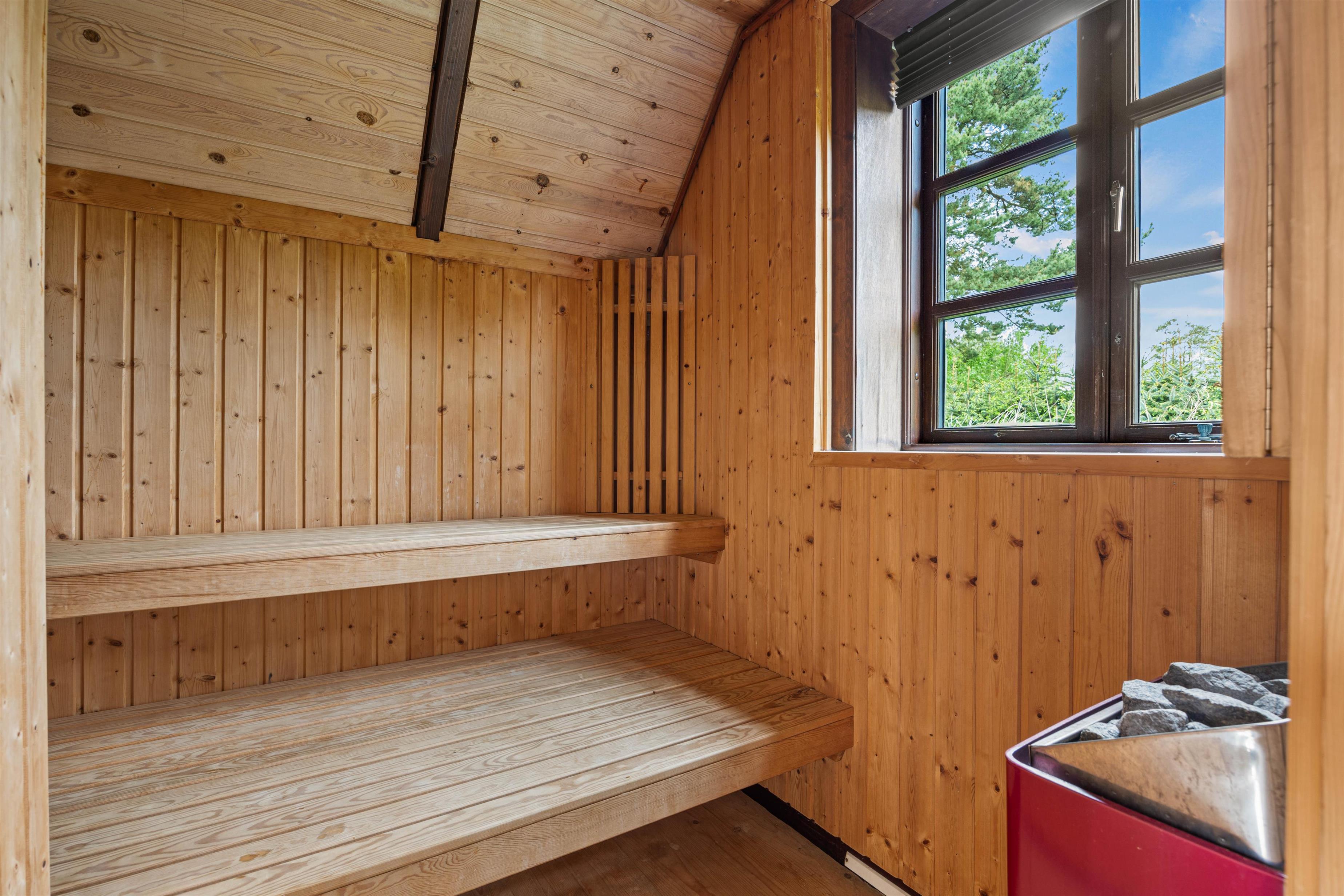 Ferieboligens badeværelser er udstyret med gulvvarme, og det er en sand fornøjelse efter en lang dag ved havneområdet. Derudover har sommerhuset en sauna til ekstra afslapning.