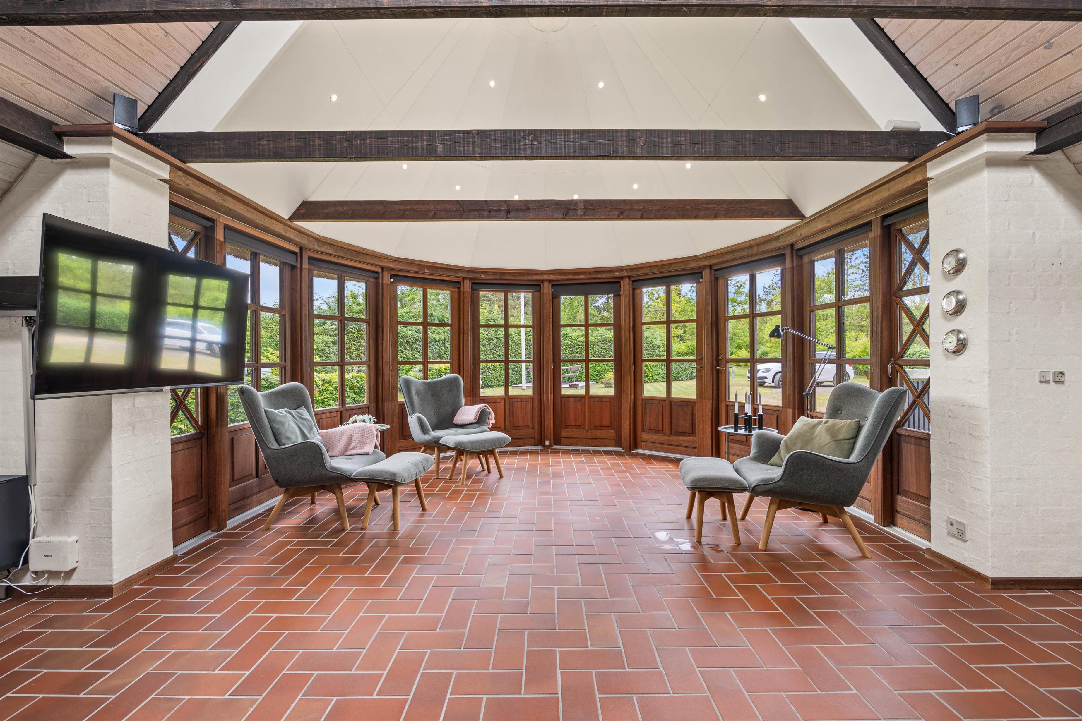 Køkkenet er forbundet direkte med spisestuen og stuen, hvilket gør det nemt at tilberede måltider og samtidig være sammen med familien. En brændeovn sørger for ekstra hygge i stuen, hvor I kan nyde et spil kort eller bare slappe af. En karnap i forbindelse med stuen tilfører masser af naturligt lys, hvilket gør det til det perfekte sted at læse en god bog eller nyde en kop kaffe.