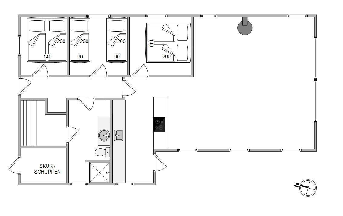 Sommerhuset på Peder Larsensvej 23 er både lyst og venligt indrettet og er udstyret med en dejlig stor og åben terrasse, hvor I har udsigt ud over det smukke skovlandskab i Houstrup. Her får I ikke kun alt, hvad ferien har brug for, men endnu mere til med en dejlig varm sauna.