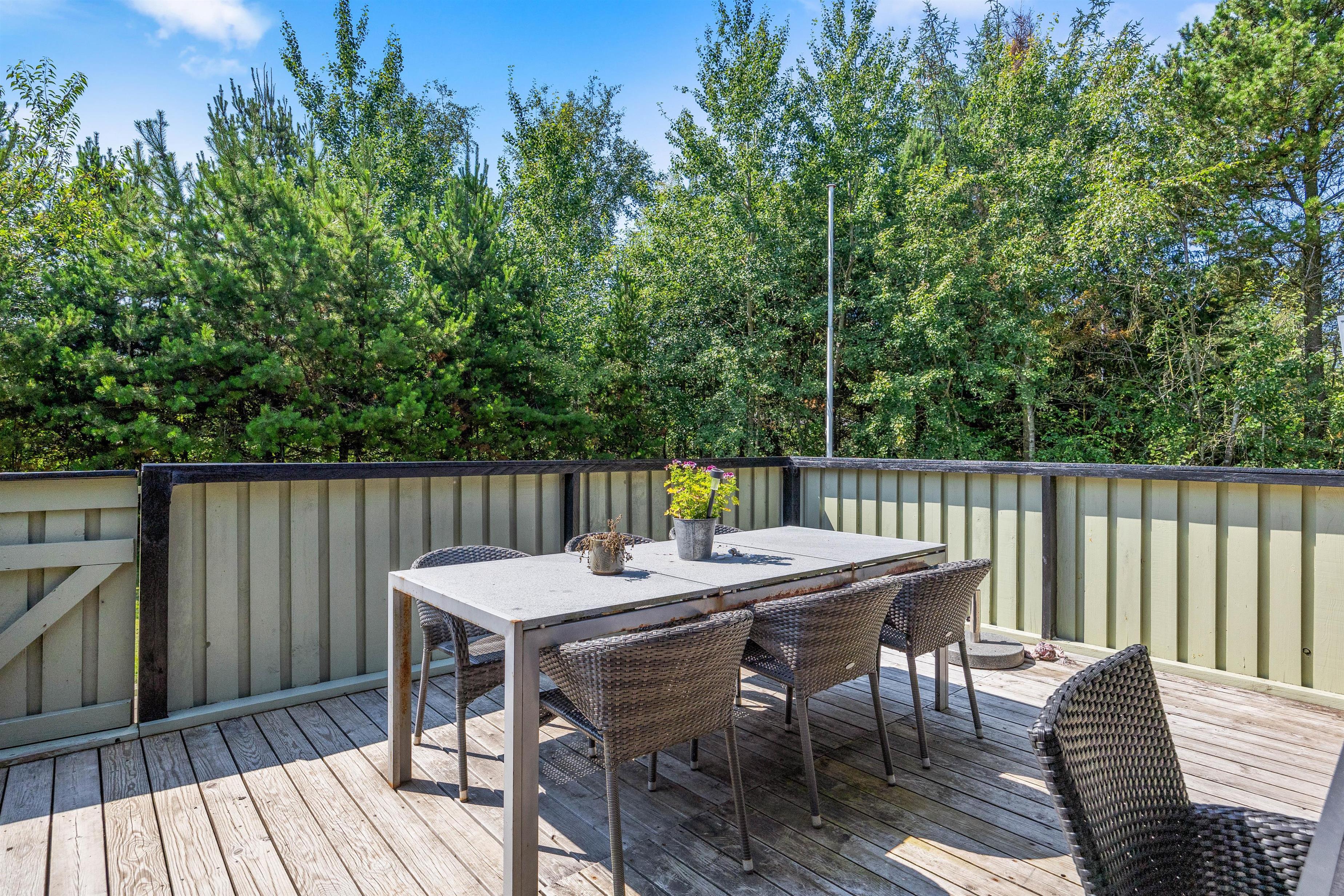 Omgivelserne og terrassen indbyder til masser af udendørsdage, gåture og fred og ro i solen, og efter en herlig dag ude i den friske luft, kan I hurtigt få varmen igen i saunaen, der sørger for, I kan få ladet batterierne op igen.
