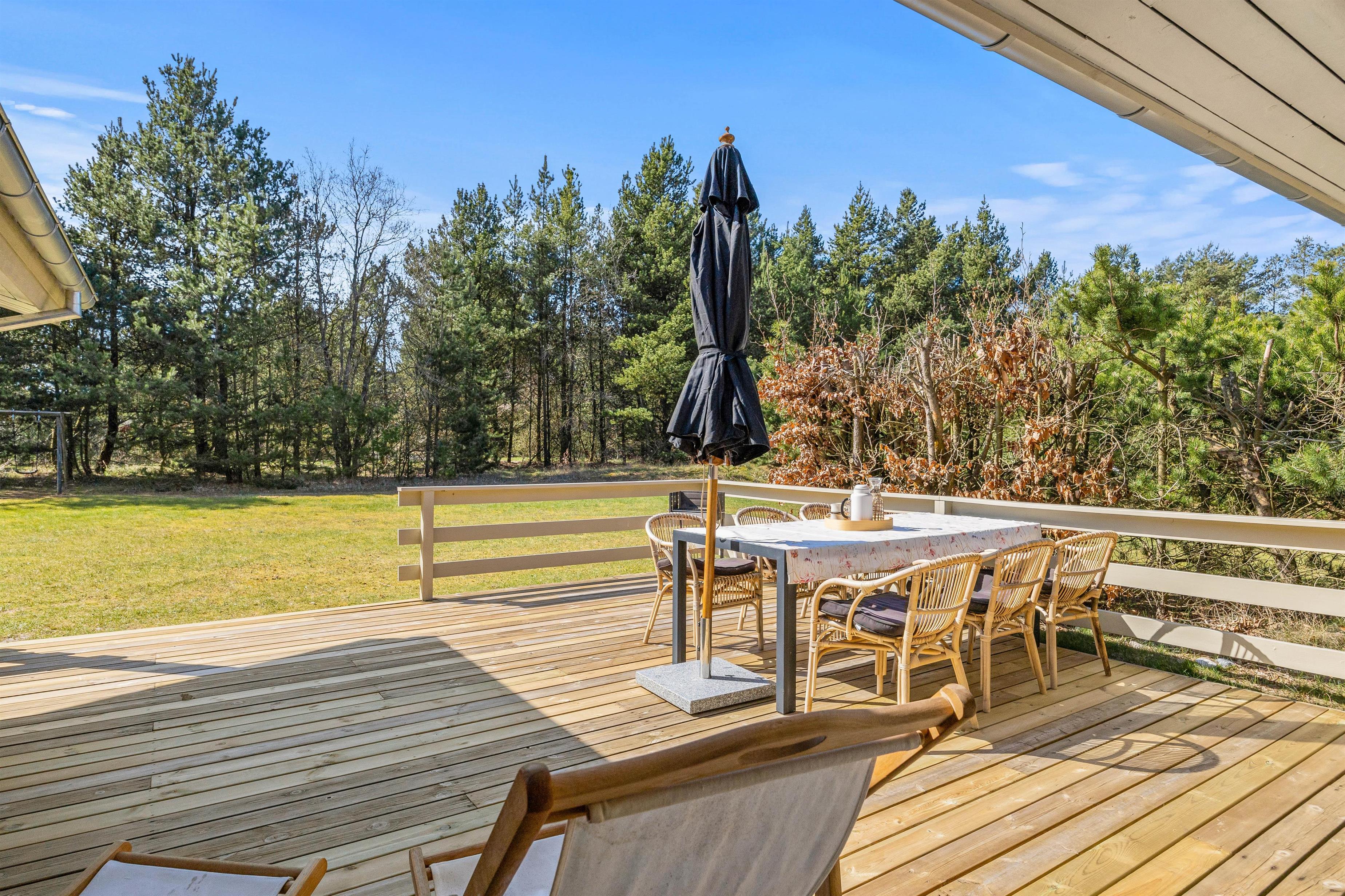 Sommerhuset ligger i fredfyldt ferieområde med en smuk og rig natur. Både fra husets spiserum og opholdsstue har I direkte adgang til de skønne udearealer, hvor I kan nyde udelivet fra morgen til aften. En del af terrassen er overdækket. Her kan I hygge, spise og slappe af med lidt ekstra læ.