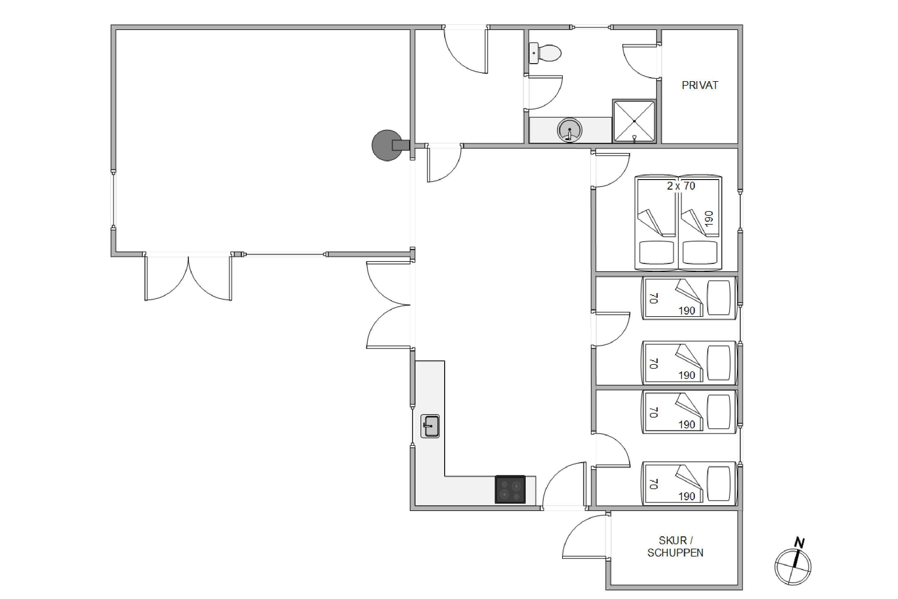 Sommerhuset har desuden en dejlig stor plænegrund, som giver masser af plads til leg og aktiviteter. Her kan hele familien også samles til et spil bold eller et slag vikingespil på en varm sommerdag.