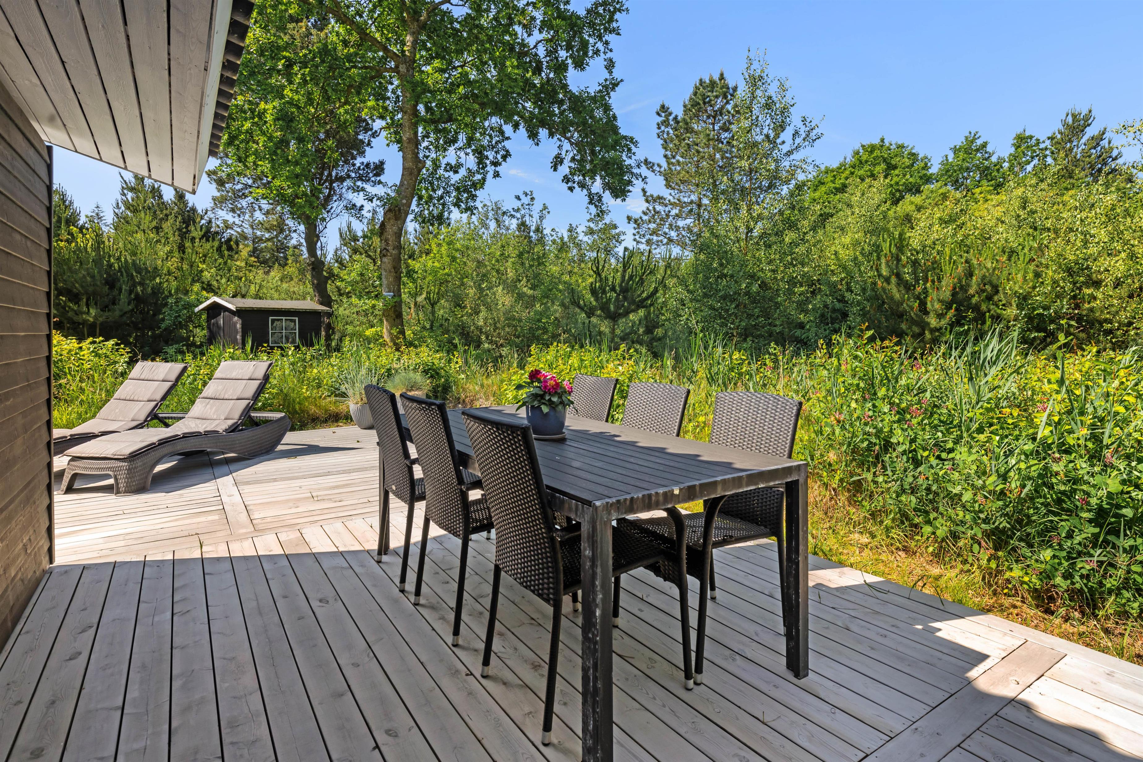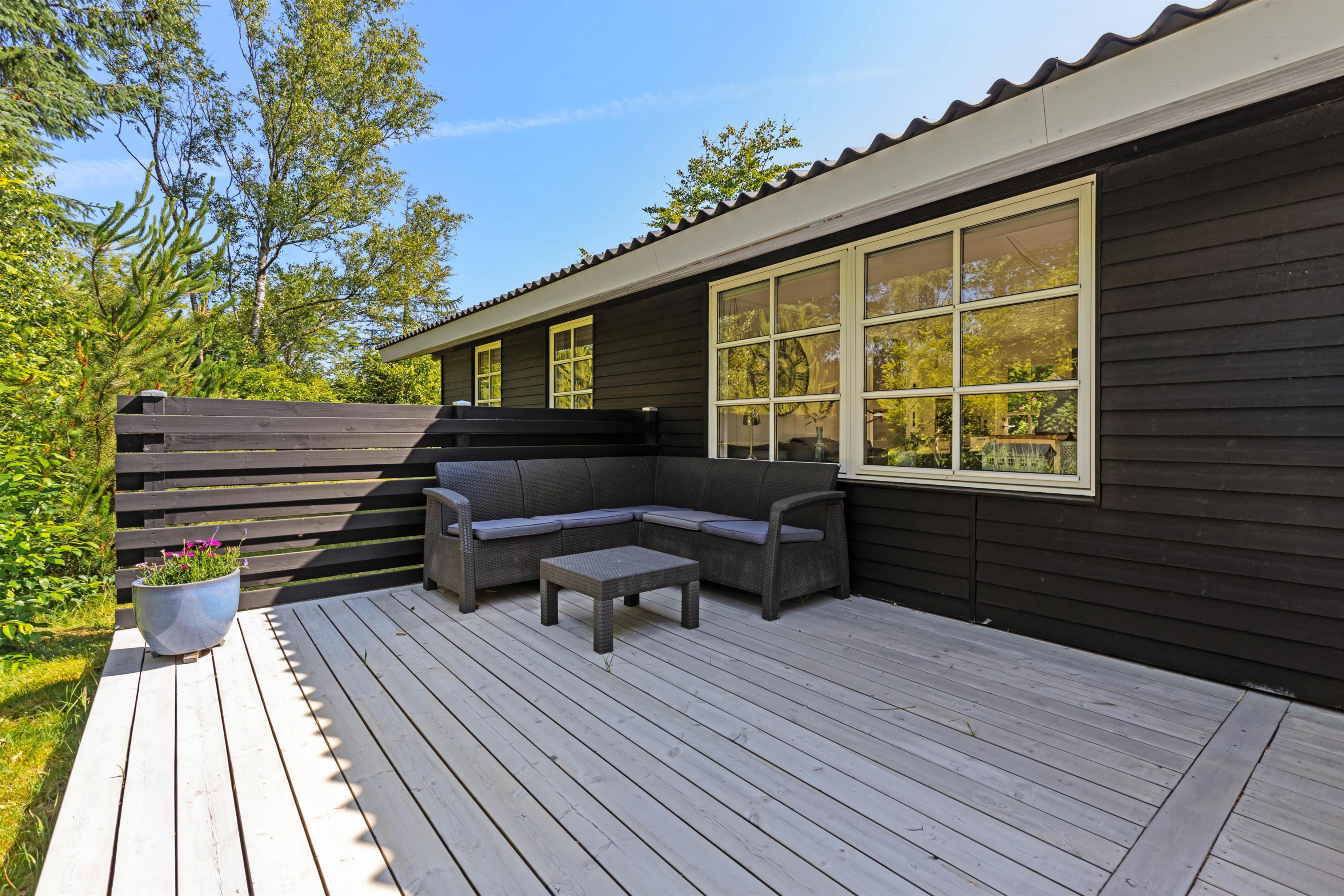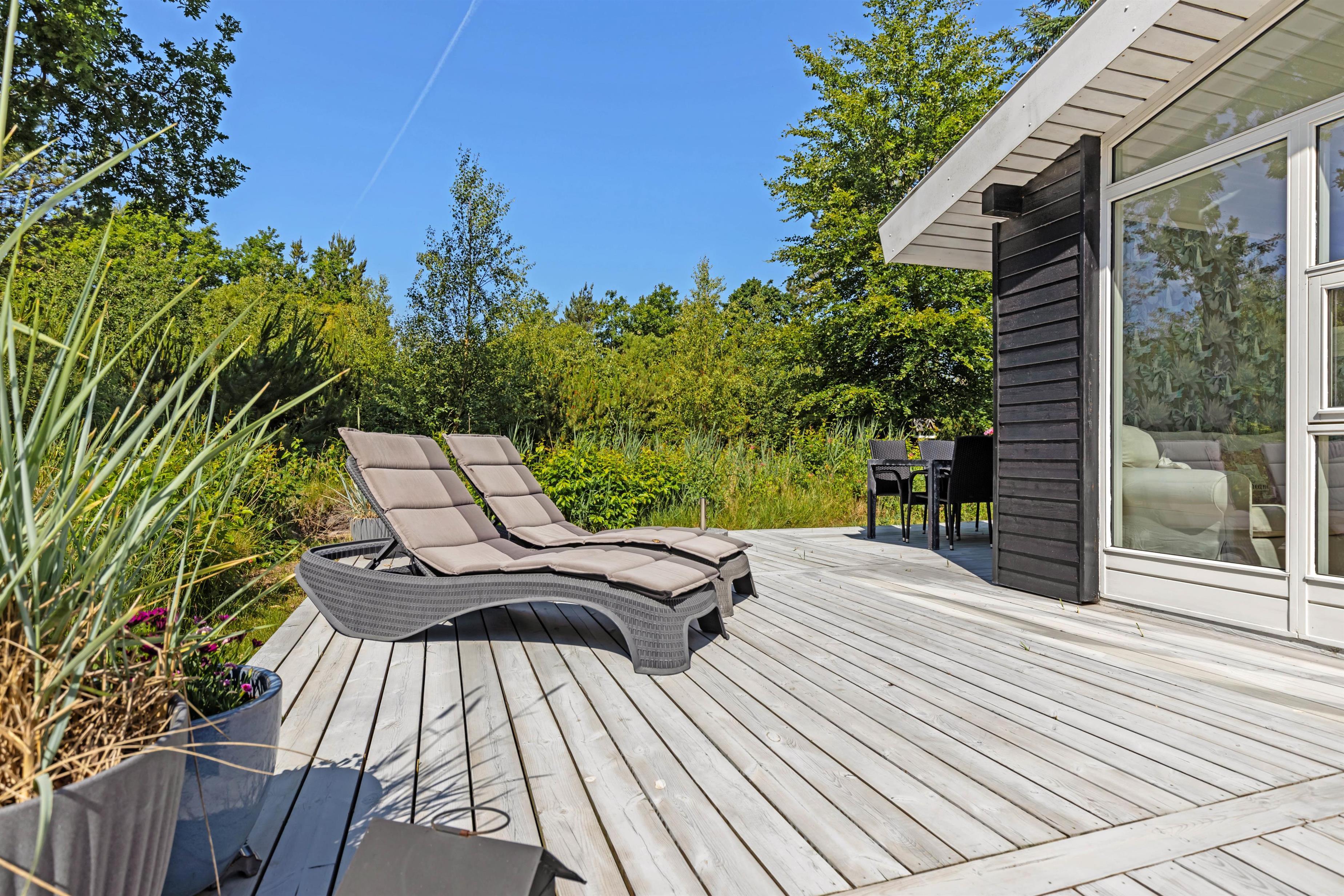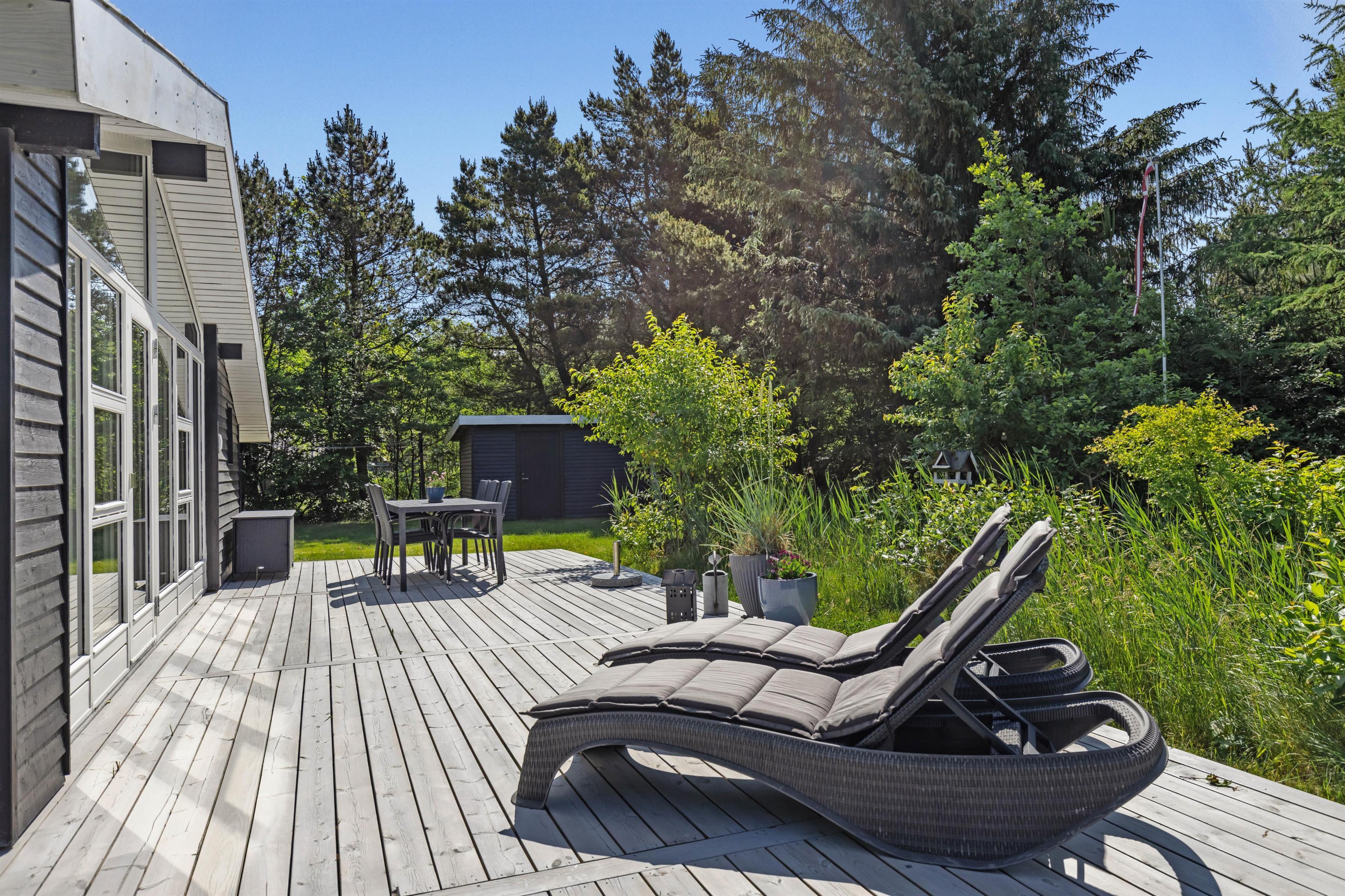 Foran huset finder I hele to terrasser, hvor der er god plads til at nyde den friskbryggede morgenkaffe eller holde en lækker grillaften sammen med hele familien. I kan også nyde de varme solskinsdage i fulde drag fra liggestolene.