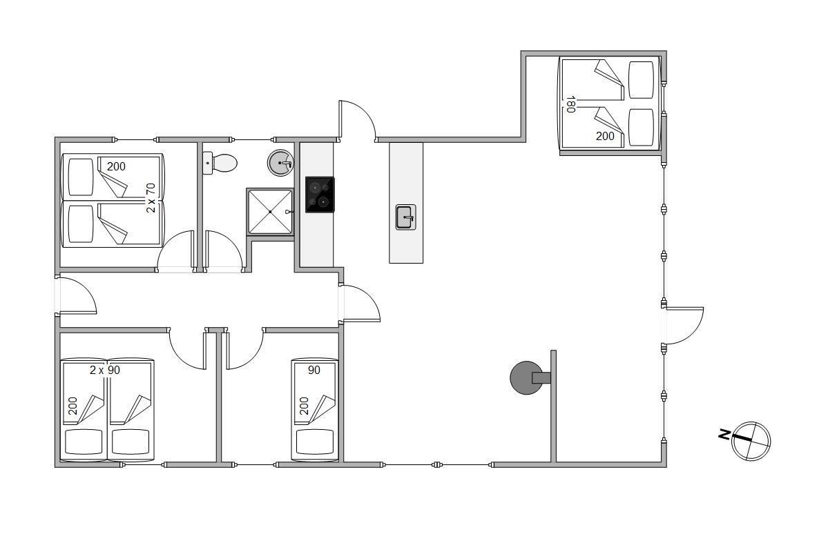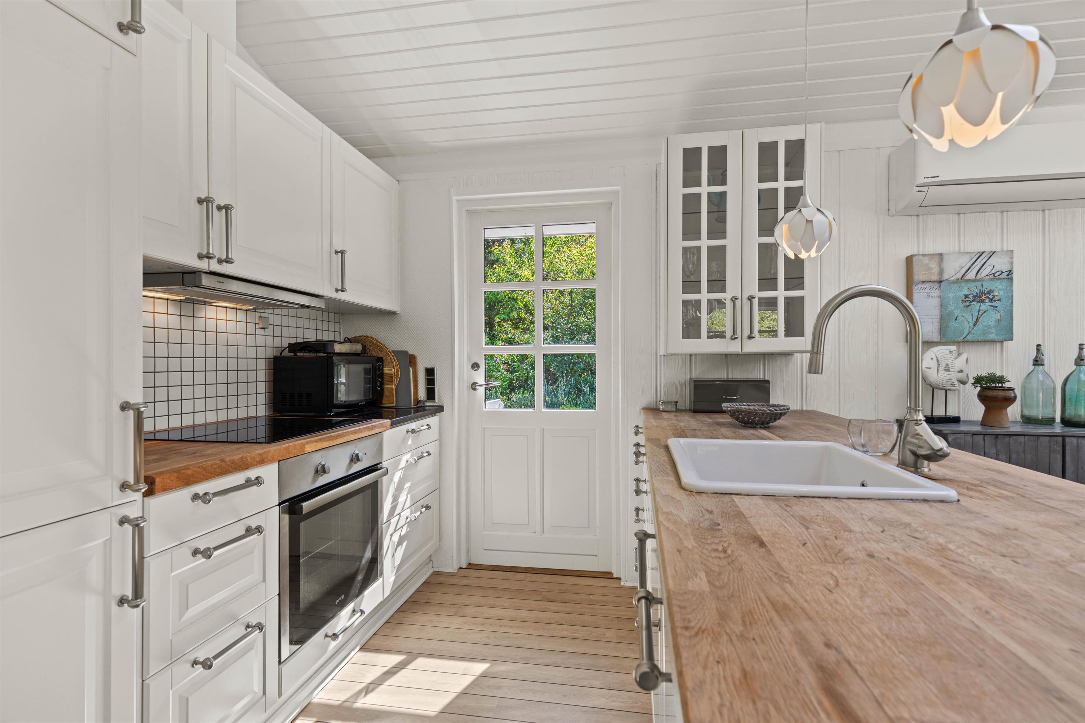 Det karakteristiske træsommerhus er både lyst og moderne indrettet og råder over alt, hvad I får brug for i løbet af ferien. Det veludstyrede køkken, de store vinduespartier, som fylder huset med lys, og brændeovnen, der spreder varme og hyggelig stemning på de kolde feriedage.