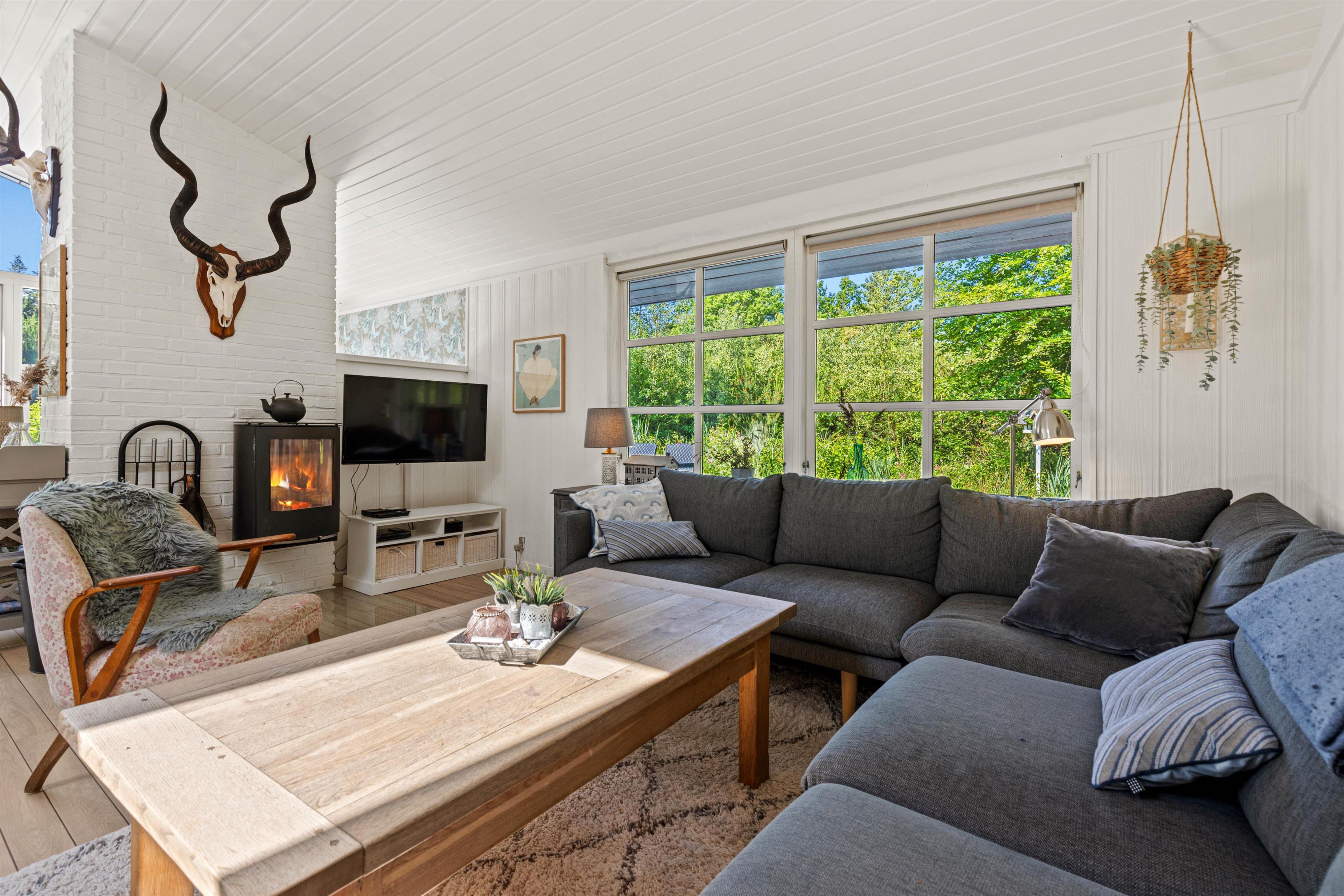 Sommerhuset er omgivet af skov, hvilket giver en fredelig og ugeneret atmosfære med rig mulighed for afslapning og hygge. Skoven er også det perfekte udflugtsmål for de små gæster, der kan udforske det spændende skovområde og dyrelivet.