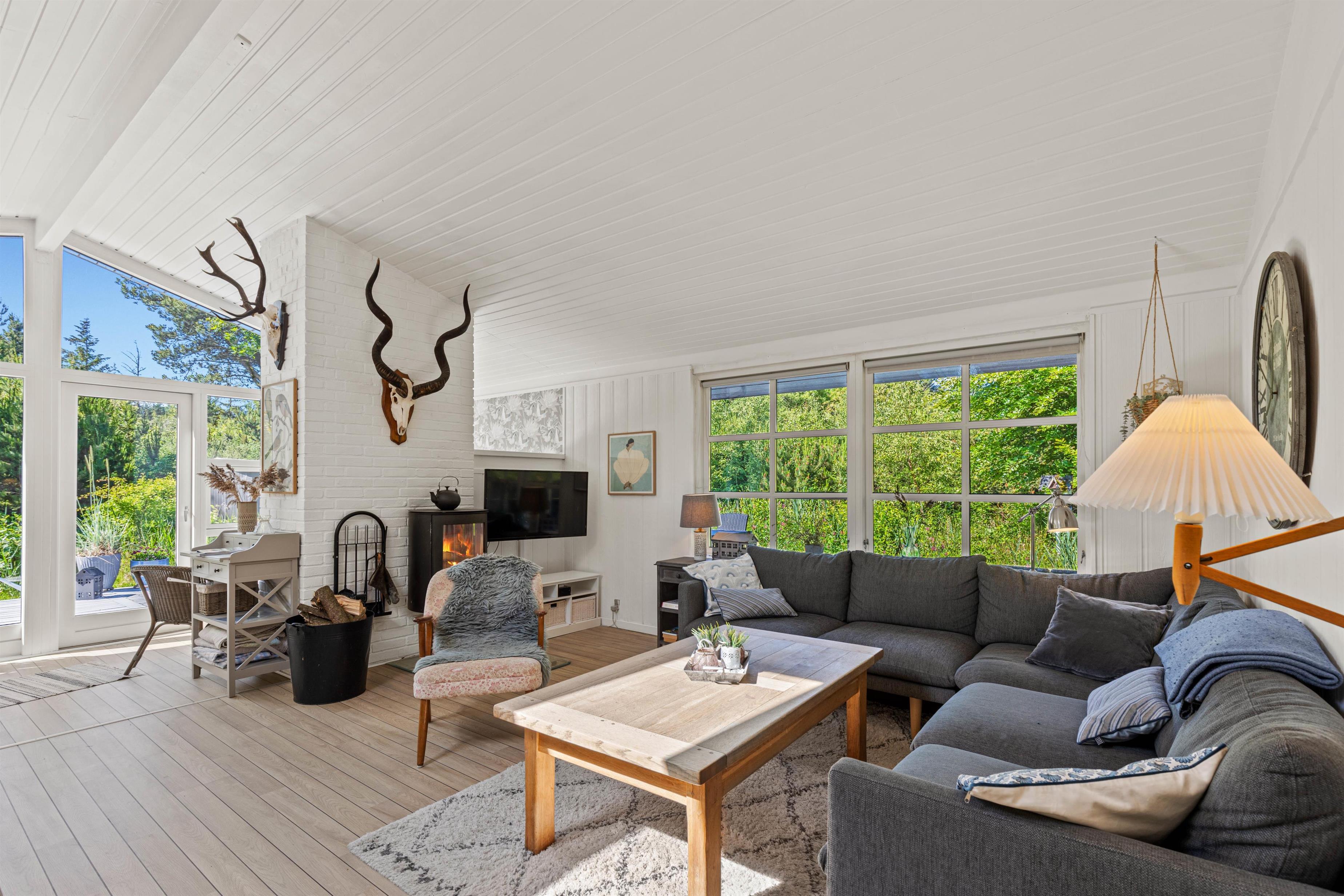 På Kirkeflod 2 midt i Houstrups smukke skovområde finder I dette moderne og charmerende sommerhus med plads til hele familien. Huset er udstyret med alt, hvad feriehjertet begærer, og har ud over de to åbne terrasser og den store græsplæne endnu mere at tilbyde.