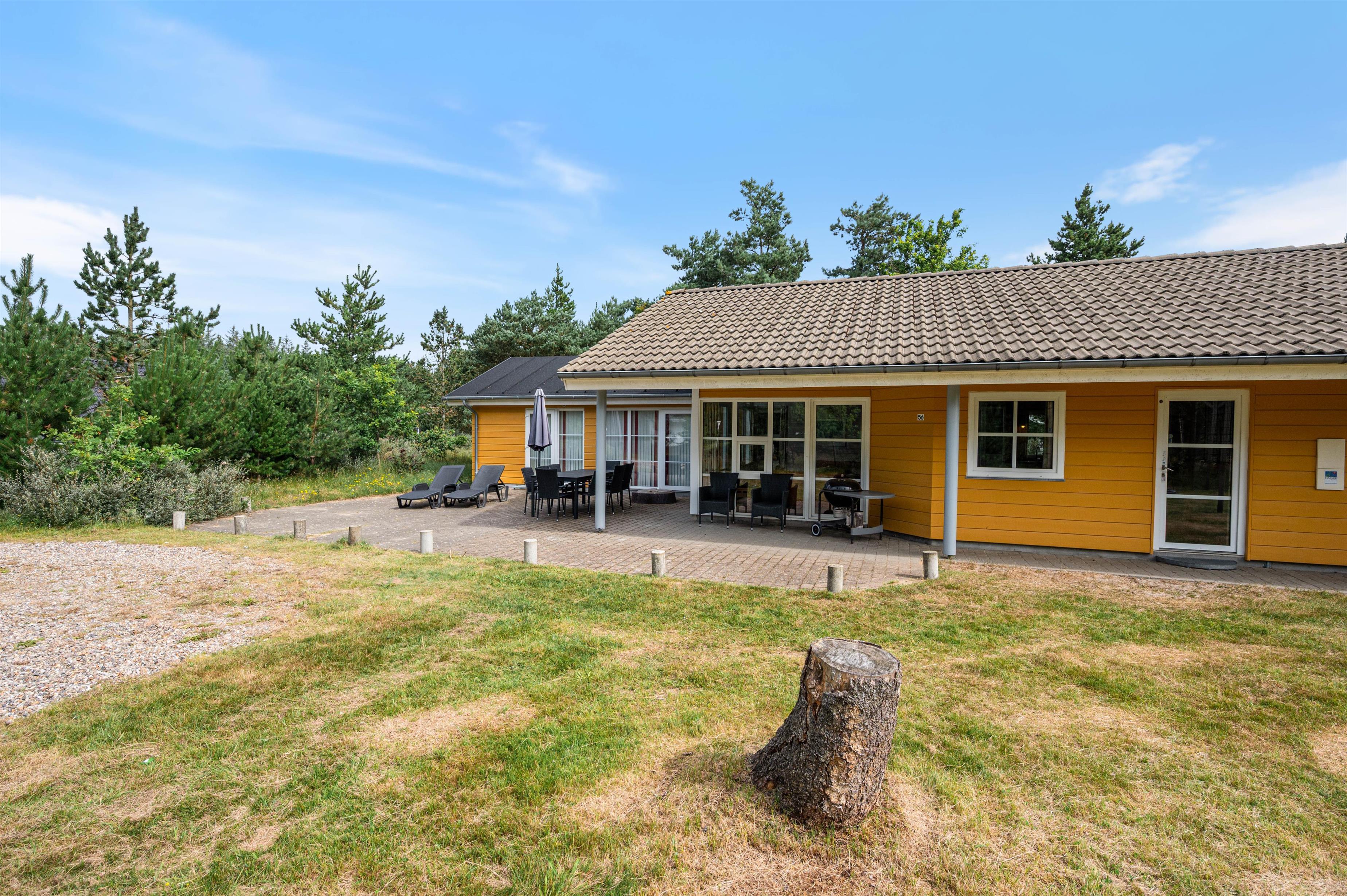 Guldvangen 56 i Houstrup er et skønt og hyggeligt sommerhus, som kan huse op til 6 personer. Huset er opført i 1997, rummer 94 kvadratmeter og danner de perfekte rammer om en afslappende ferie. Her er der også tænkt på familiens firbenede medlemmer, for op til 2 hunde er velkomne. Når dagen går på hæld, kan I nyde den ultimative afslapning i husets tømmespa eller sauna, hvor både krop og sind kan lade op. De yngste gæster er heller ikke glemt – her venter både sandkasse, gynge og en hyggelig hems, der indbyder til mange timers leg og latter.