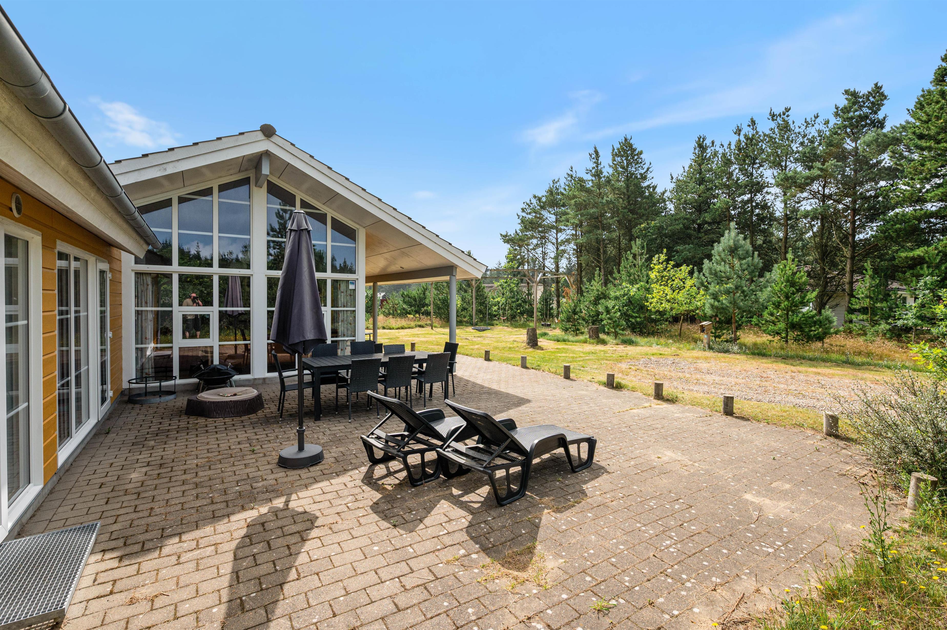 Udendørsarealet lader jer nyde naturen og den friske luft. Huset er placeret på en dejlig naturgrund, der inviterer til afslapning og leg for både børn og voksne. De mindste familiemedlemmer kan more sig i sandkassen eller på gyngen, mens I slapper af på den rummelige terrasse. Terrassen er både åben og overdækket, hvilket giver mulighed for hyggelige måltider og afslapning i al slags vejr. For dem, der kører elektrisk, er der et ladestik til el-bil med CEE stik, så bilen kan oplades, mens I nyder jeres ophold.
