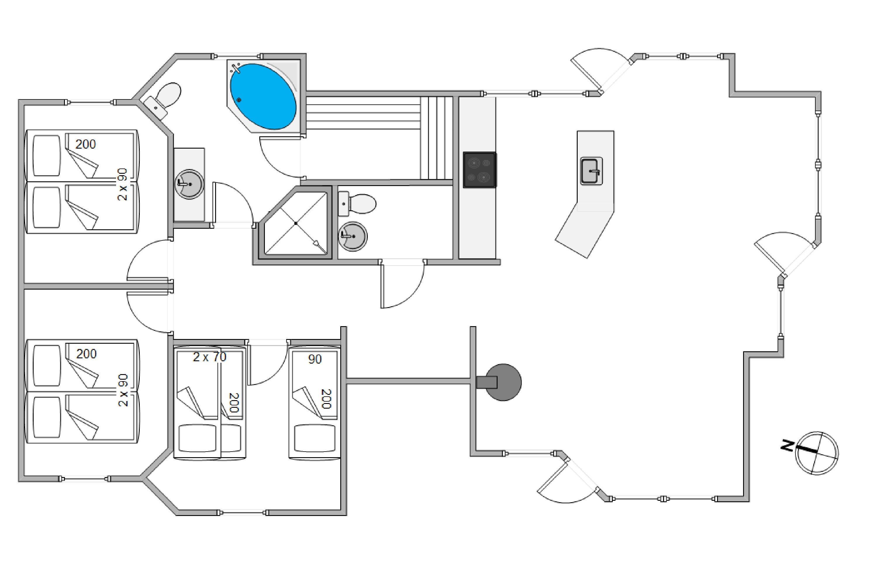 Er I på jagt efter et fredeligt beliggende ikke-ryger hus i Houstrup? Så er dette lyse og kærligt indrettede sommerhus til 7 personer måske det rigtige valg. Her er rammerne sat for en afslappende og oplevelsesrig ferie med familien, og med eget sauna og spabad kan I forkæle jer selv og hinanden ekstra meget i løbet af ferien.
