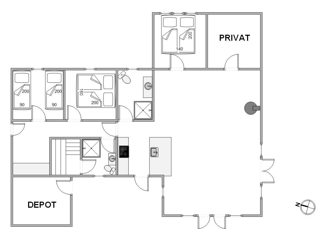 Det 4-stjernede hus ligger midt i Houstrups skønne ferieområde, og her er der ikke overladt noget til fantasien. På den store terrasse kan I smide fødderne op af og nyde feriedagene i liggestolene, og om aftenen kan der grilles og spises en lækker middag rundt om havebordet, mens morgendagens planer lægges.