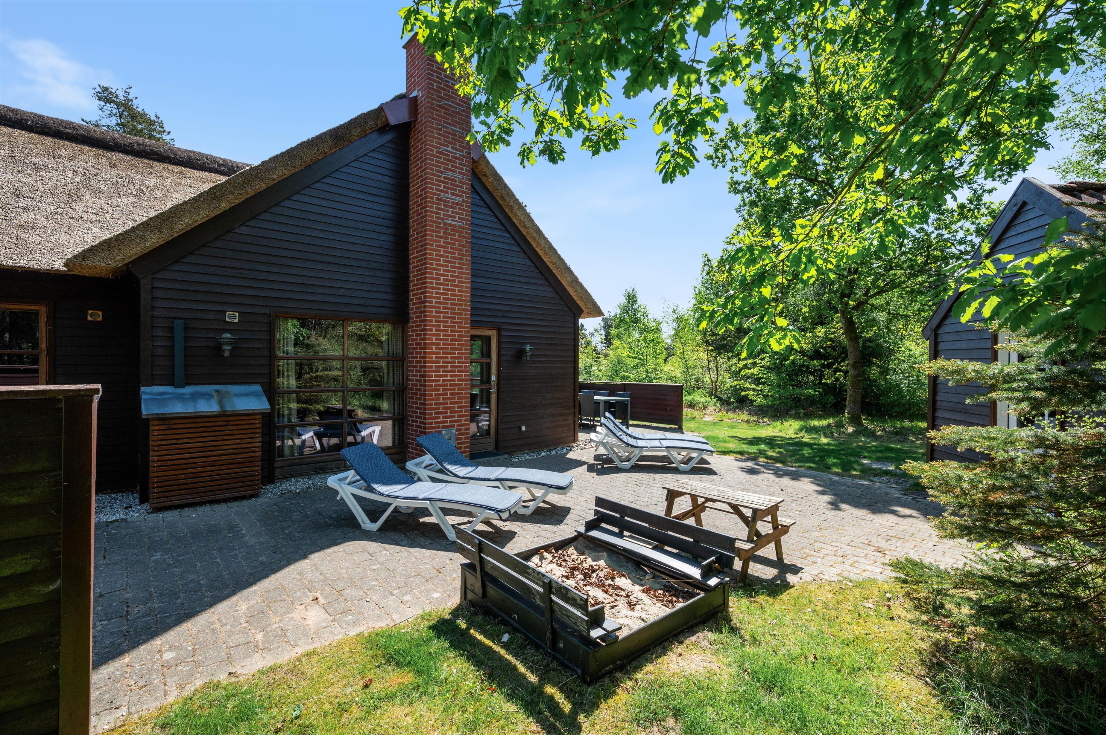 Ud over den store terrasse har sommerhuset også en stor have, som jeres børn helt sikkert vil elske. Her vil både gynger og sandkasse står klar til stor glæde for børnene.