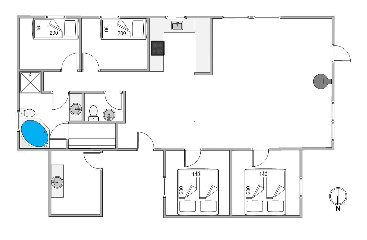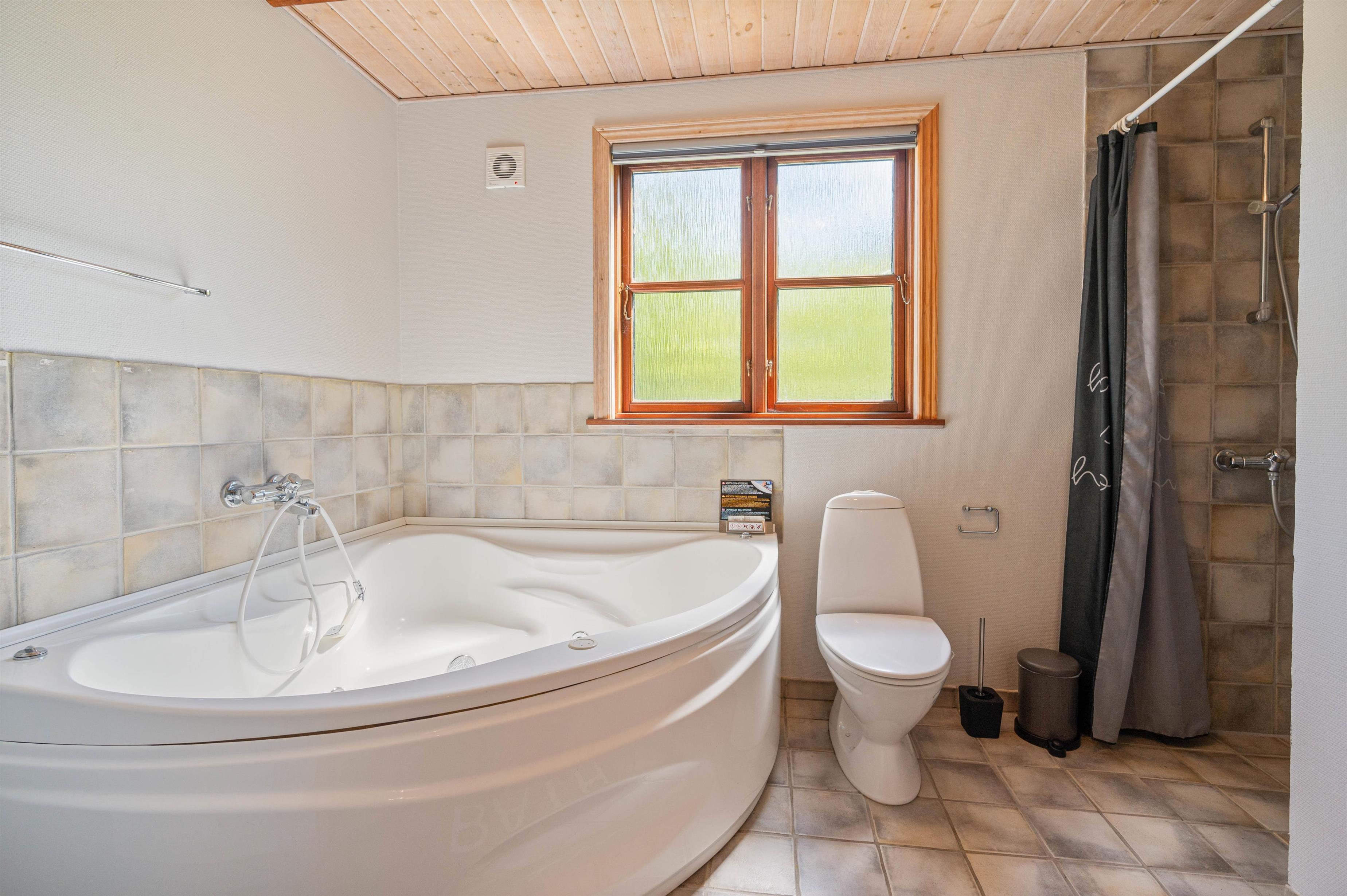 For ekstra afslapning og selvforkælelse under jeres ferie i kan I finde vej til sommerhusets badeværelse, hvor et spabad og en sauna står klar til jer.