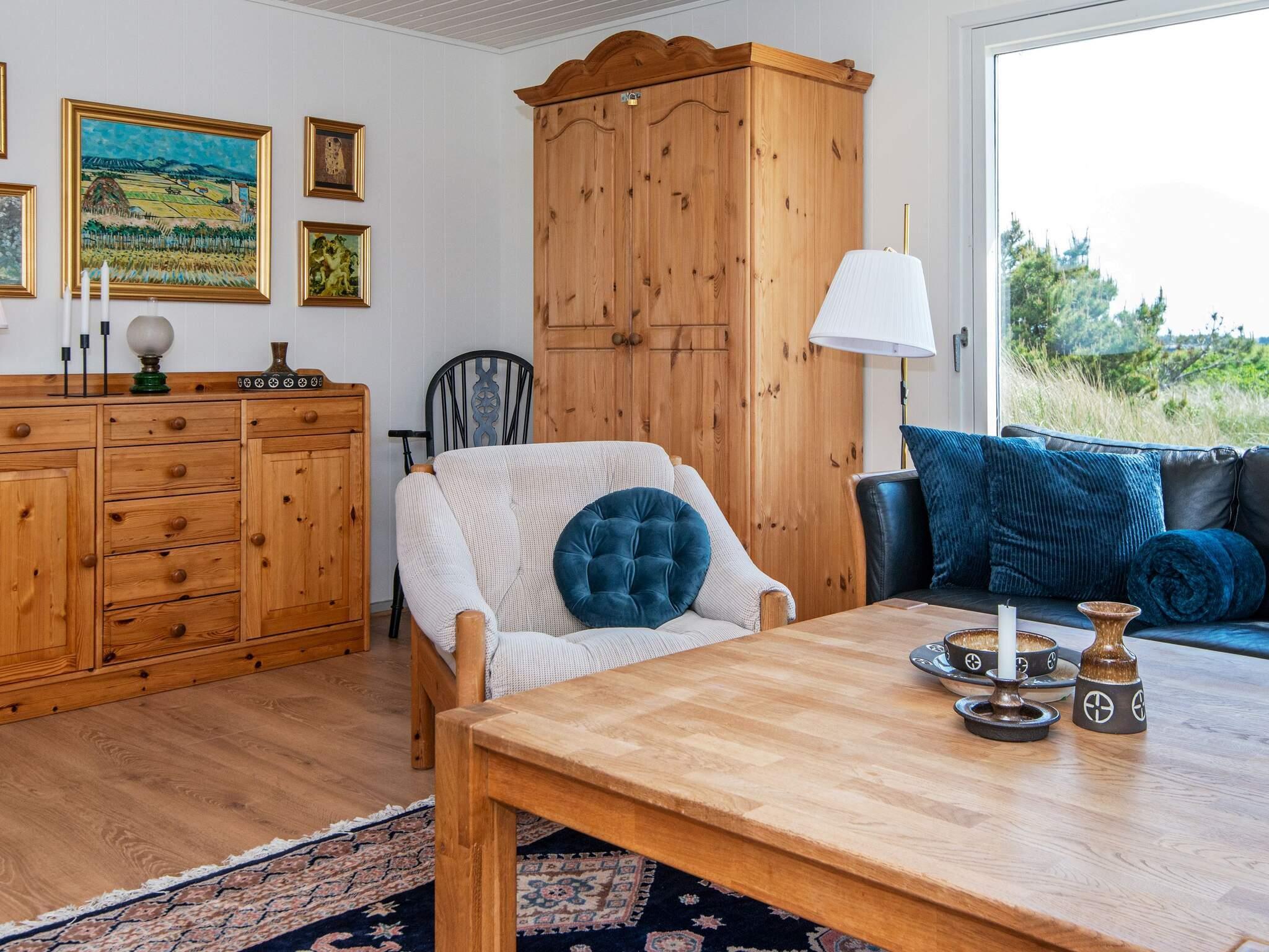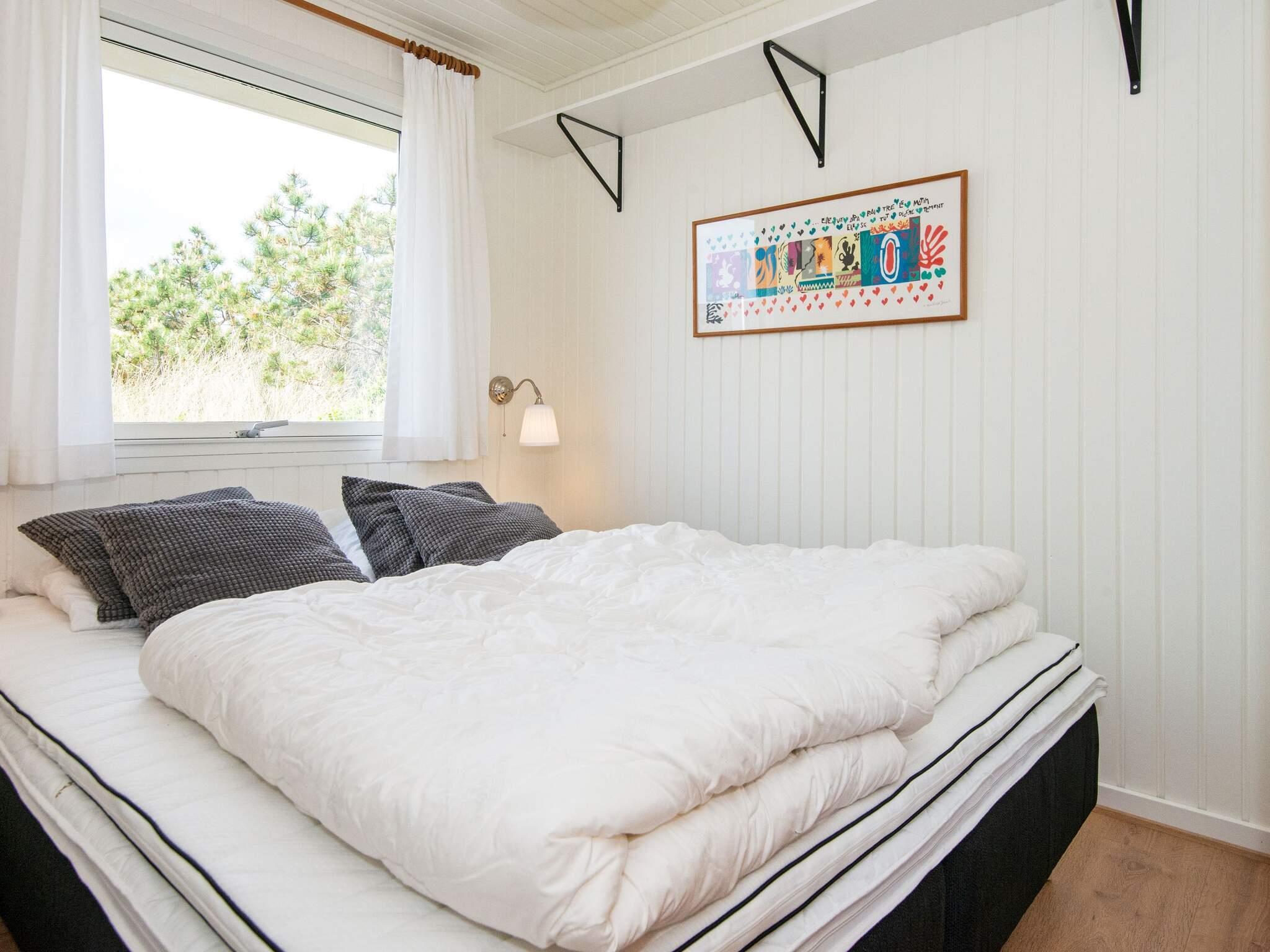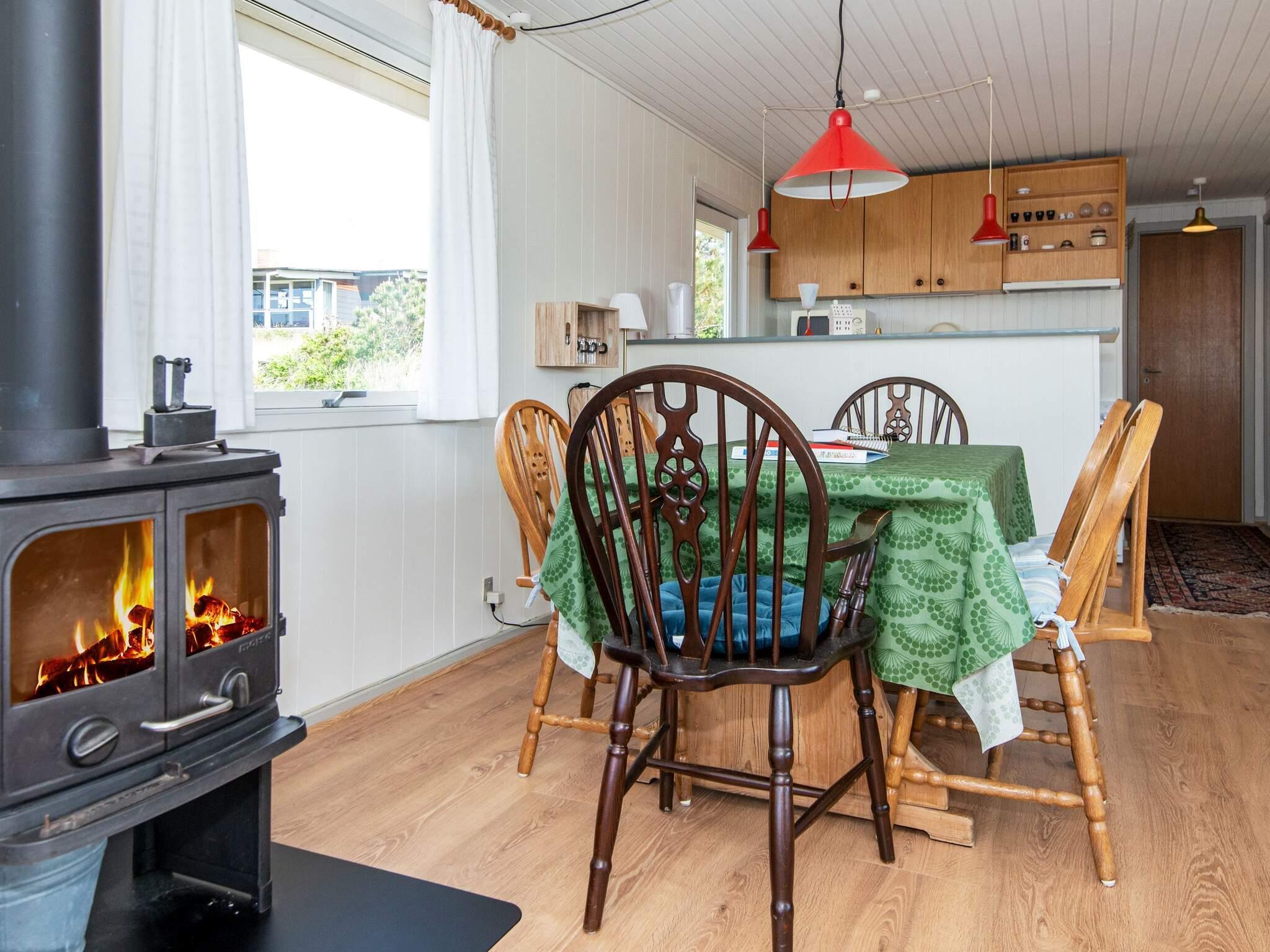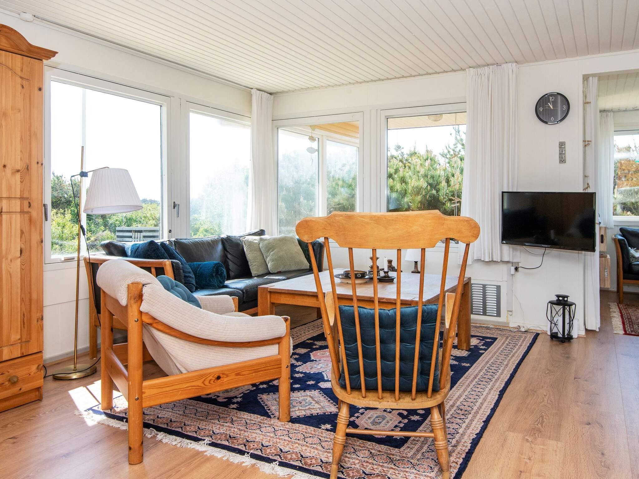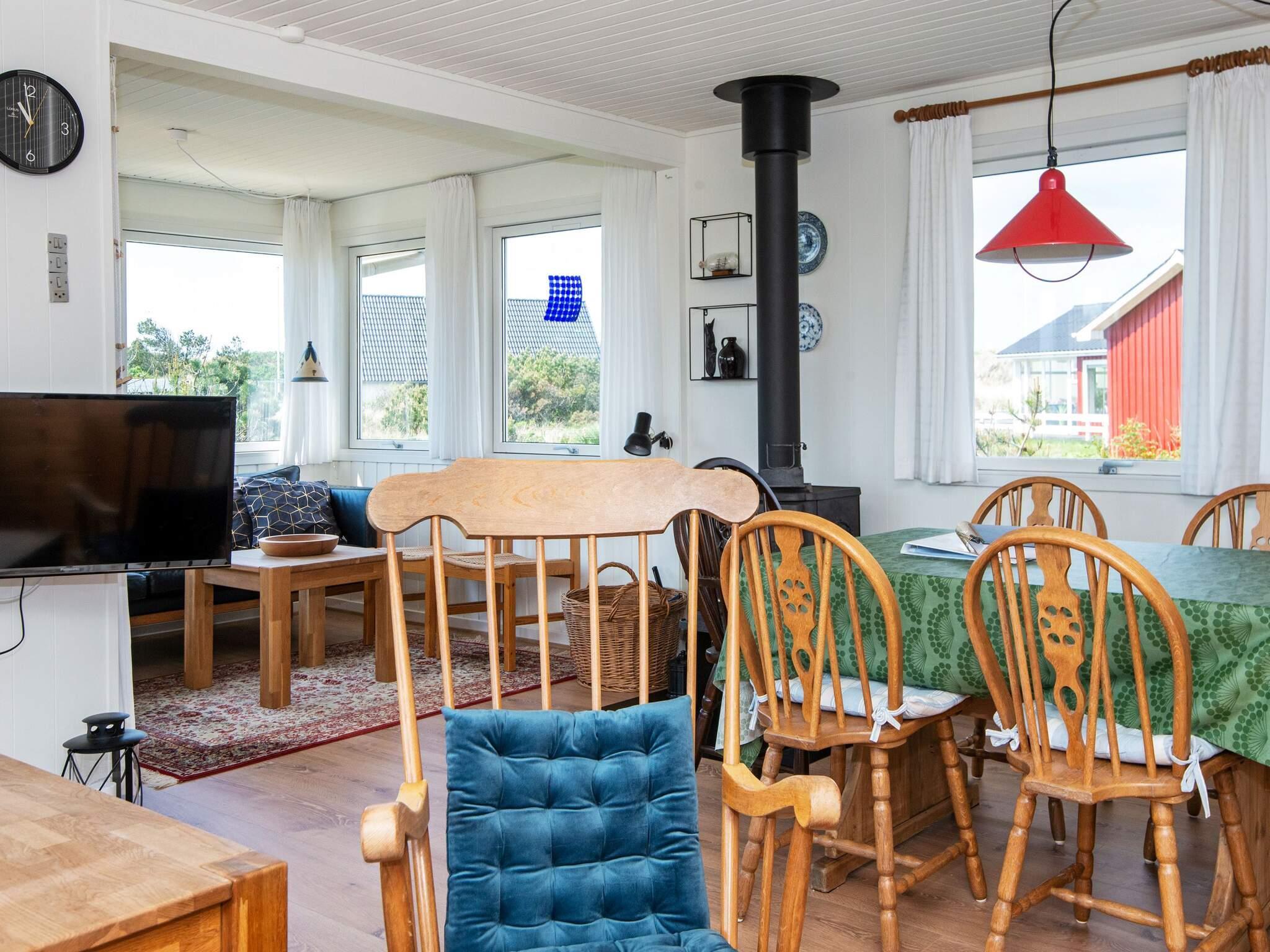 Der er et fantastisk lysfald ind i huset fra alle sider. Hele huset har fået nyt gulv og alt er nymalet indvendigt i 2021. Køkken og stue er i åben forbindelse med hinanden og får masser af lys fra glaspartiet. Her kan I bl.a. nyde aftenerne med en god bog eller se TV. Der er TV med DR's kanaler samt tyske. Der er ligeledes brændeovn til at skabe den rigtige feriestemning. Huset har 3 soveværelser, 2 med dobbeltsenge (på det ene værelse er det 2 enkeltsenge, der kan skubbes fra hinanden. Det sidste værelse har en køjeseng med 2 sengepladser. I det store soveværelse er der DVD-afspiller, TV og Bob-spil til fri afbenyttelse. I kan nyde morgenkaffen og middagssolen på de nye træterrasser mod øst og syd, eller den af klitter afskærmede terrasse mod øst. Om aftenen kan I grille og slappe af på den overdækkede terrasse, mens mørket langsomt sænker sig.