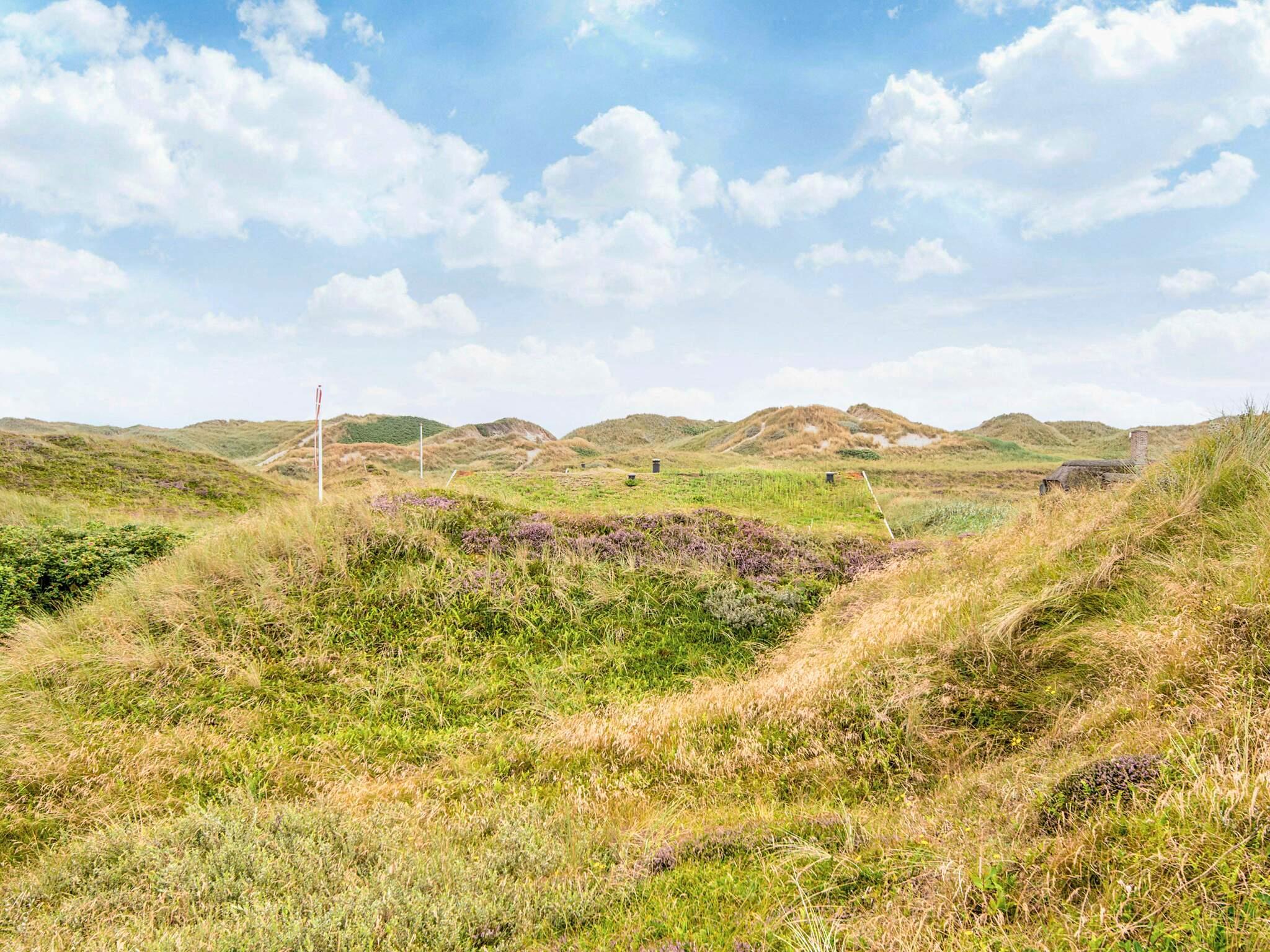 Tæt på Vesterhavet ligger dette højtbeliggende sommerhus på kuperet grund, hvorfra I kan nyde en fantastisk udsigt over området og klitterne. Udsigten kan nydes fra såvel husets vestvendte som sydvendte terrasse. Huset er bygget som bjælkehytte og har en rustik og enkel indretning med trævægge, lofter og kokostæpper. Åben stue/køkken, tre soverum, hvoraf et har dobbeltseng, og to har enkeltsenge med en køjeseng over. Køjesengen måler 60 i bredden. Dette er et ideelt hus for naturelskere, der ønsker at trave lange ture i en betagende flot natur, i klitterne og ved stranden og bagefter slappe af foran brændeovnens knitrende flammer. Huset er ikke egnet til handicappede eller gangbesværede.