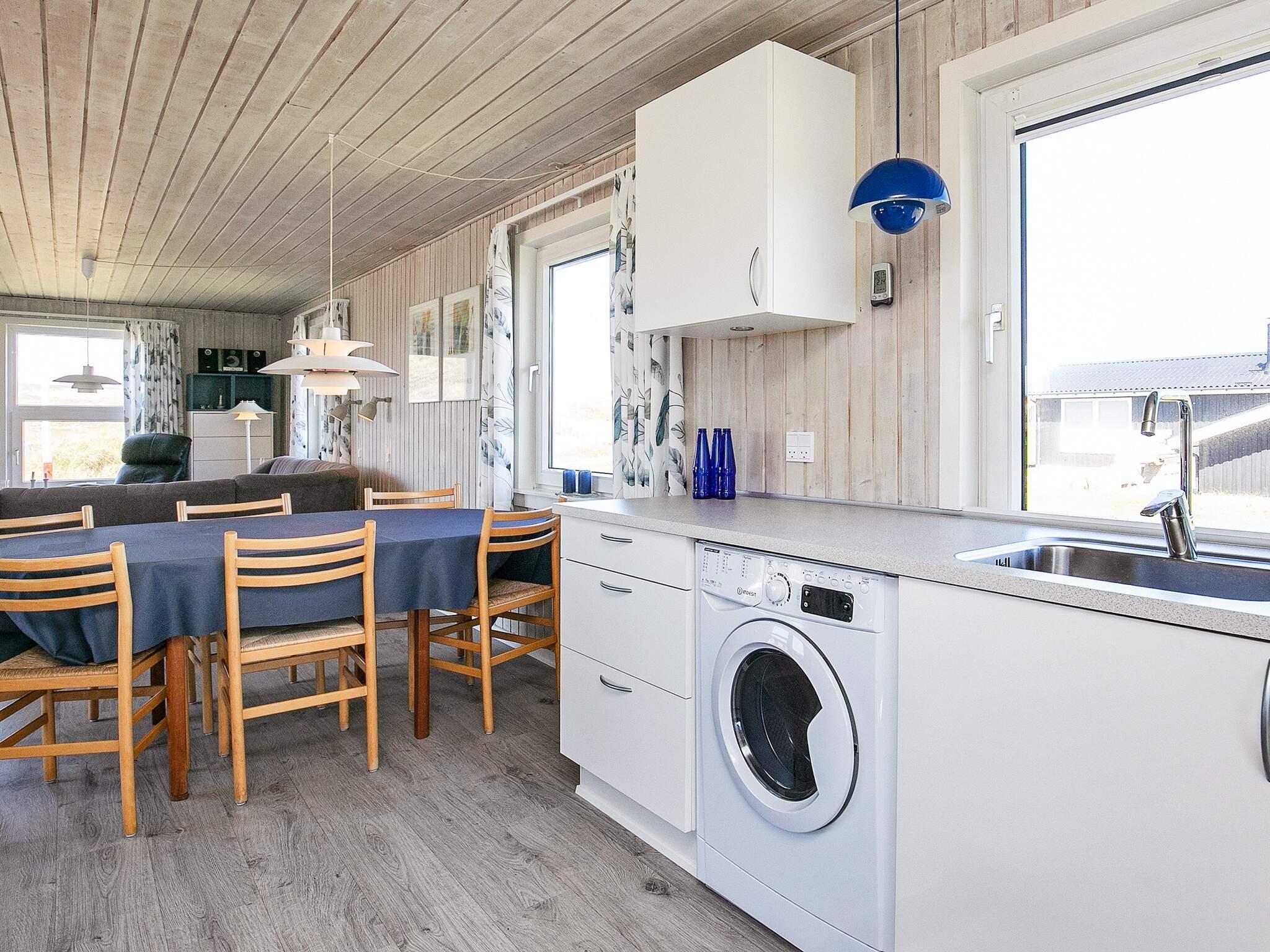Nyd udsigten over det betagende klitlandskab fra husets store, kombinerede stue/køkken. Der er installeret varmepumpe. På den store, helt lukkede, vestvendte terrasse kan I nyde aftensolen, mens I griller. Der er østvendt terrasse med fast bord og bænke.
