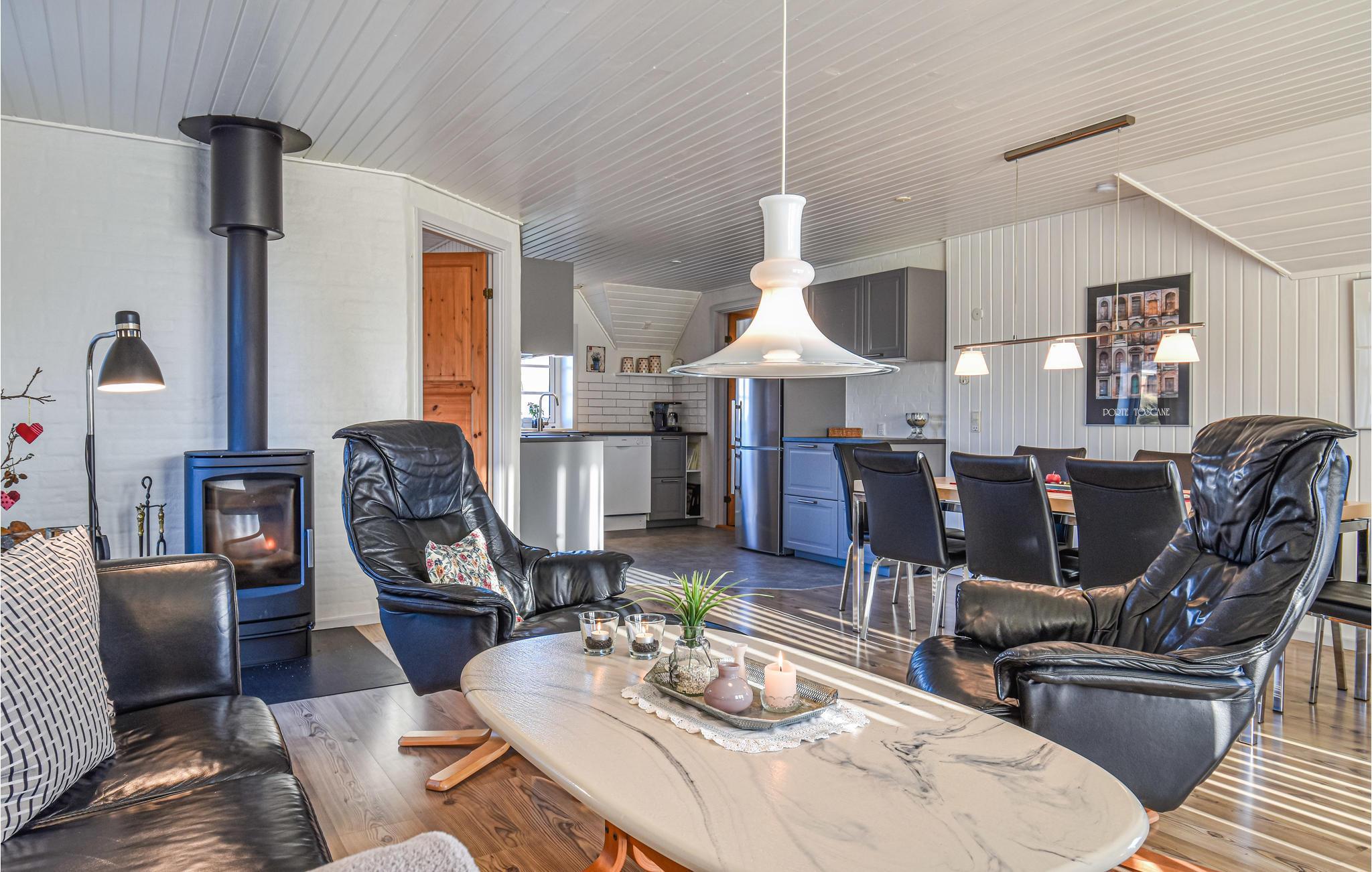 Feriehuset indeholder et veludstyret, kombineret køkken/alrum/stue med bl.a. brændeovn samt varmepumpe som supplerende varmekilde. Varmepumpen har også aircondition til nedkøling på de varmeste dage. 3 soveværelser samt et stort badeværelse med både spabad og sauna samt et gæstetoilet. Feriehuset er perfekt til en herlig familieferie.