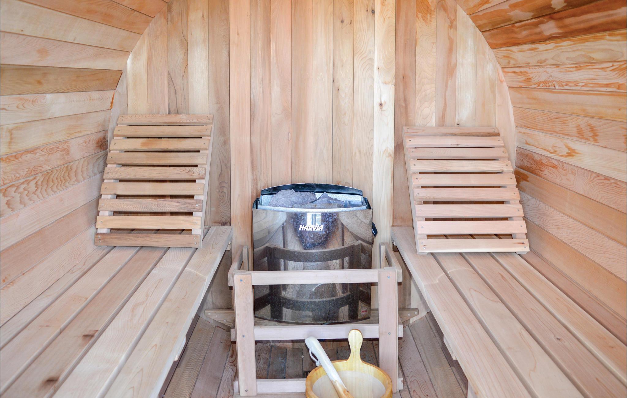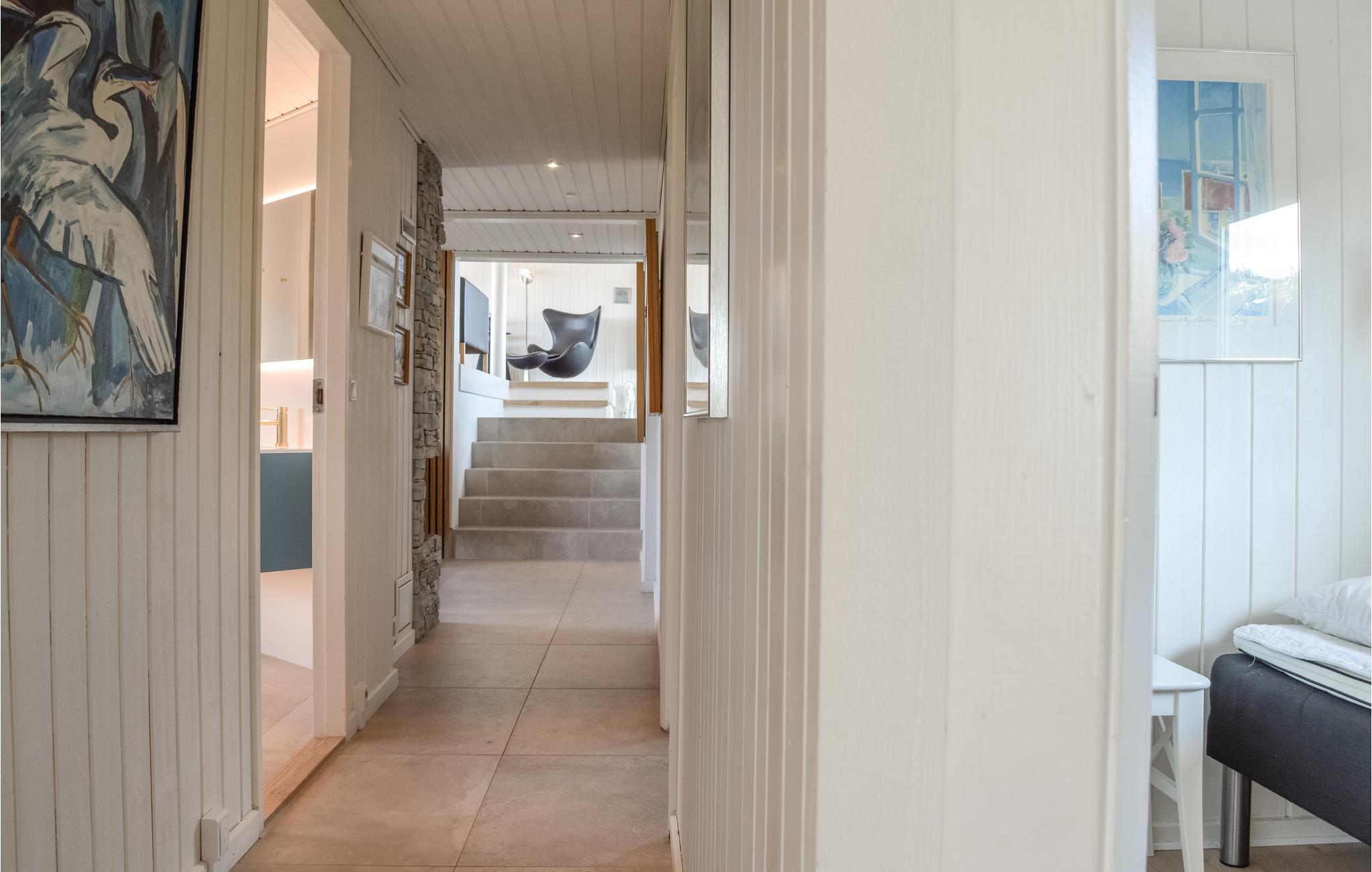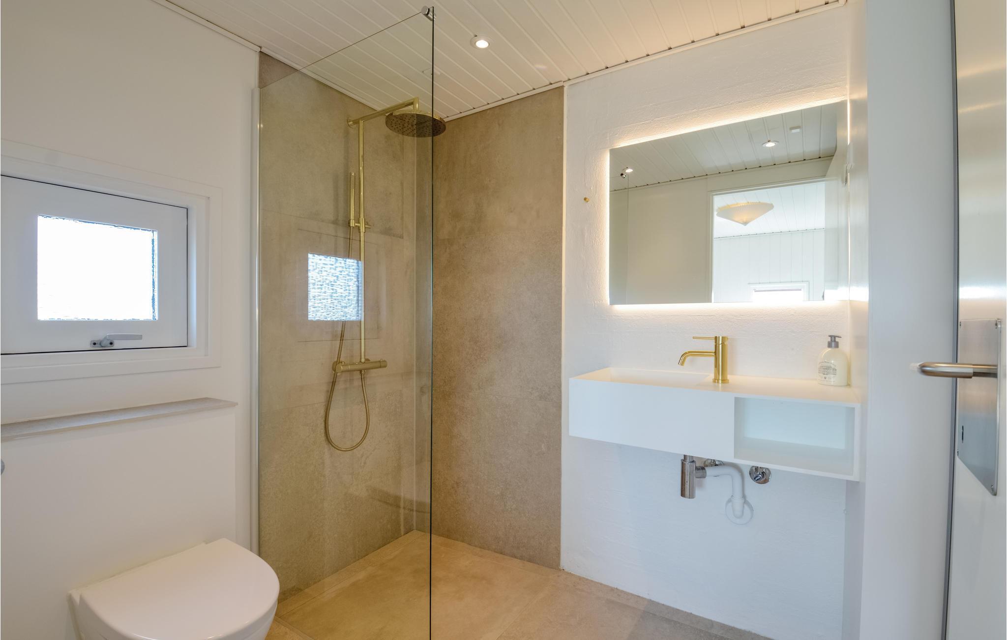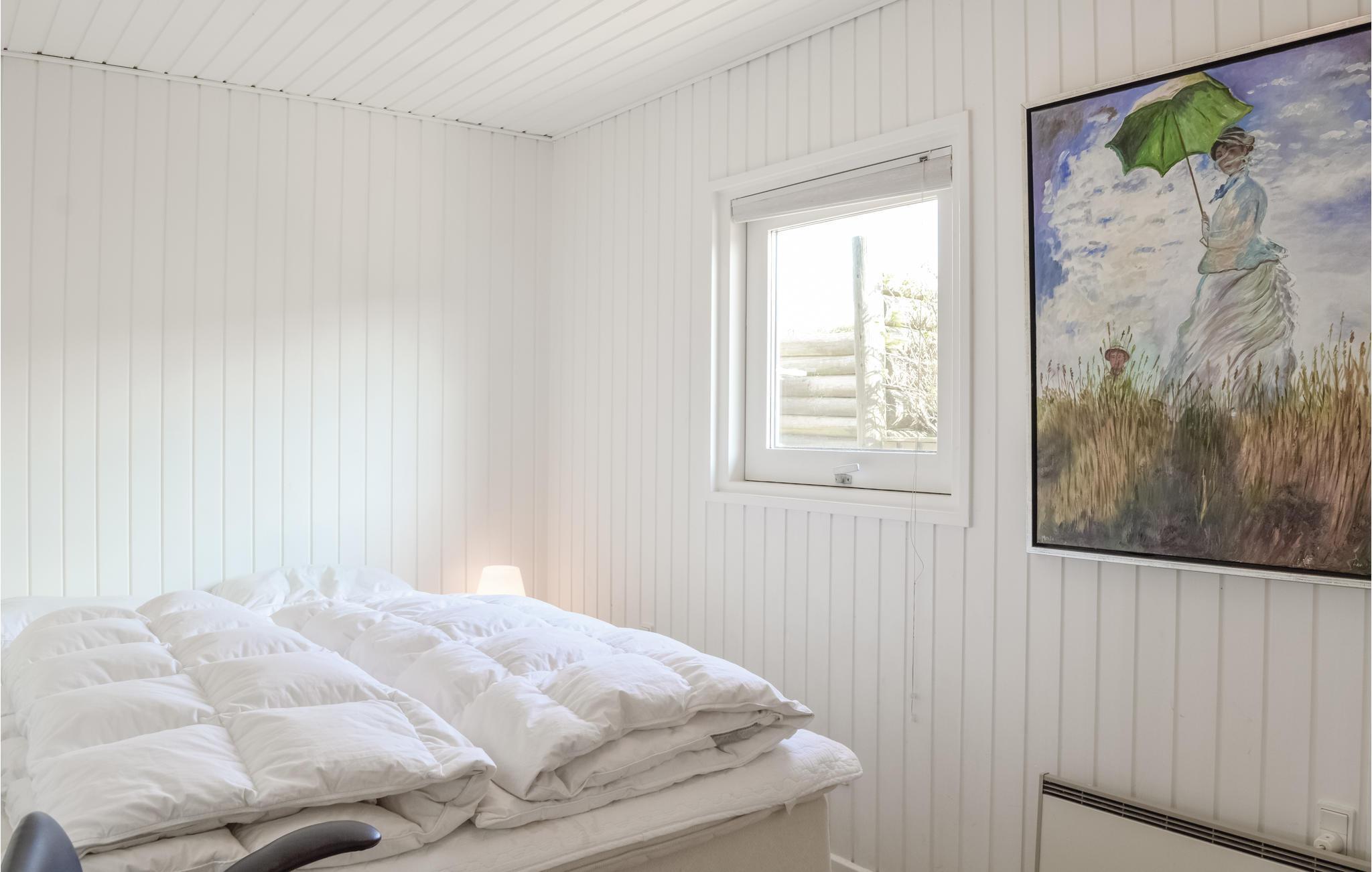 I dette luksuriøse, rigtig godt beliggende feriehus finder I alt til den perfekte ferie. Huset er omgivet af terrasser i forskellige niveauer, alle med en fantastisk udsigt over landskab, klitter, sommerhusområdet og til Vesterhavet. På den ene terrasse findes en standvandsspa og en udesauna, ligeledes med en fantastisk udsigt, så her er lagt op til mange timers udendørs wellness efter en lang gåtur ved det brusende Vesterhav. Når I træder ind i huset, er det første I møder en flot gaspejs, der styres via en fjernbetjening. I den ene ende af huset ligger soveværelserne. Et af de fire soveværelser er et master bedroom med tilhørende badeværelse, dertil kommer endnu et badeværelse med både bruser og et eksklusivt badekar.