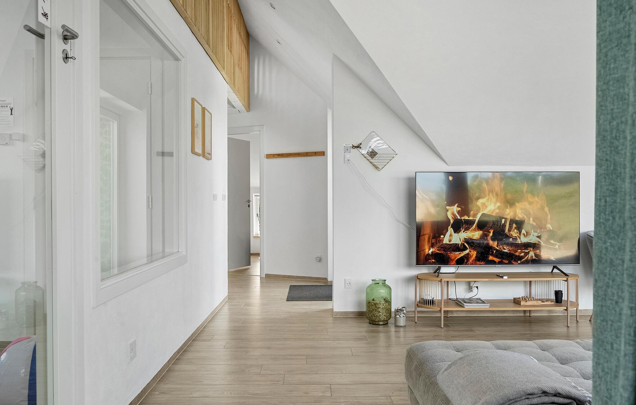 Dette malerisk beliggende hus lægger op til en førsteklasses ferie. Store vinduer, smukke træelementer og elegante indretningsløsninger skaber en indbydende atmosfære, hvor I hurtigt kan lade batterierne op. Lyt til god musik eller tilbring en hyggelig filmaften med familien. Hvis I er mere aktive, kan I hoppe i den indendørs pool eller slappe af i saunaen.