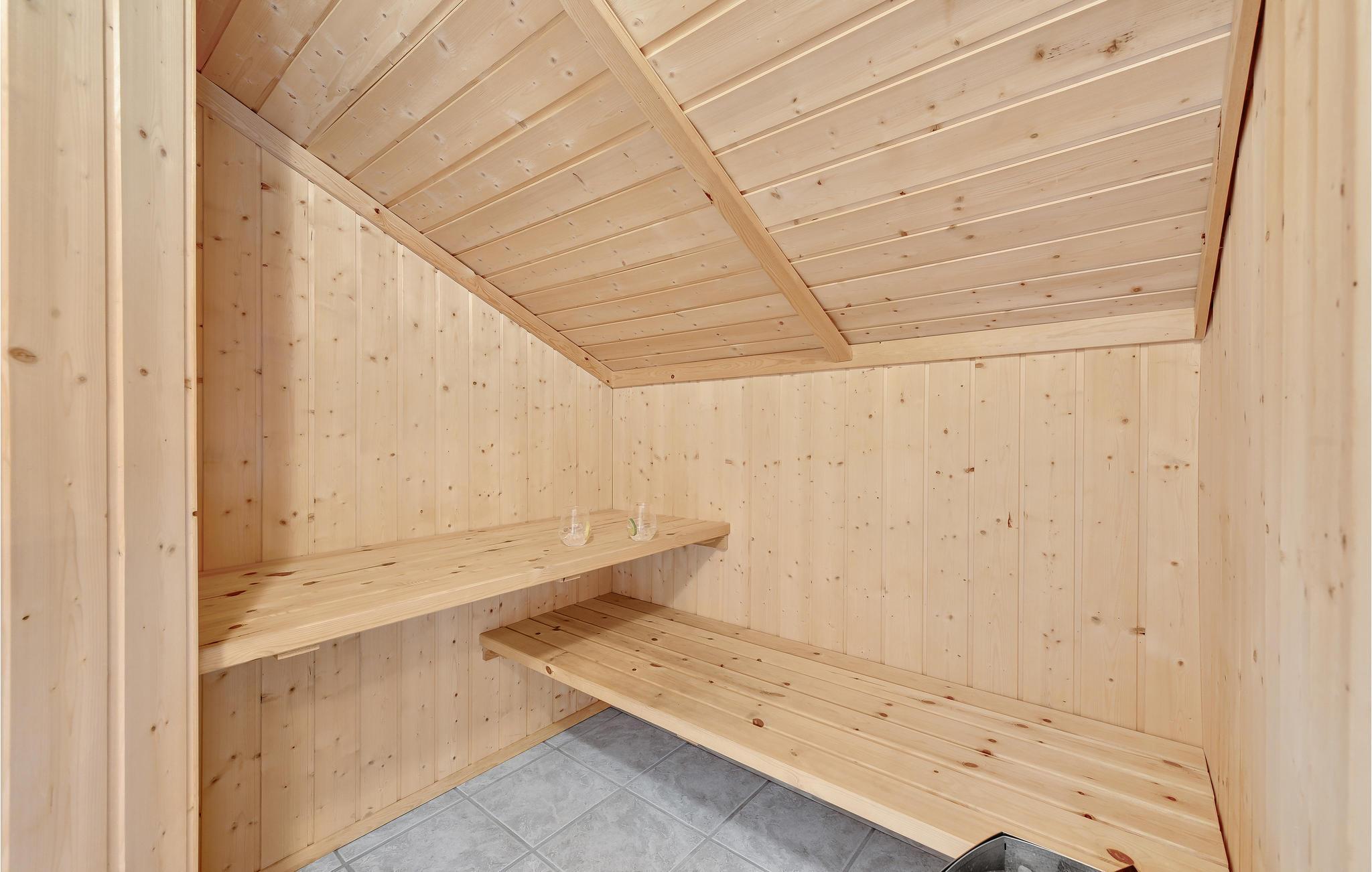Huset ligger på en stor naturgrund med plads til hele familiens udfoldelser. Det er hyggeligt indrettet og indeholder nogle gode soveværelser samt en alkove. Huset omkranses af dejlige terrasser med udsigt over det omkringliggende landskab. I stuen findes både en brændeovn, der skaber hygge og god atmosfære i huset, samt en varmepumpe som supplerende varmekilde. Køkkenet ligger i åben forbindelse til stuen, så feriekokken har god mulighed for at følge med i samtalerne, mens de øvrige gæster hygger sig i de behagelige møbler i stuen.