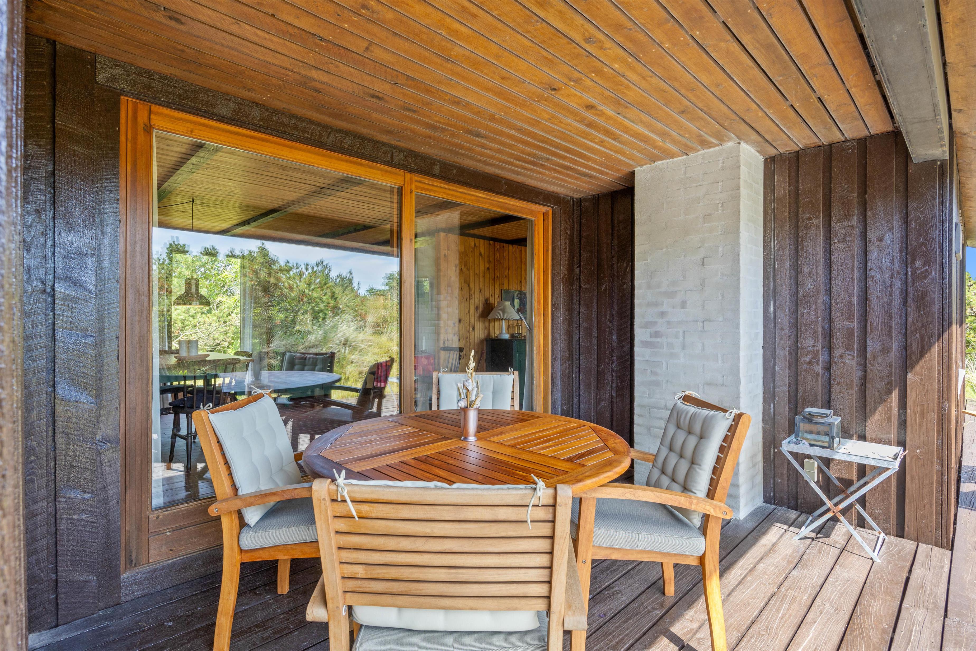 På terrassen i dette feriehus bliver grillaftenen med den tilgængelige gasgrill en oplevelse og den kolde drink om aftenen en sand fornøjelse. Solnedgangen over klitterne og havet kan beundres, og selv om vinden blæser lidt hårdere, er der intet, der forhindrer jer i at solbade på den godt beskyttede og delvist overdækkede terrasse.