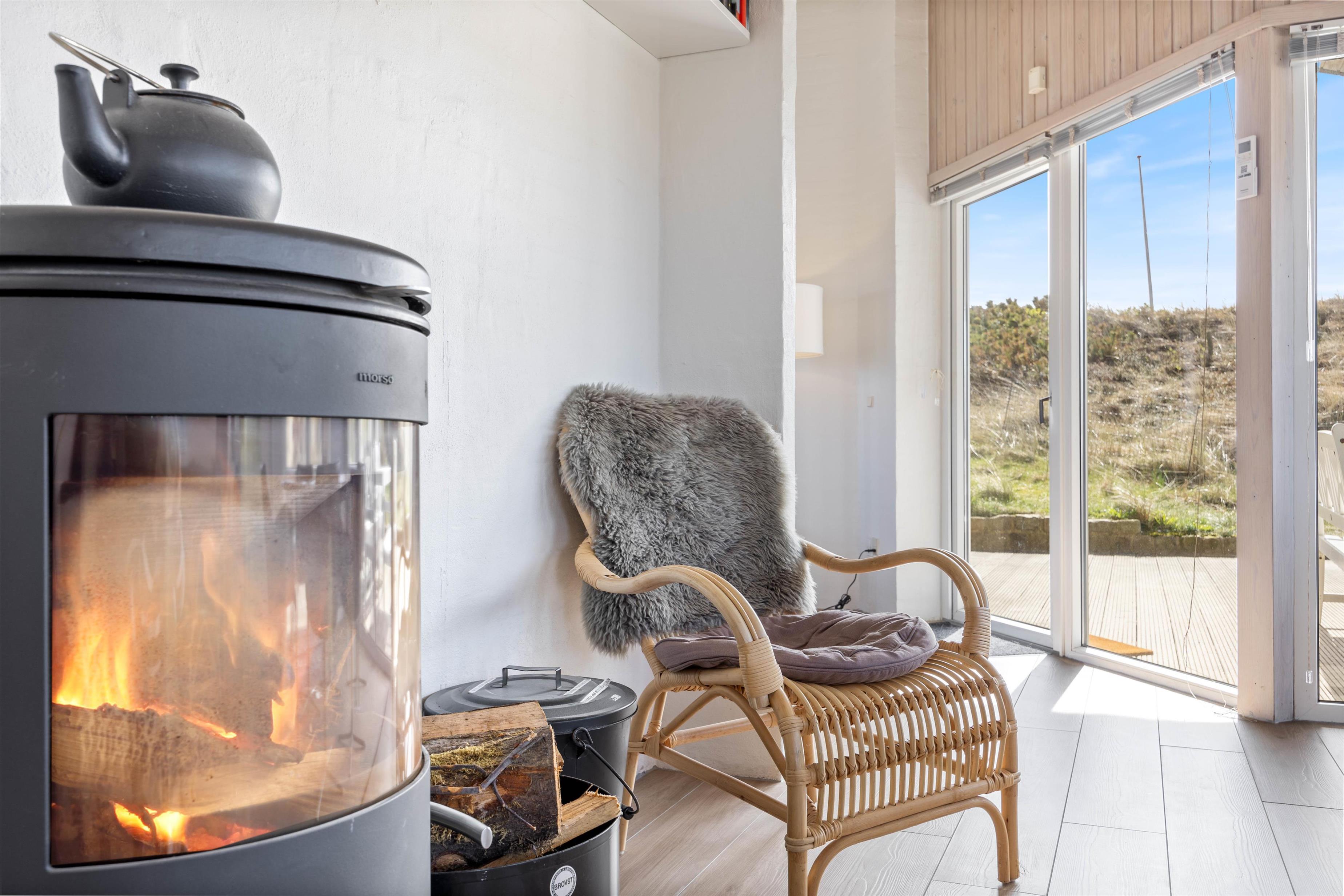 Fra den store lyse stue har I en betagende udsigt over klitlandskabet. I stuen er der både varmepumpe samt en dejlig brændeovn, der sikrer en behagelig varme når I hygger med familiespil, en god bog eller sammen ser en film på det store fladskærmsfjernsyn. Klitdalen 95 har parabol og naturligvis trådløst internet.