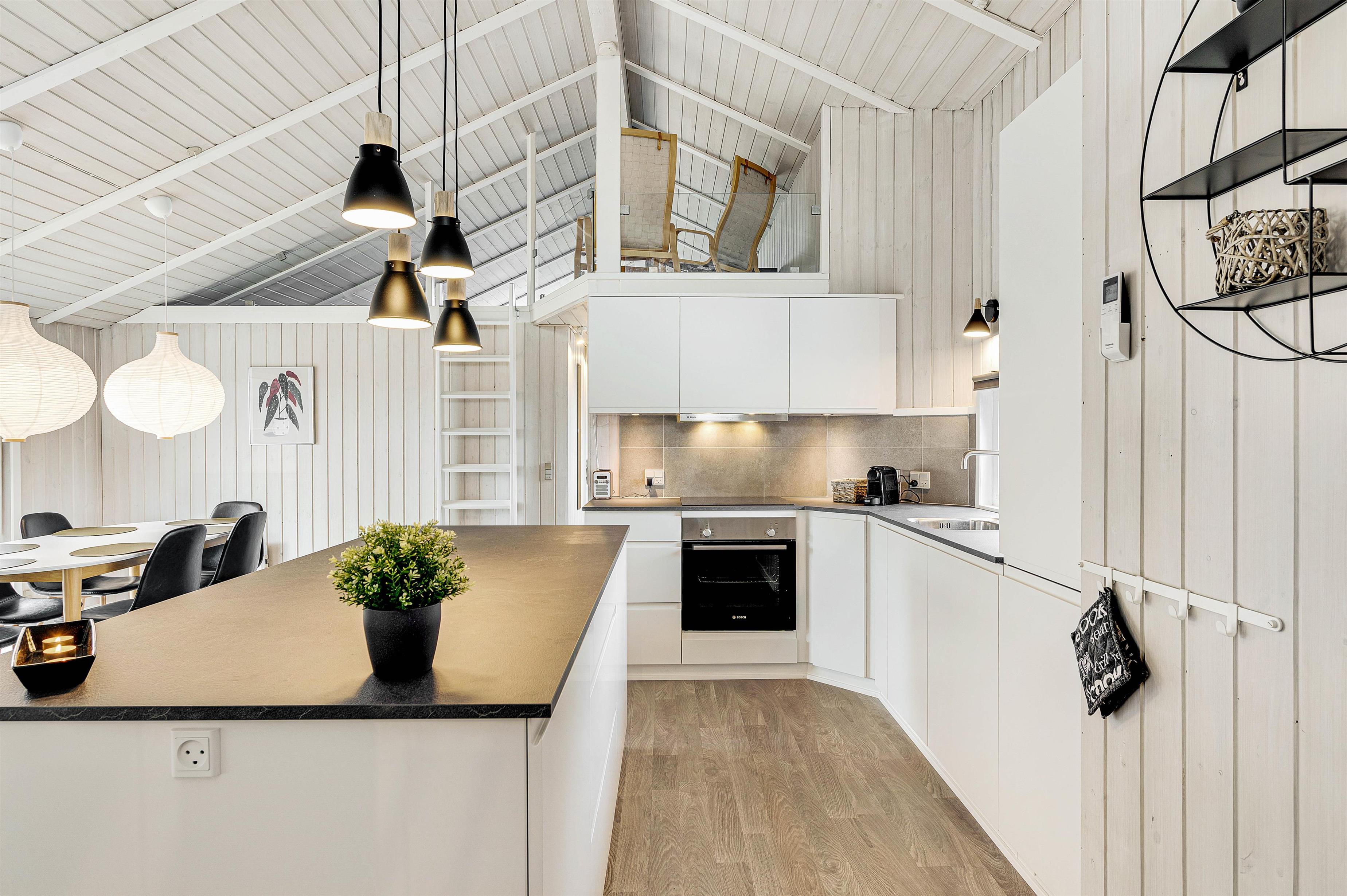 Det skønne og veludstyrede køkken inviterer til hyggelige aftenstunder, hvor I sammen kan tilberede et lækkert aftensmåltid, men byder også på efterfølgende stunder, hvor I kan sidde ved bordet og hygge jer med diverse spil eller planlægning af de forskellige aktiviteter på jeres ferie.