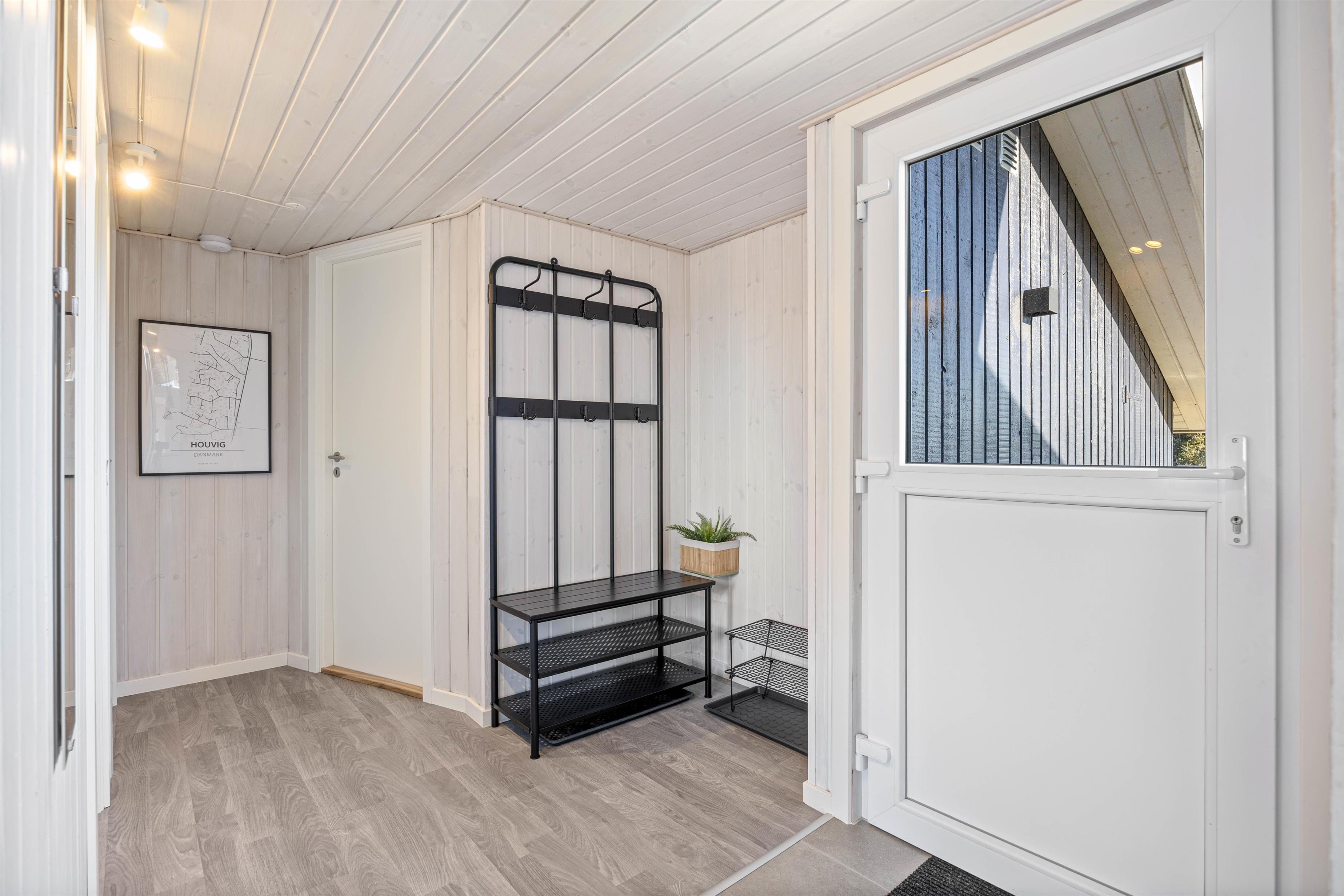 Feriehuset, der har adresse på Mågedalen 97, ligger i et ferieområde i Houvig og er gennemført i sin klassiske sommerhusstil. Træbeklædte vægge helt op til taget byder på den rigtige feriehusatmosfære. Det fantastiske spiseområde med integreret køkken er absolut et af sommerhusets midtpunkter.