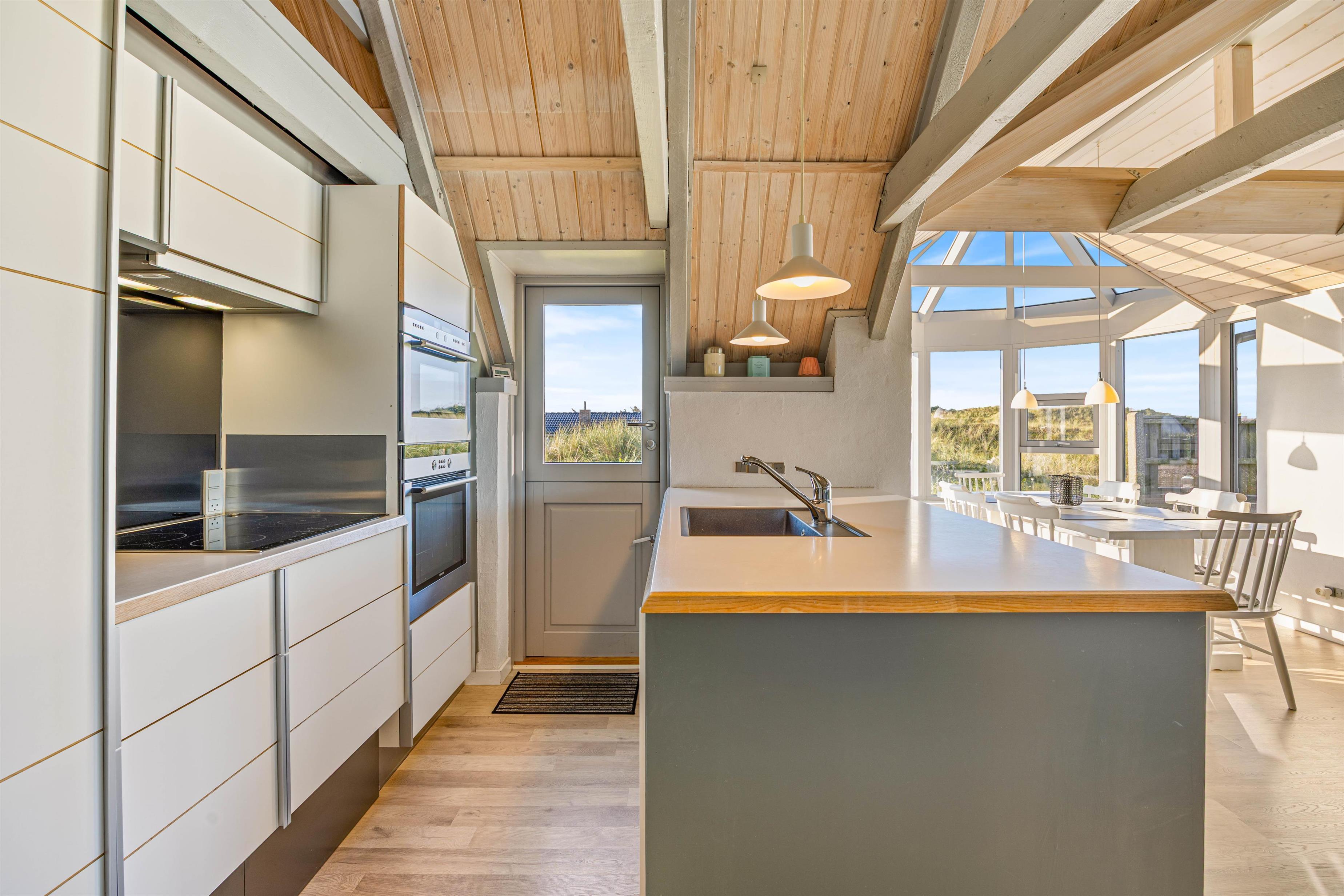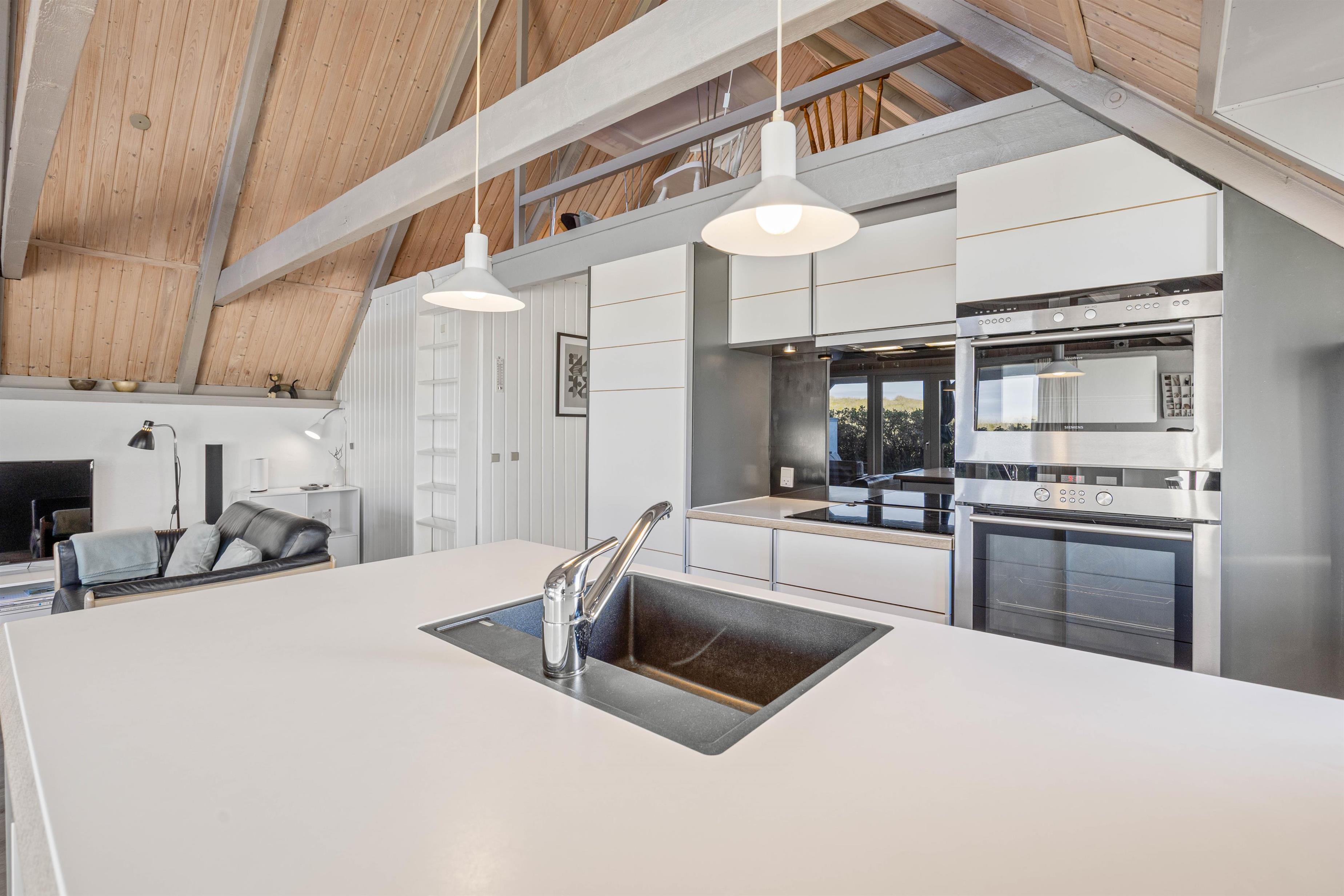 Feriehuset er både hyggeligt og moderne indrettet med stor åben stue og køkken, god spiseplads og udgang fra stuen til den dejlige træterrasse. Huset er lyst og godt indrettet med 3 værelser - hvor 2 er med dobbeltseng og et værelse med enkeltmandssenge - perfekt til familiens børn. Derudover har feriehuset et dejligt badeværelse med gulvarme.