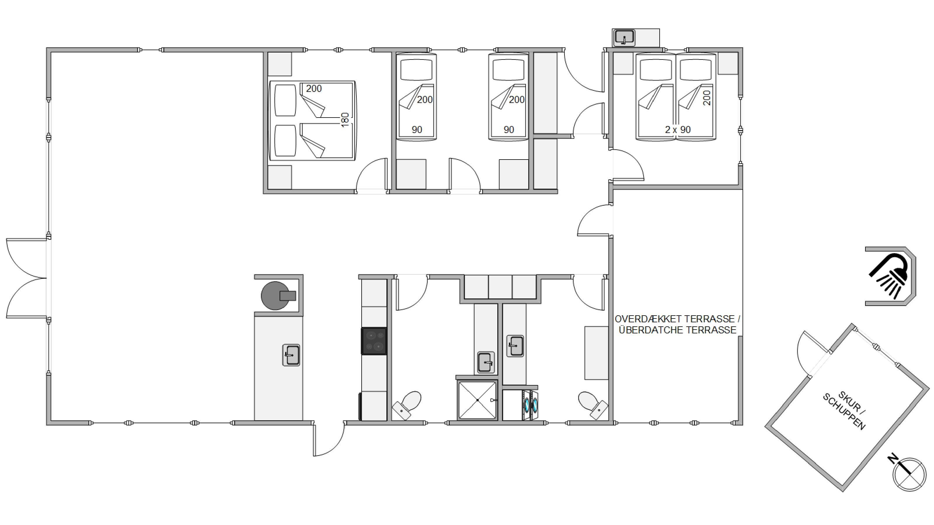 Efter en lang og god gåtur langs det betagende og brusende Vesterhav, kan I benytte jer af sommerhusets udebruser, og dermed få skyllet det værste sand af fødderne. I vil kunne benytte jer af udebruseren fra april til november.