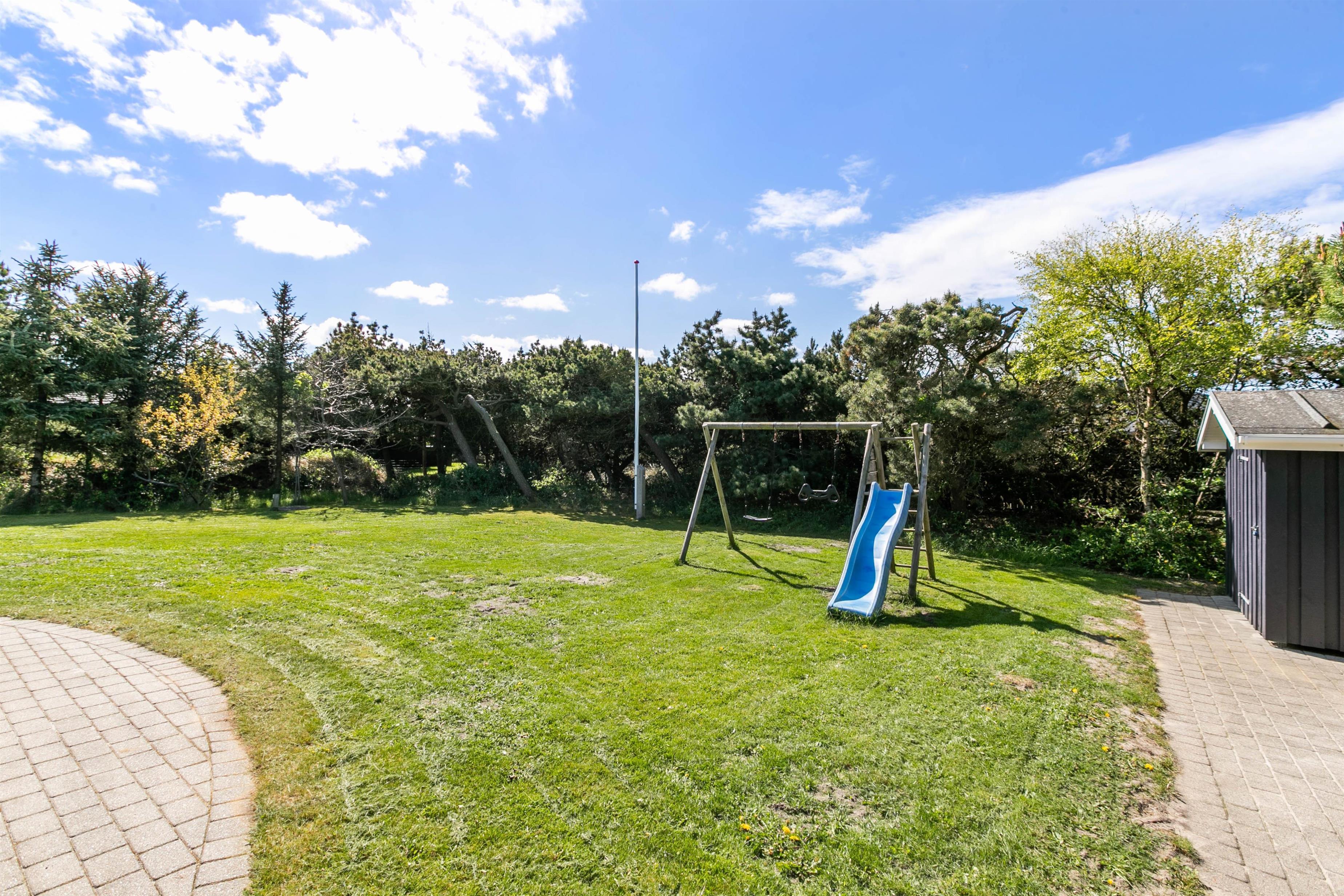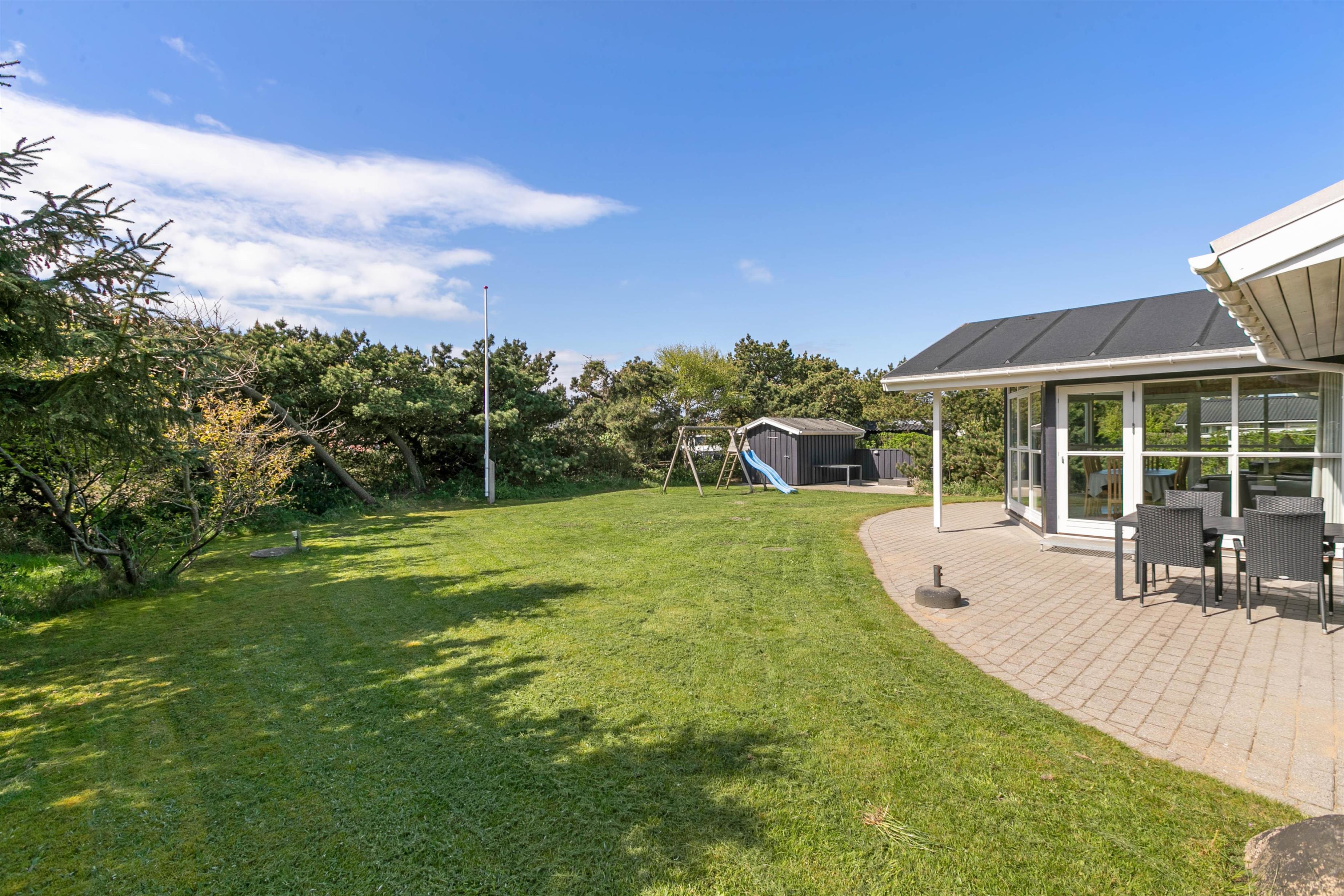 Grunden, der ligger i læ af omkringstående træer, er perfekt til leg for børn og hunde, ligesom der er masser af mulighed for privatliv for husets beboere. Terrassen går hele vejen rundt om huset, så der er næsten altid mulighed for sol og læ, ligesom den delvist overdækkede terrasse er velegnet til grillaftener. Børn vil helt sikkert elske den store have, som indbyder til sjov og leg.