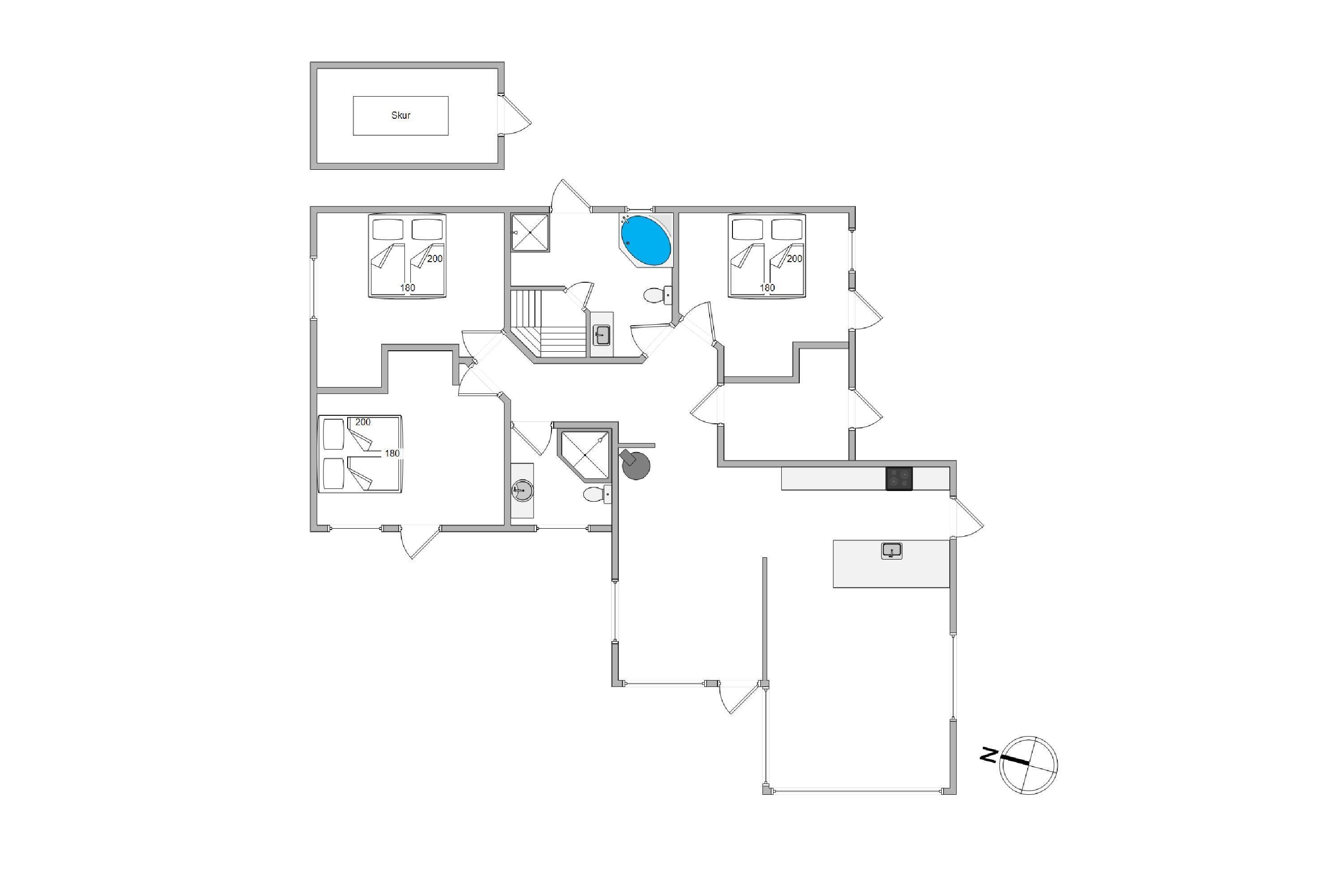 Dette hus er ideelt til familien, som ønsker at holde ferie i et skønt og lækkert hus, og det er blandt de få huse i området, der har havudsigt. Der er lyse vægge og akustikvenlige troltectlofter, og i køkken og stue er der loft til kip. Sommerhuset fordeler sig på tre soveværelser og i det store badeværelse finder i både spaen og saunaen. Her vil i udentvivl få tilbragt mange hyggelige feriestunder sammen.