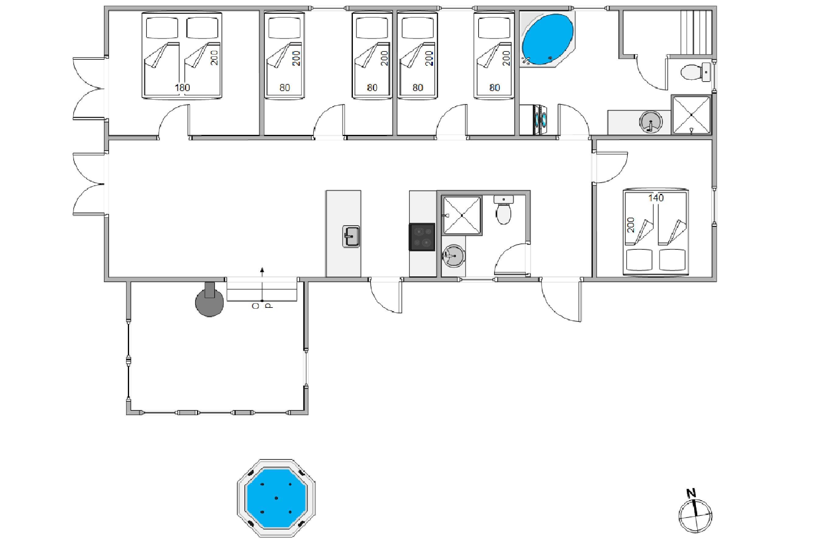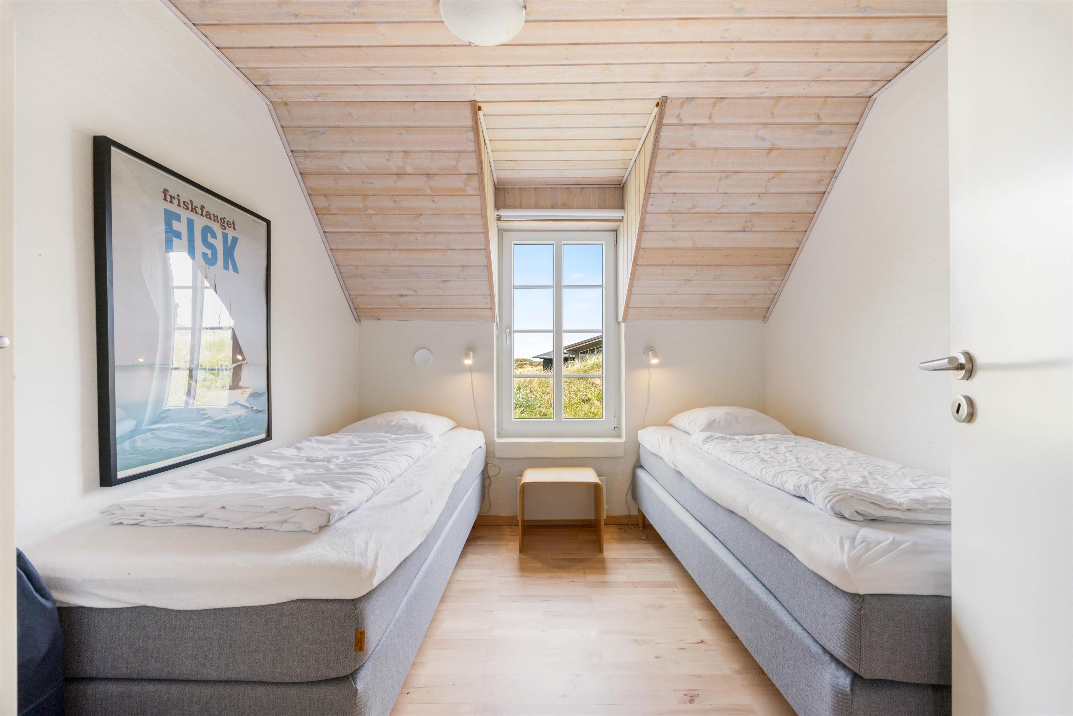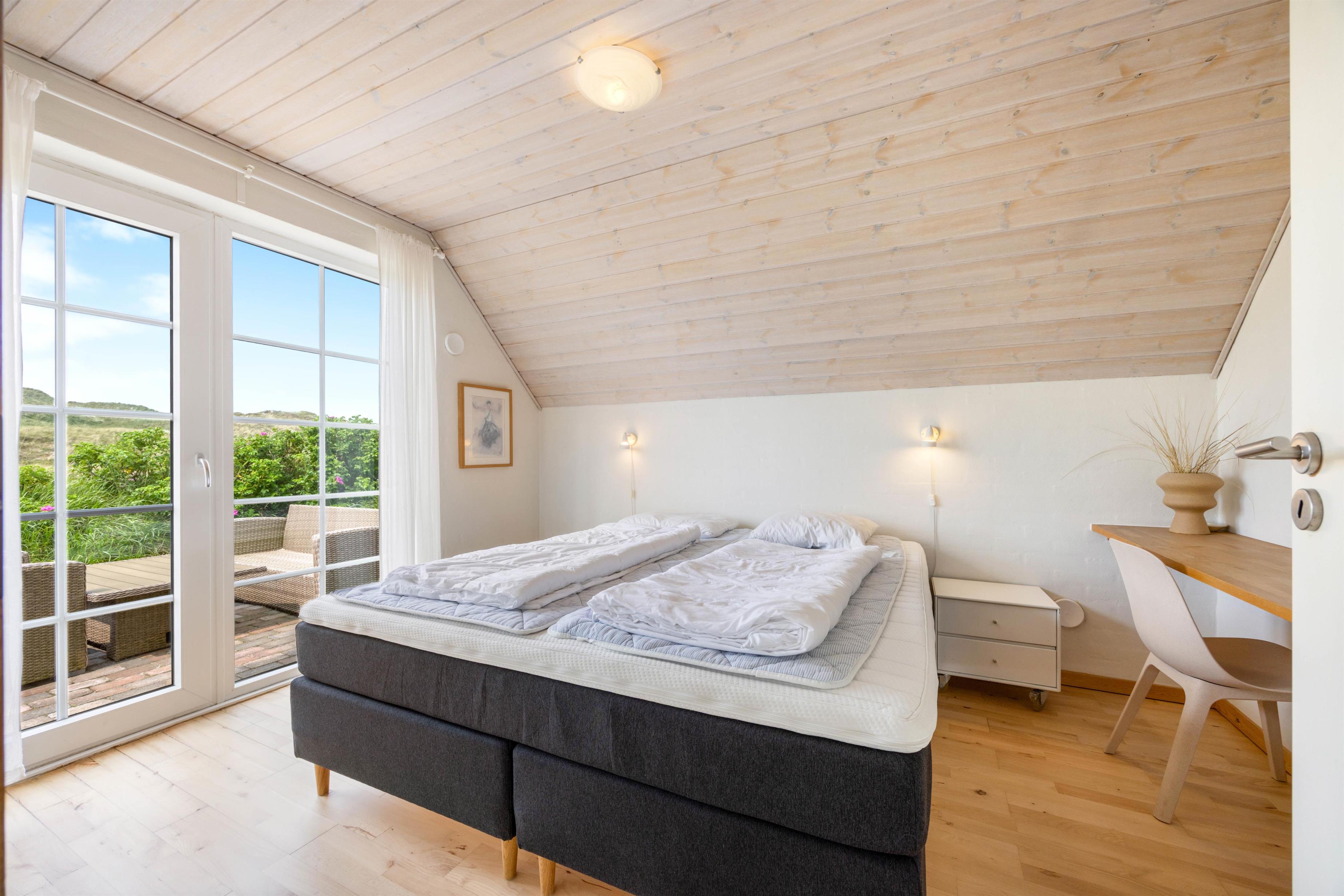 Feriehuset byder på 4 gode soveværelser, som I kan samle ny energi til ferien i. 2 af soveværelserne er indrettet med dobbeltsenge, mens de resterende 2 soveværelser er indrettet med 2 enkeltsenge hver. Der er desuden 2 badeværelser med gulvvarme i feriehuset, så I ikke skal stå i kø eller fryse tæerne fra morgenstunden.