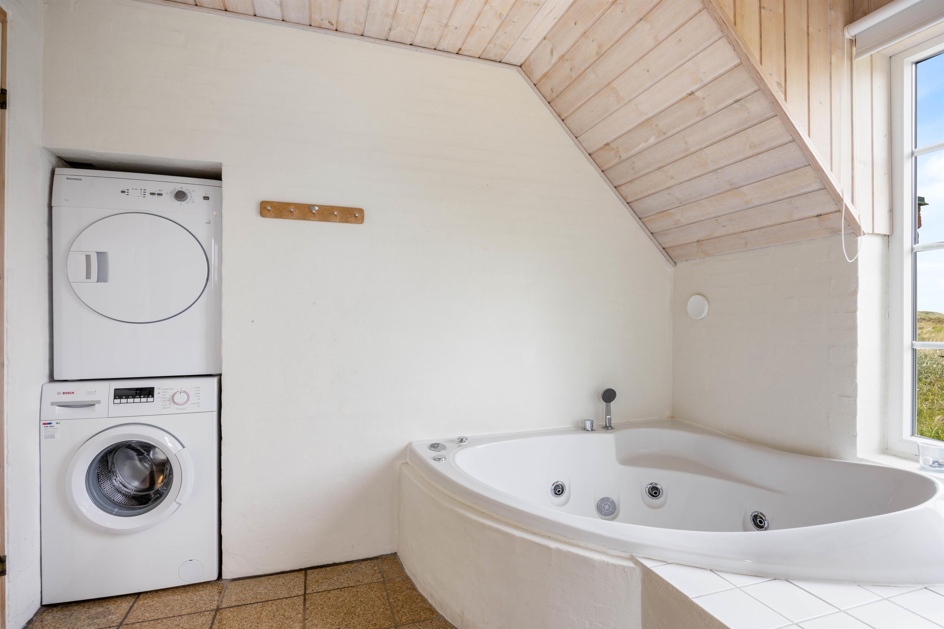 Der er gode praktiske faciliteter i feriehuset, så I slipper for at skulle bruge en masse tid på det praktiske husarbejde i løbet af ferien. Her har I en opvaskemaskine, der hjælper med opvasken efter madlavningen, og en vaskemaskine og tørretumbler, der hjælper med feriens tøjvask.