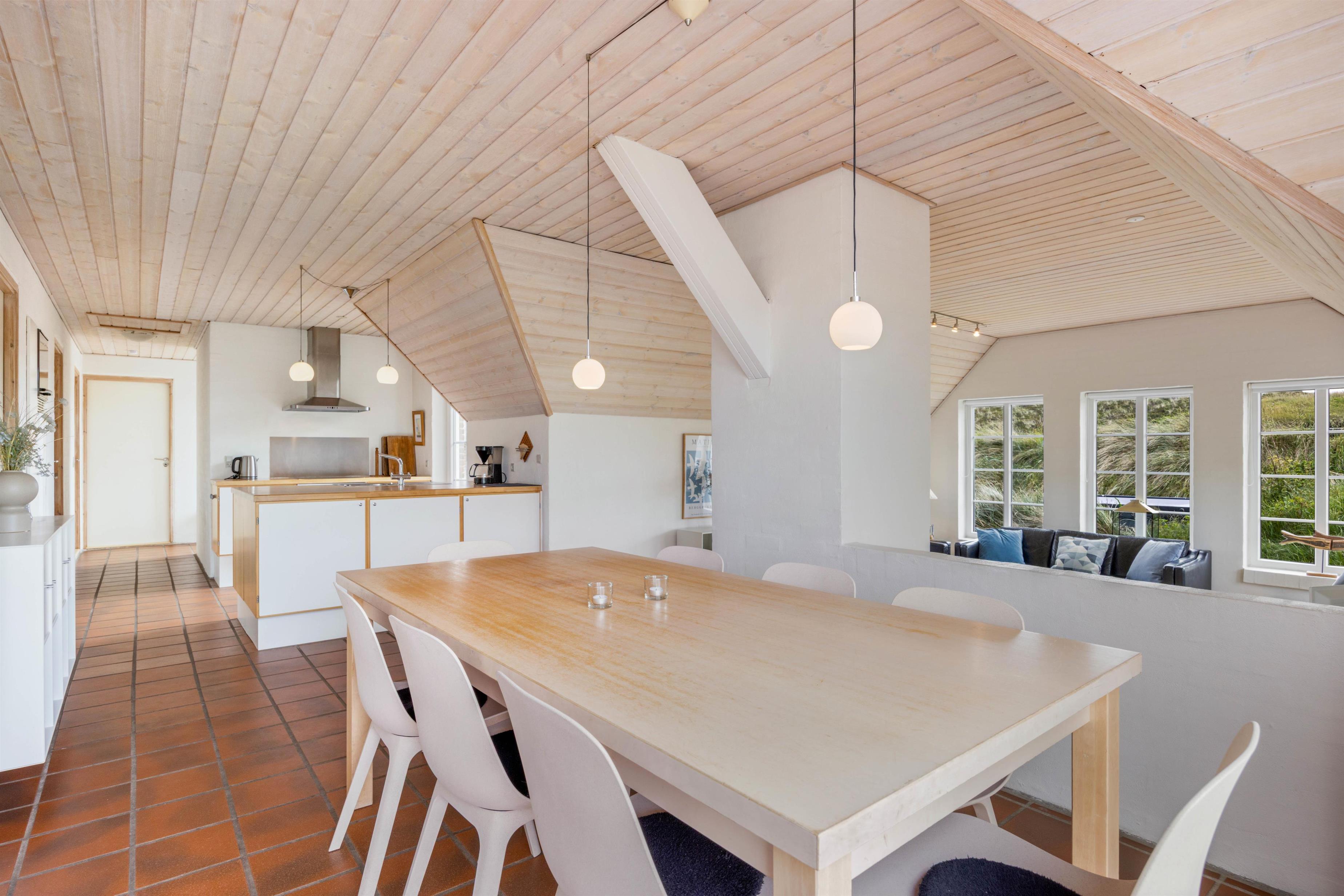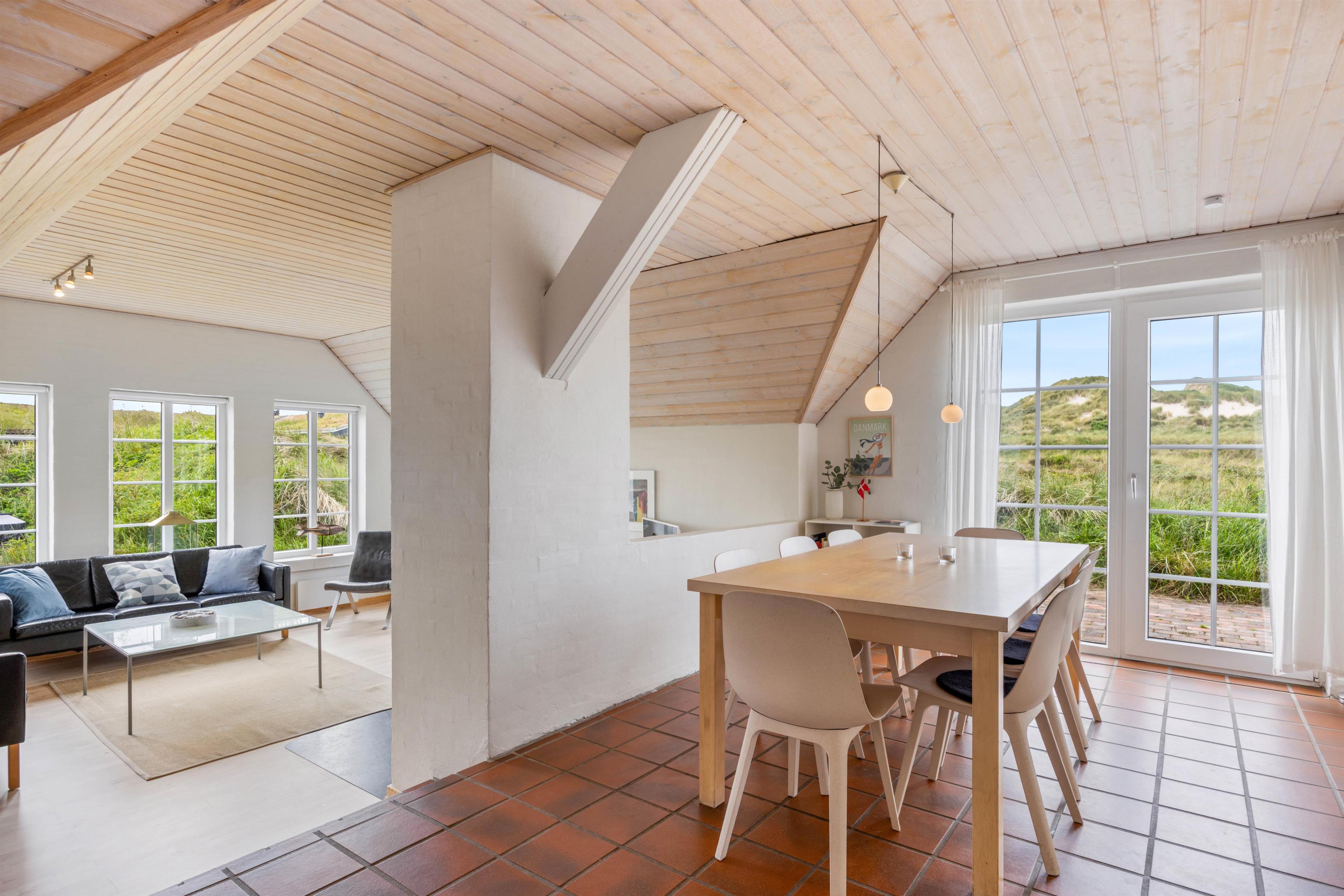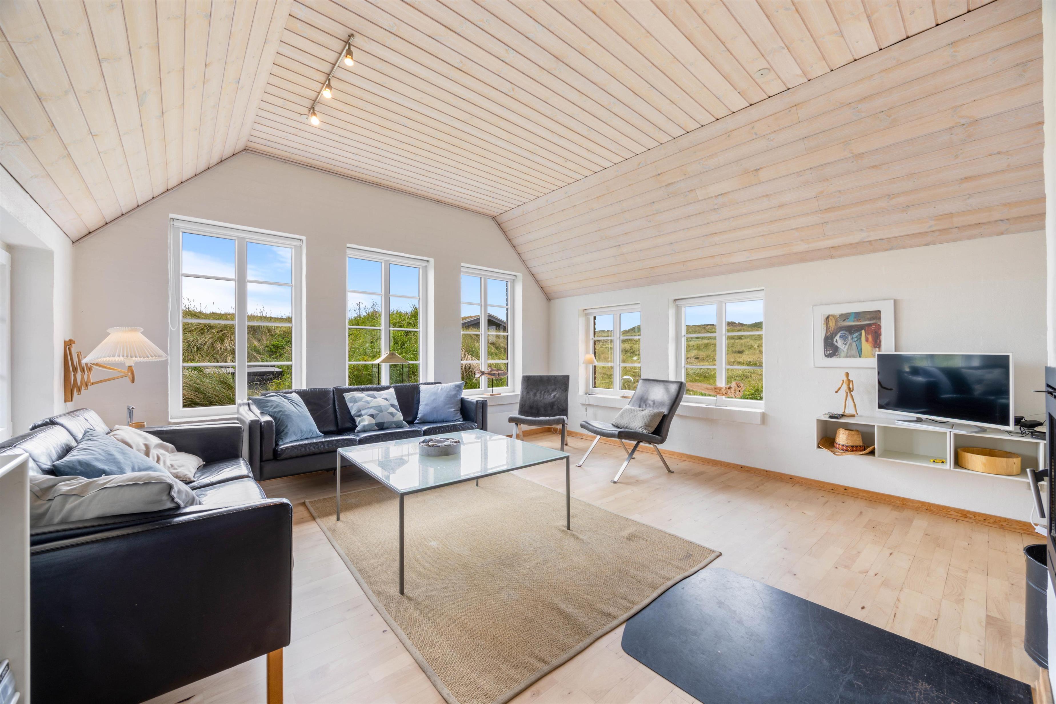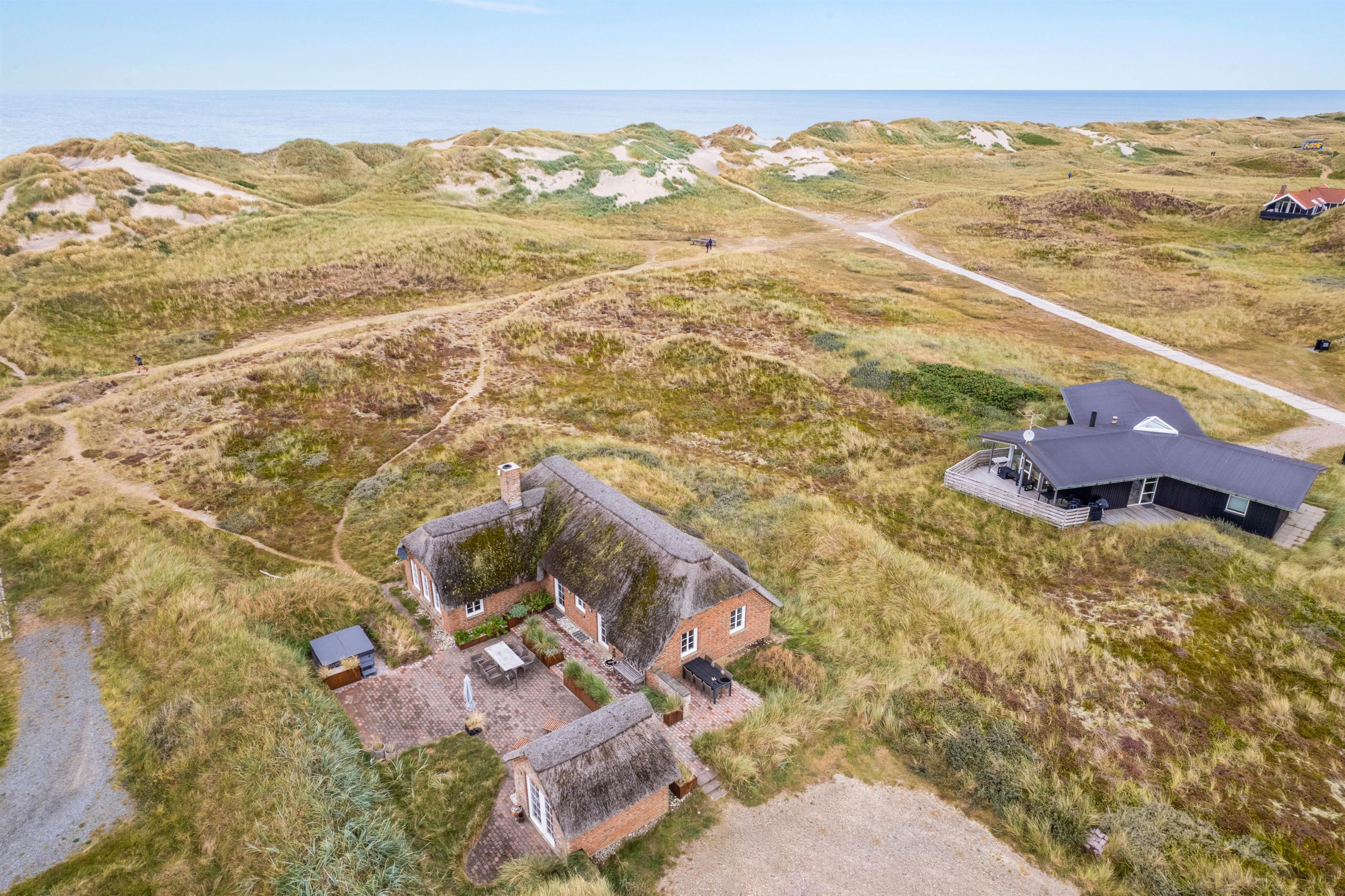 I yderste klitrække i Houvig står dette lækre feriehus klar til at invitere op til 8 personer og 2 hunde inden for til en dejlig ferie. I sommerhuset på Esebjergvej 46 i Houvig er rammerne sat for en ferie, der kommer til at være fyldt med afslapning, for her er der både udespa, spa og sauna. Desuden er der fra sommerhuset blot 170 meter til stranden.