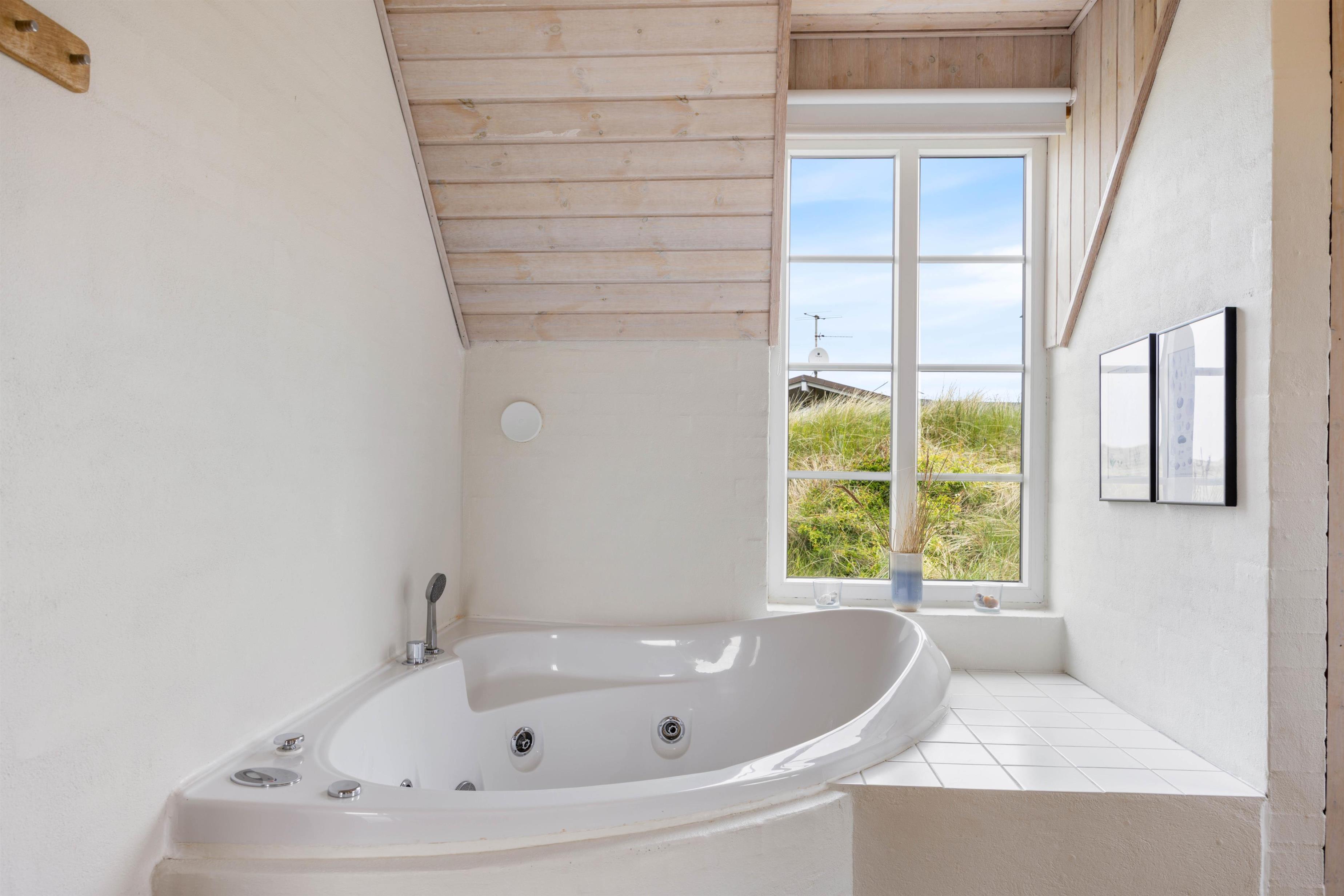 Også indendørs i feriehuset kan I se frem til at nyde masser af afslapning. På det ene af sommerhusets badeværelser står der nemlig en spa klar til jer, der inviterer til masser af afslapning. Fra badeværelset har I også adgang til en dejlig sauna, hvor I kan slappe af i varmen.