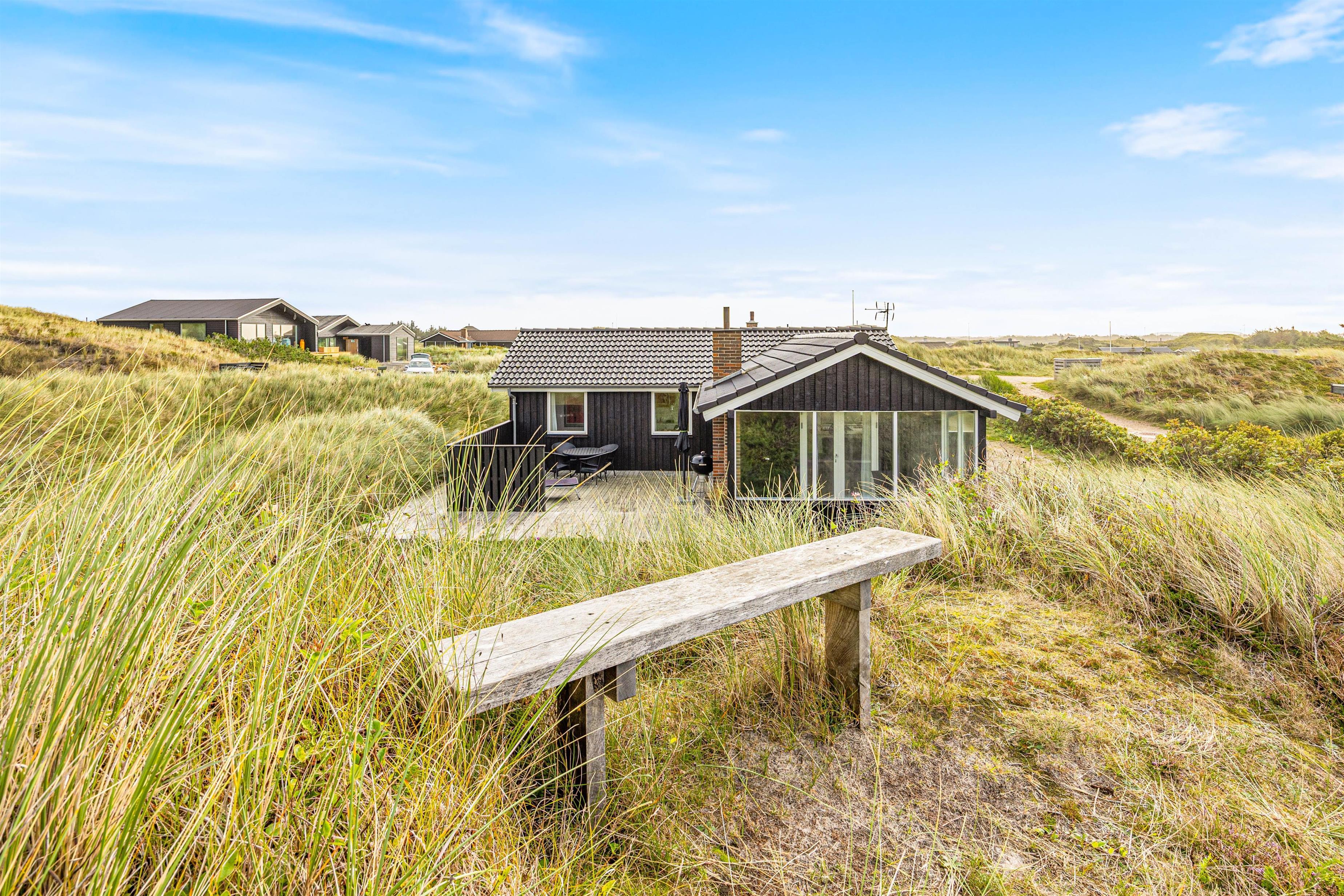 En stor træterrasse kredser rundt om hele huset. Her er derfor altid er sted i læ at finde. En del af terrassen er overdækket og afskærmet, så man på de dage med mindre godt vejr også kan nyde den friske havluft udenfor, med en kop morgenkaffe i hånden. Terrassen er udstyret med diverse havemøbler og en grill, så I kan grille og hygge hele dagen.Fra huset er der også en sti, som vil føre jer direkte til havet, der er et syn for sig selv uanset om det er midt i Juli, eller om det i december.