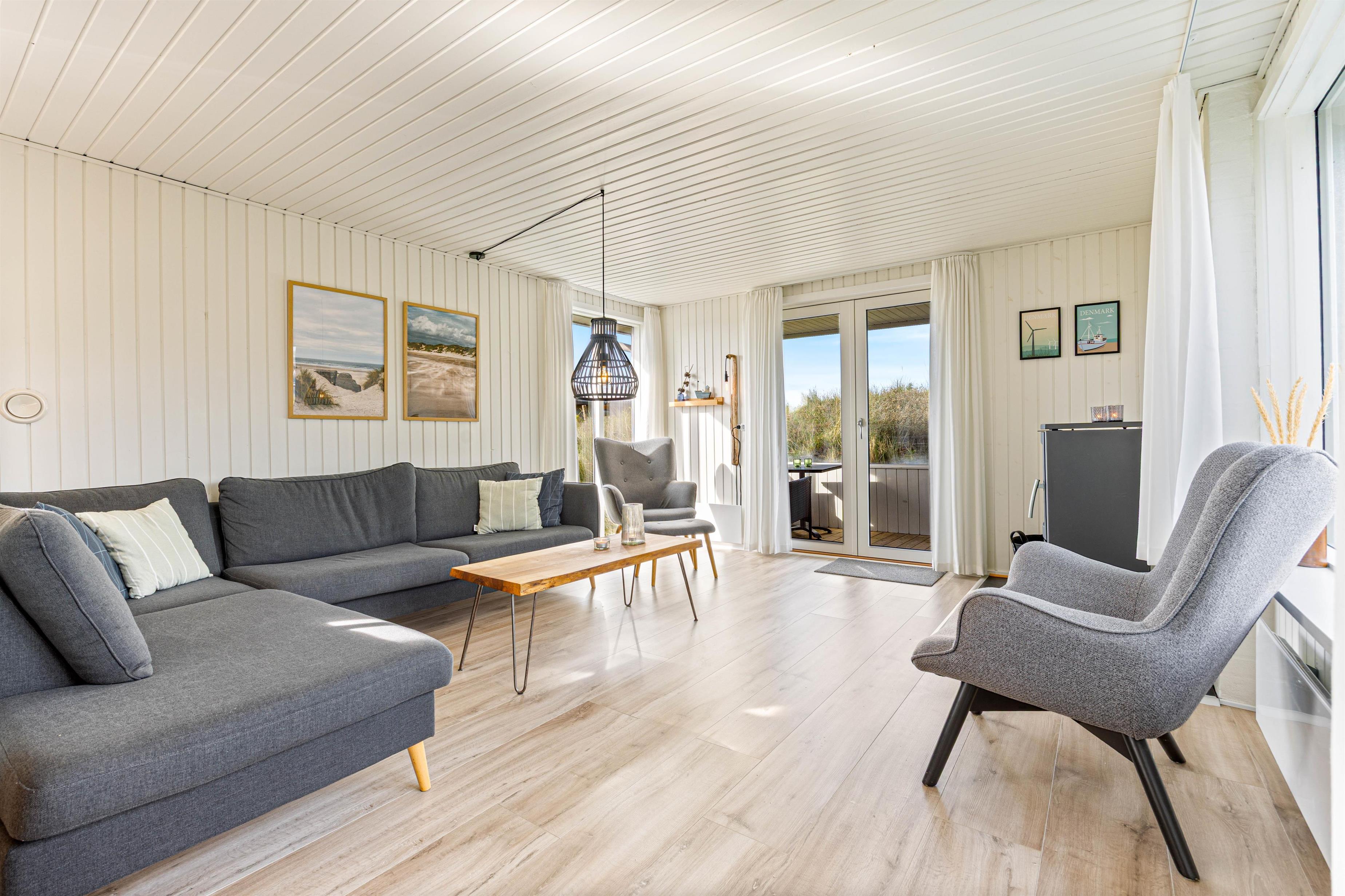 Dette hyggelige og velholdte sommerhus ligger midt i klitterne, i første række til havet. Lad det lyse hus med dens fantastiske beliggenhed og charme, byde jer velkommen til nogle vidunderlige dage midt i naturen. Sommerhuset gennemgik i 2019 i renovering, og derfor fremstår det super pænt og indbydende.Her er plads til, at I op til 4 personer kan holde ferie i det vestjyske.