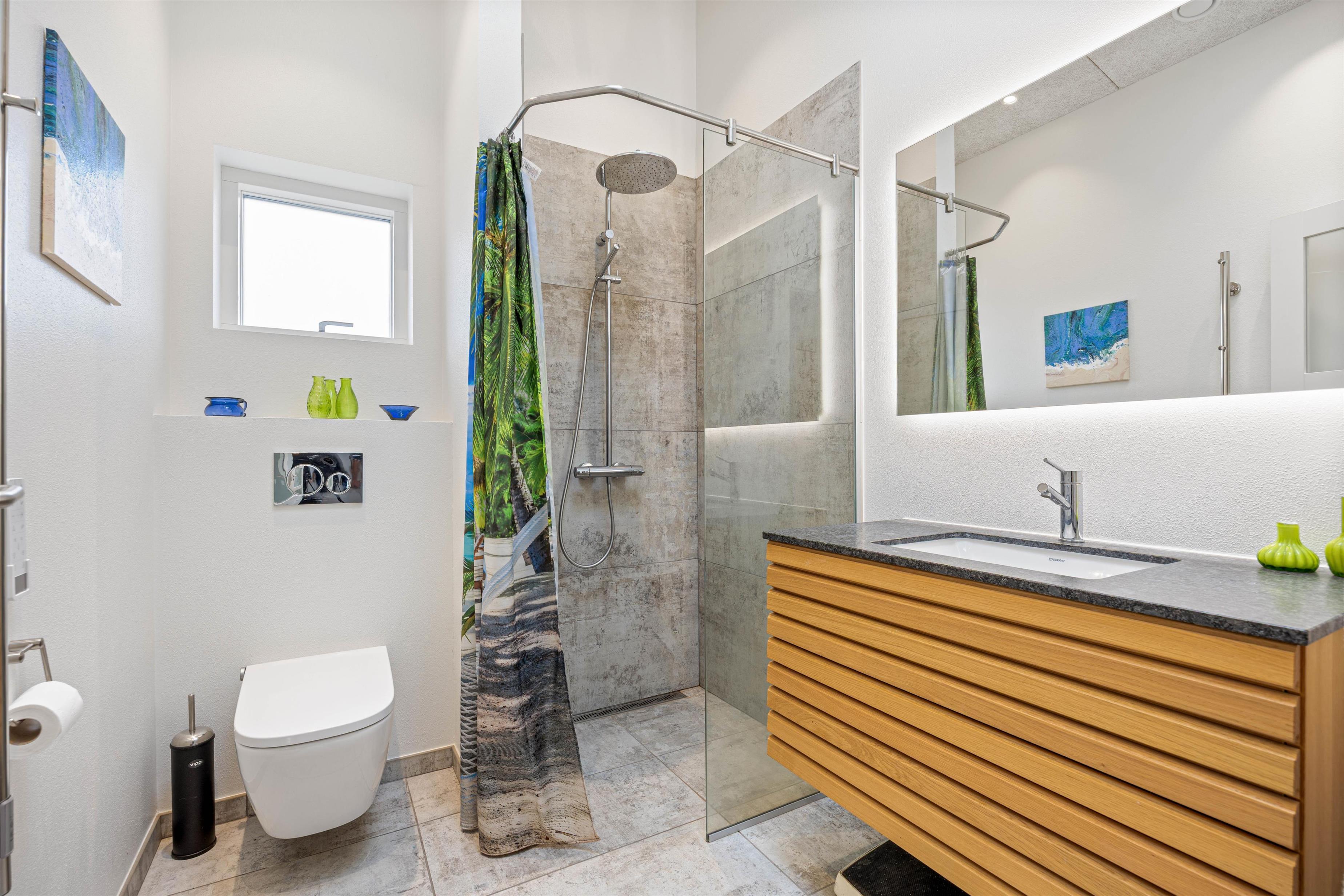 Nutzt die Möglichkeit, euch in einem der drei Schlafzimmer zurückzuziehen. Das Ferienhaus bietet Platz für bis zu sechs Personen mit einem Doppelbett und vier Einzelbetten, was es ideal für Familien oder Gruppen macht. Zwei Badezimmer, beide mit Fußbodenheizung, bieten Komfort und ermöglichen einen stressfreien Start in den Tag. Eine Waschmaschine und ein Trockner stehen ebenfalls zur Verfügung, was längere Aufenthalte besonders angenehm macht.