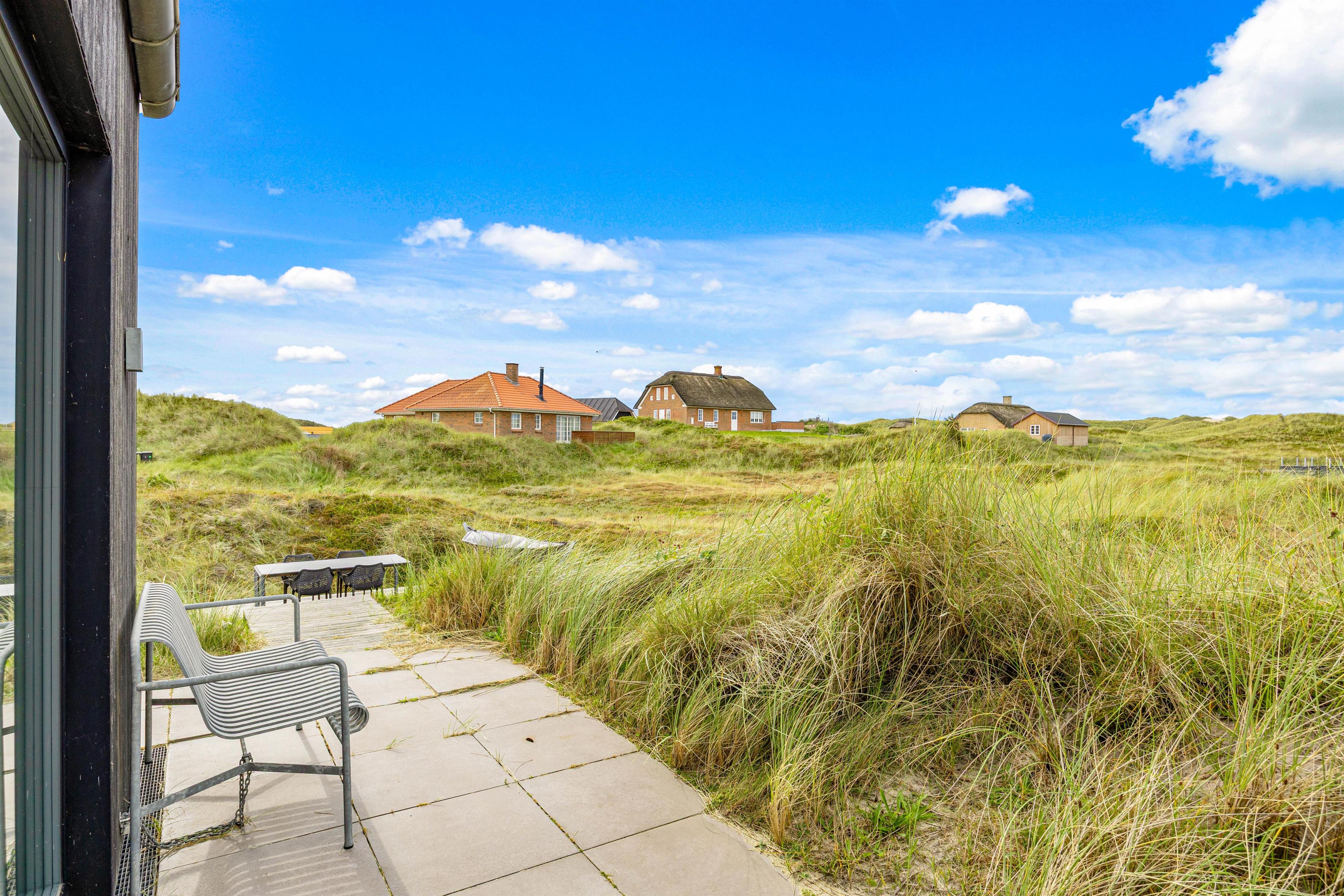 Sommerhuset har en fantastisk beliggenhed kun 300 meter fra det brusende Vesterhav, hvor I kan tage på lange gåture i klitterne eller samle skaller og nyde en forfriskende dukkert.