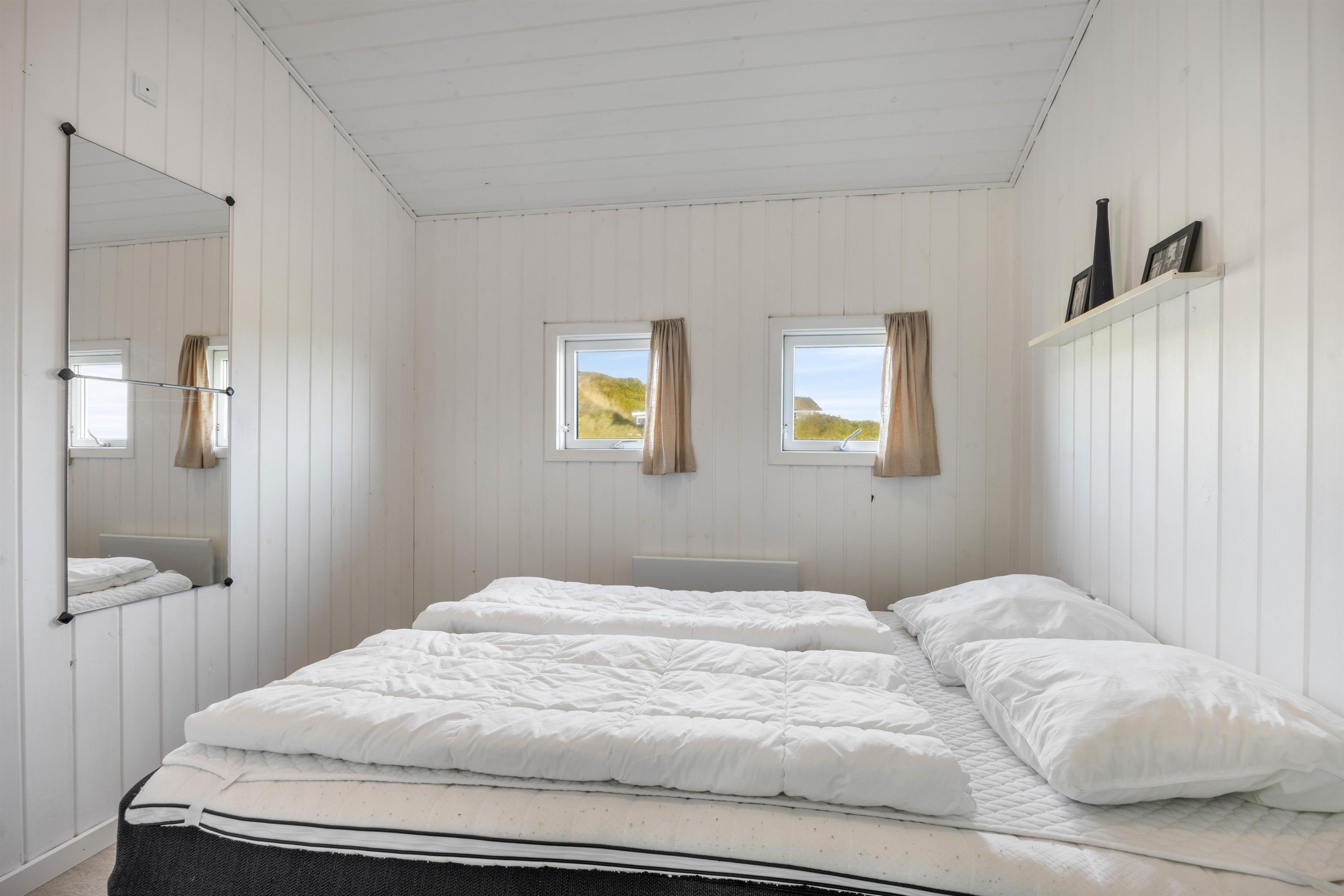 Der er 5 soveværelser i huset, hvoraf de 4 værelser er med dobbeltsenge og 1 værelse er med køjeseng. Derudover er der en hems med 2 ekstra sovepladser. Her vil måske især børnene nyde at sove, lege og lave hyggelige huler.
