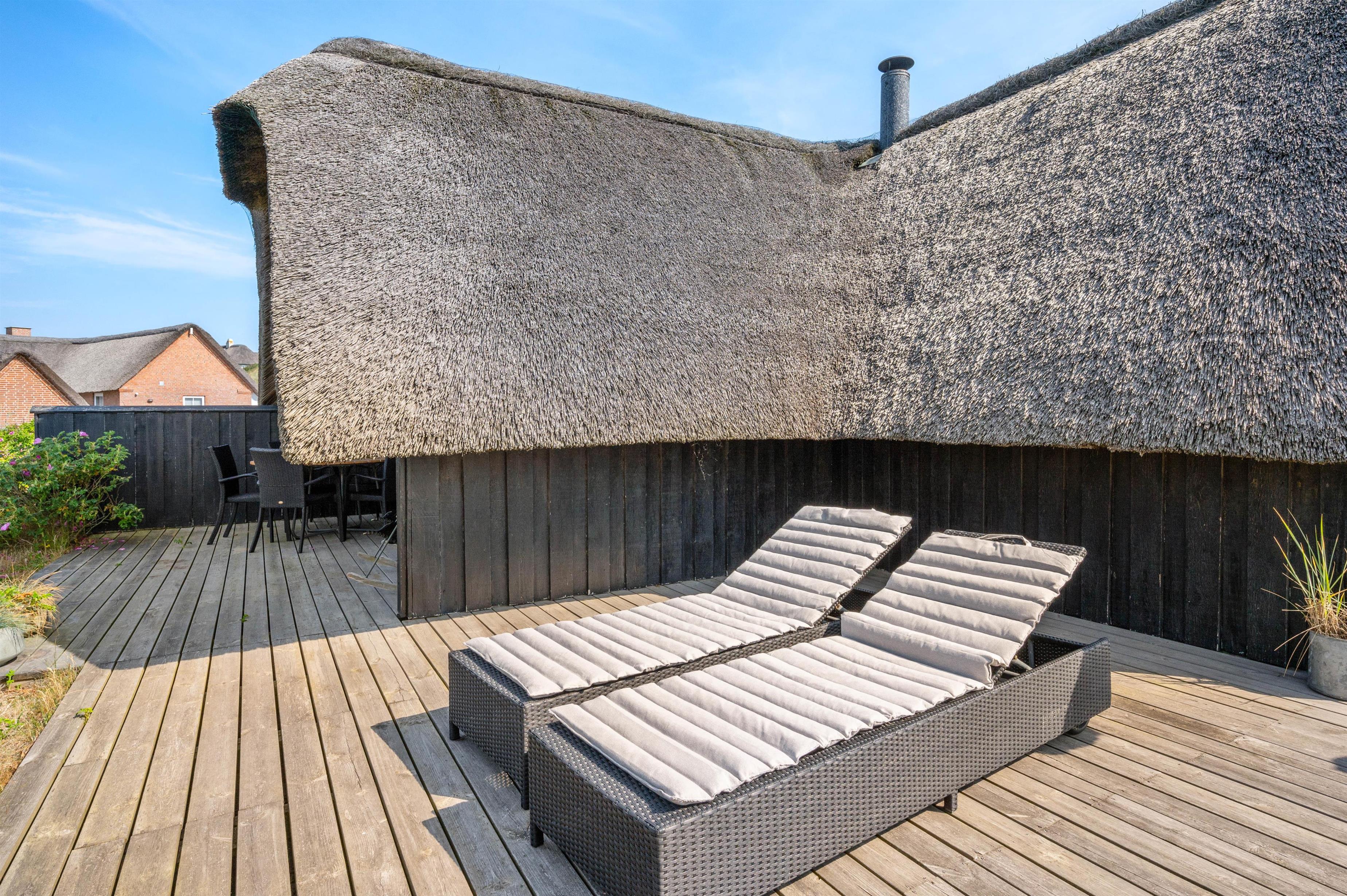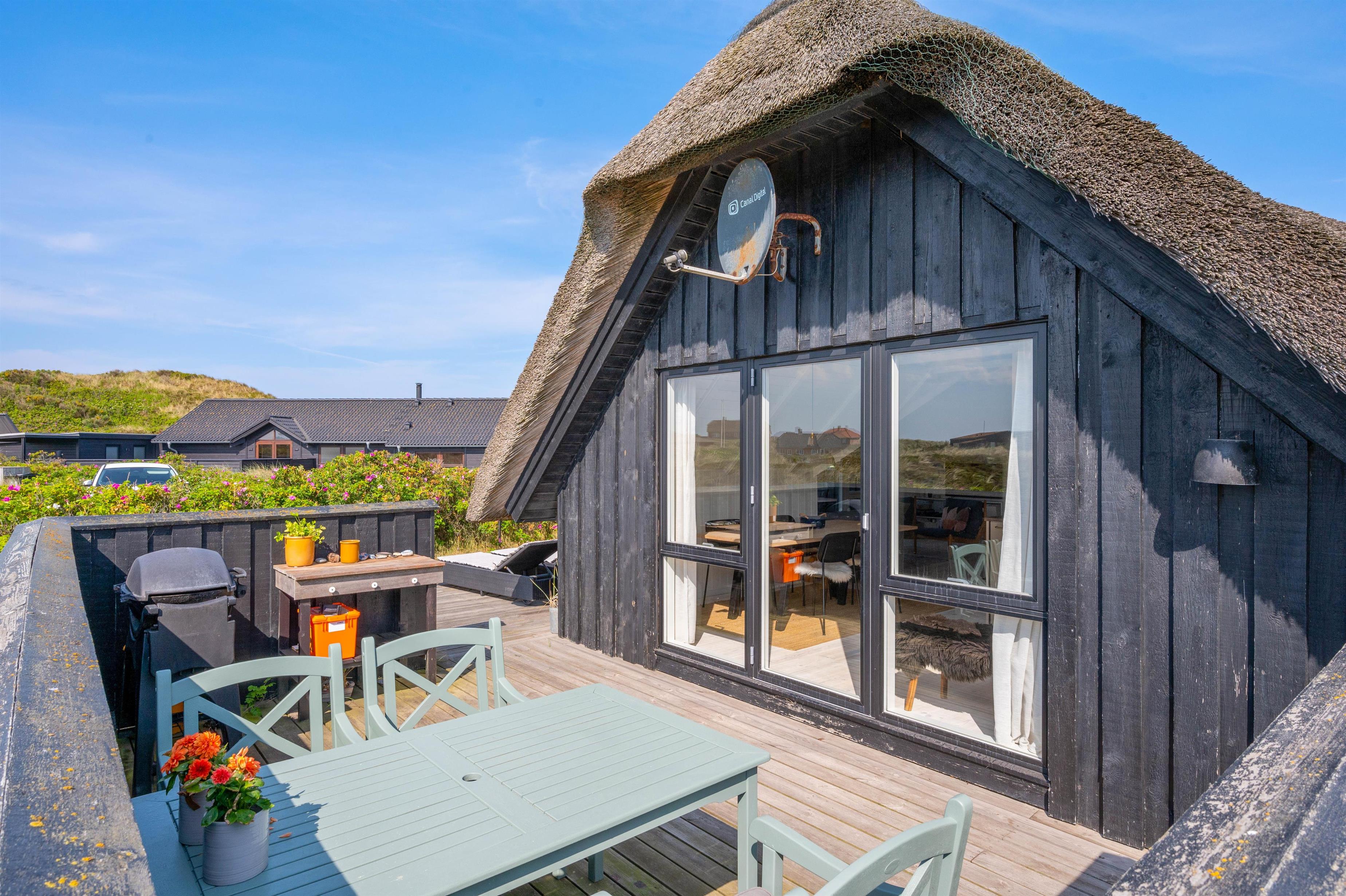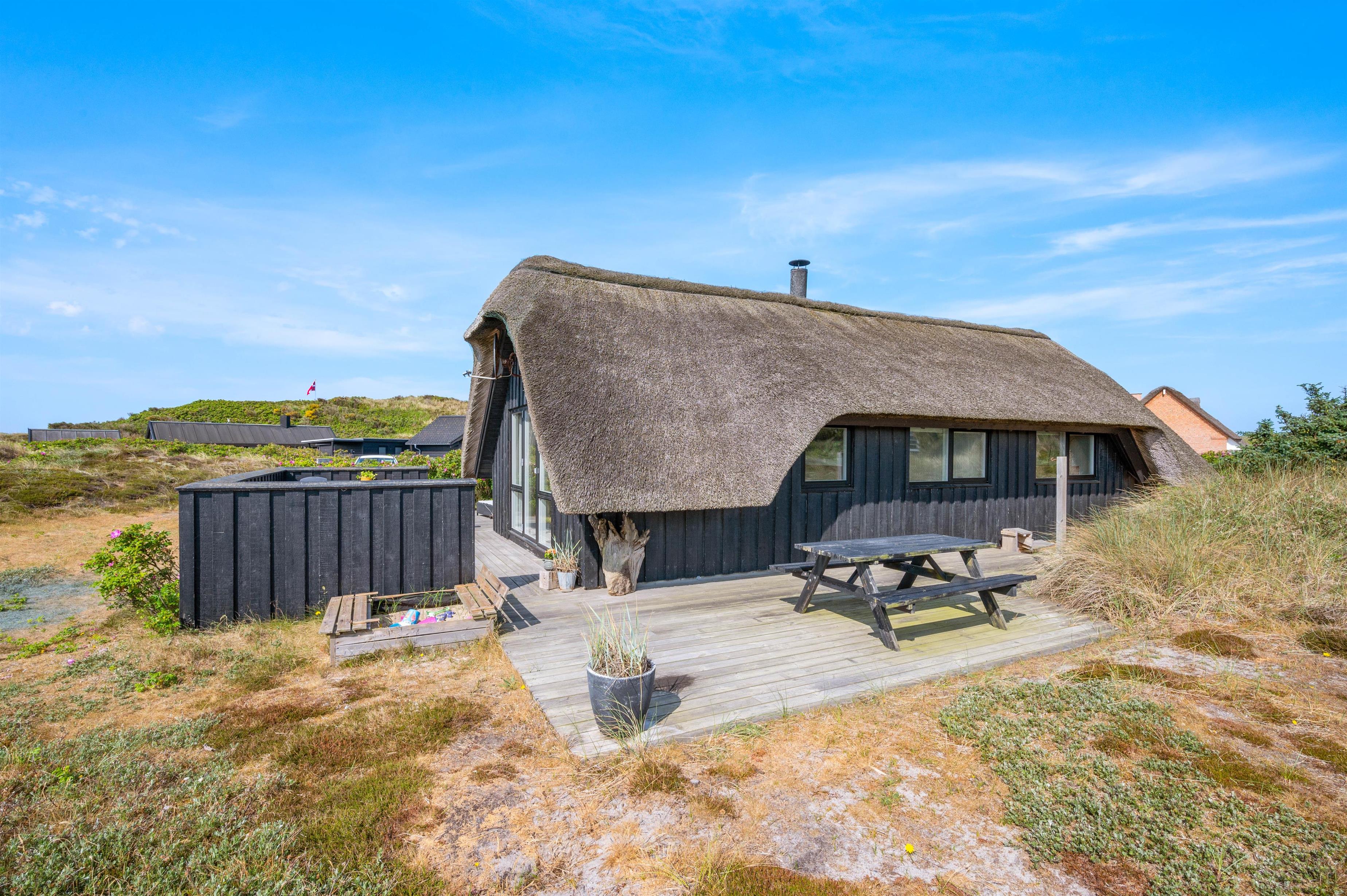 I dette flotte, lyse sommerhus beliggende på Mågedalen 42C er rammerne ideelle for en dejlig ferie. Det stråtækte sommerhus har plads til 6 personer, der værdsætter både moderne indretning og klassisk sommerhuscharme. Her kan I se frem til at holde ferie med Vesterhavet som nabo. Faktisk er der kun 250 meter til stranden.