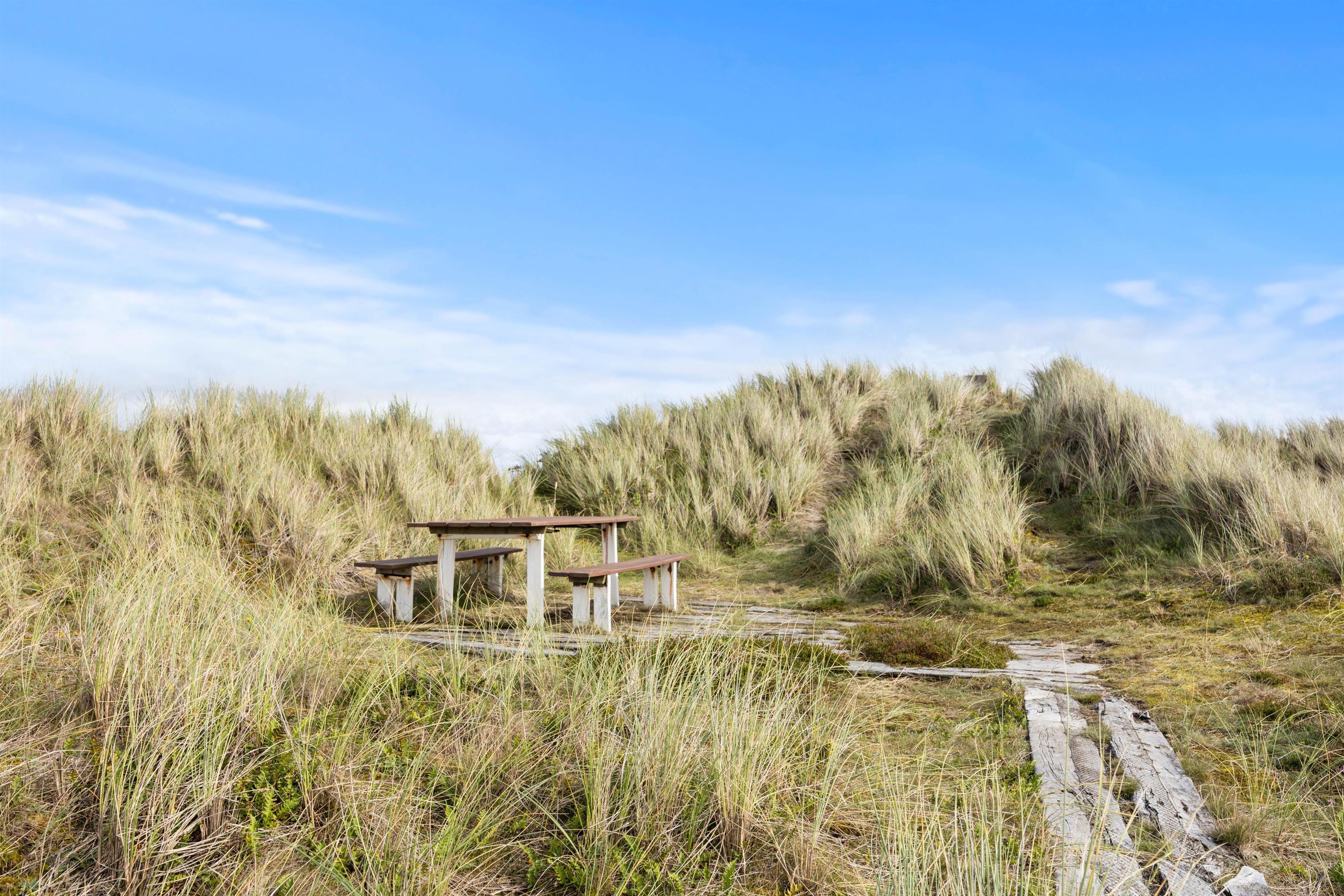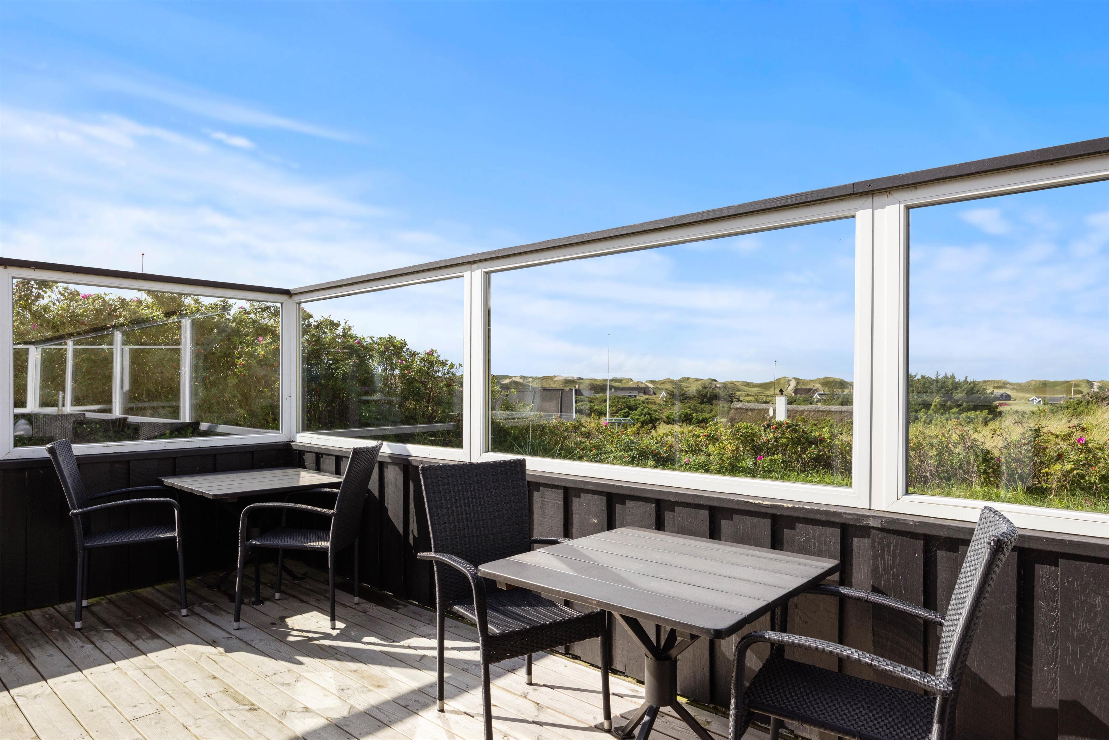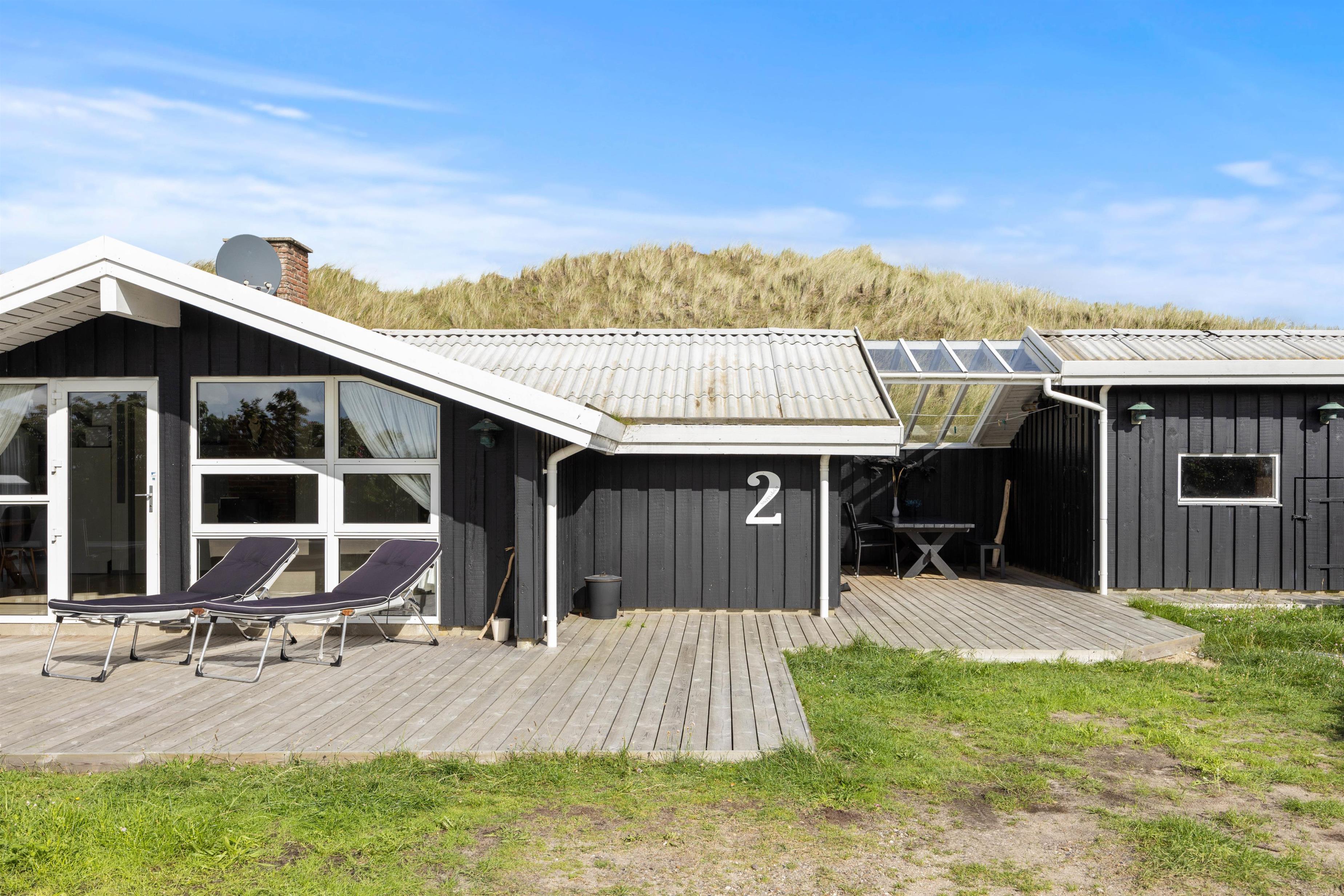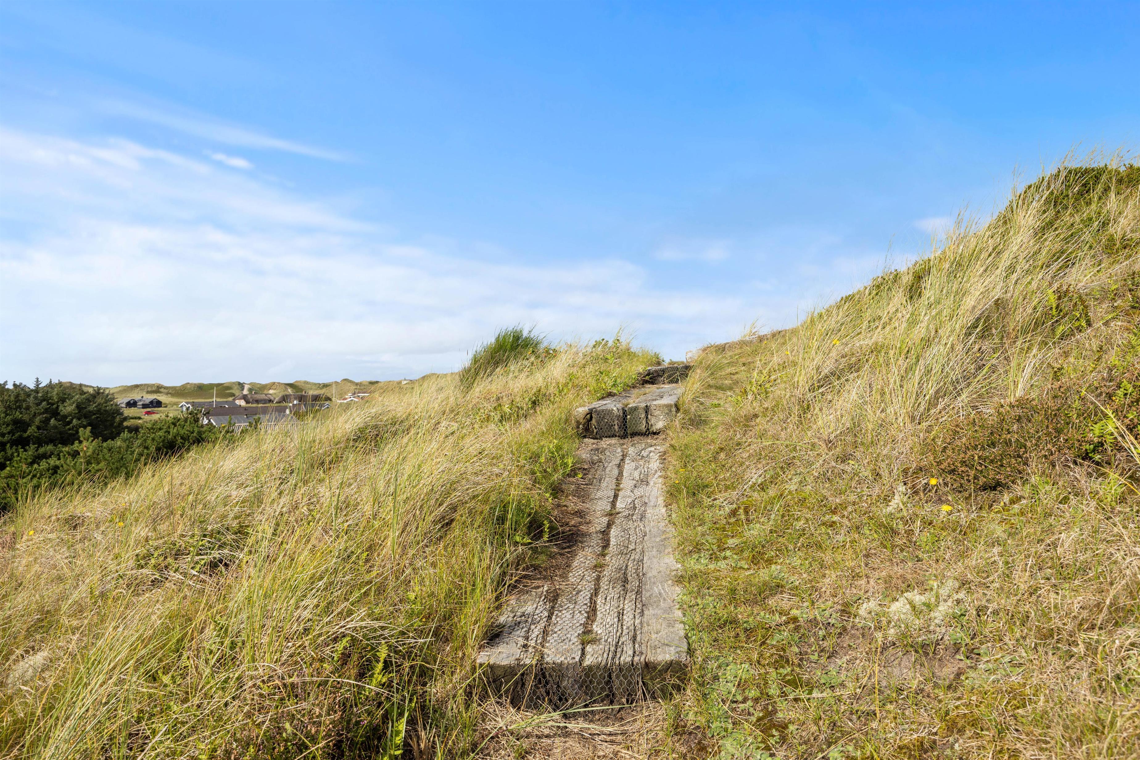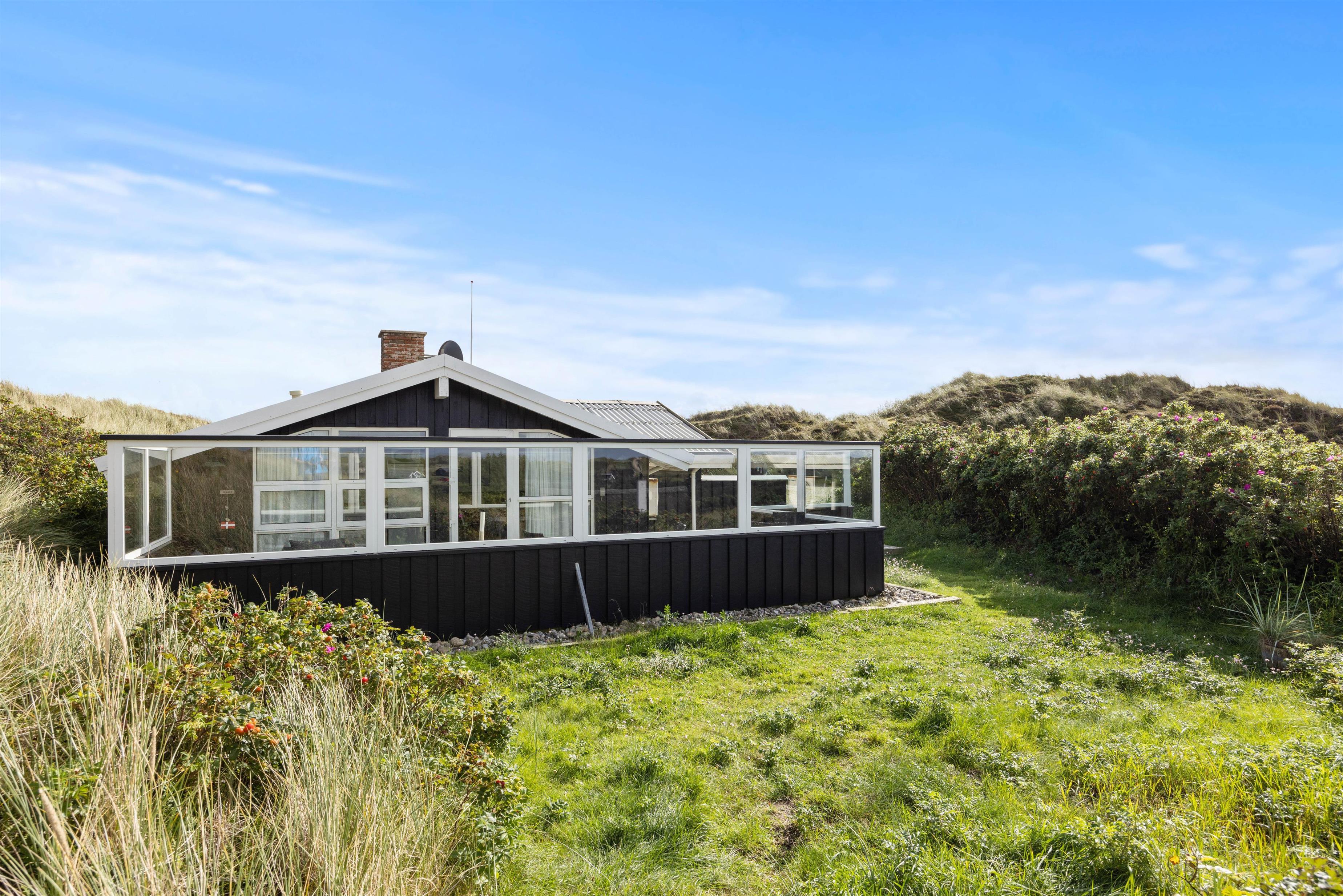 Sommerhuset ligger for enden af en blind vej øverst på en klittop, hvilket giver rolige omgivelser med mulighed for en dejlig afslappende ferie. Vinduerne lader masser af lys slippe ind og giver jer samtidig en smuk udsigt ud over klitlandskabet. Den flotte sandstrand kan også hurtigt nås til fods, da den kun ligger 500 meter væk fra huset. Her kan I bruge masser af herlige timer, og børnene og hunden kan få frit løb. Skulle vejret pludselig skifte til det værre, er I også hurtigt tilbage i varmen igen, hvor afslapningen kan fortsætte.